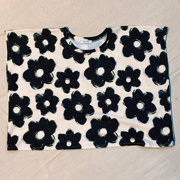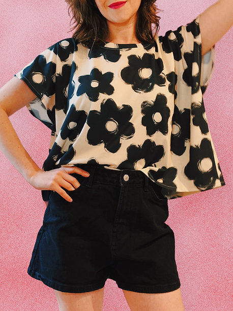 This wide, slightly cropped cut is handmade in a soft, silky poly-blend jersey material custom printed from Spoonflower.