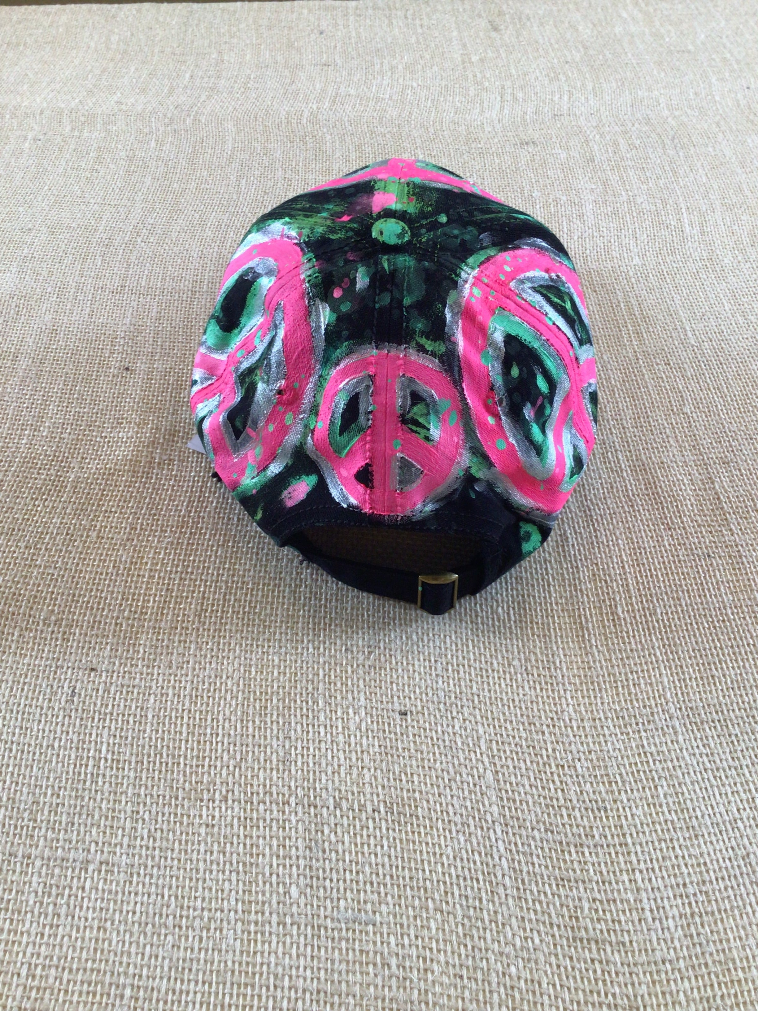 Black Hand Painted Neon Pink Peace Signs Baseball Cap