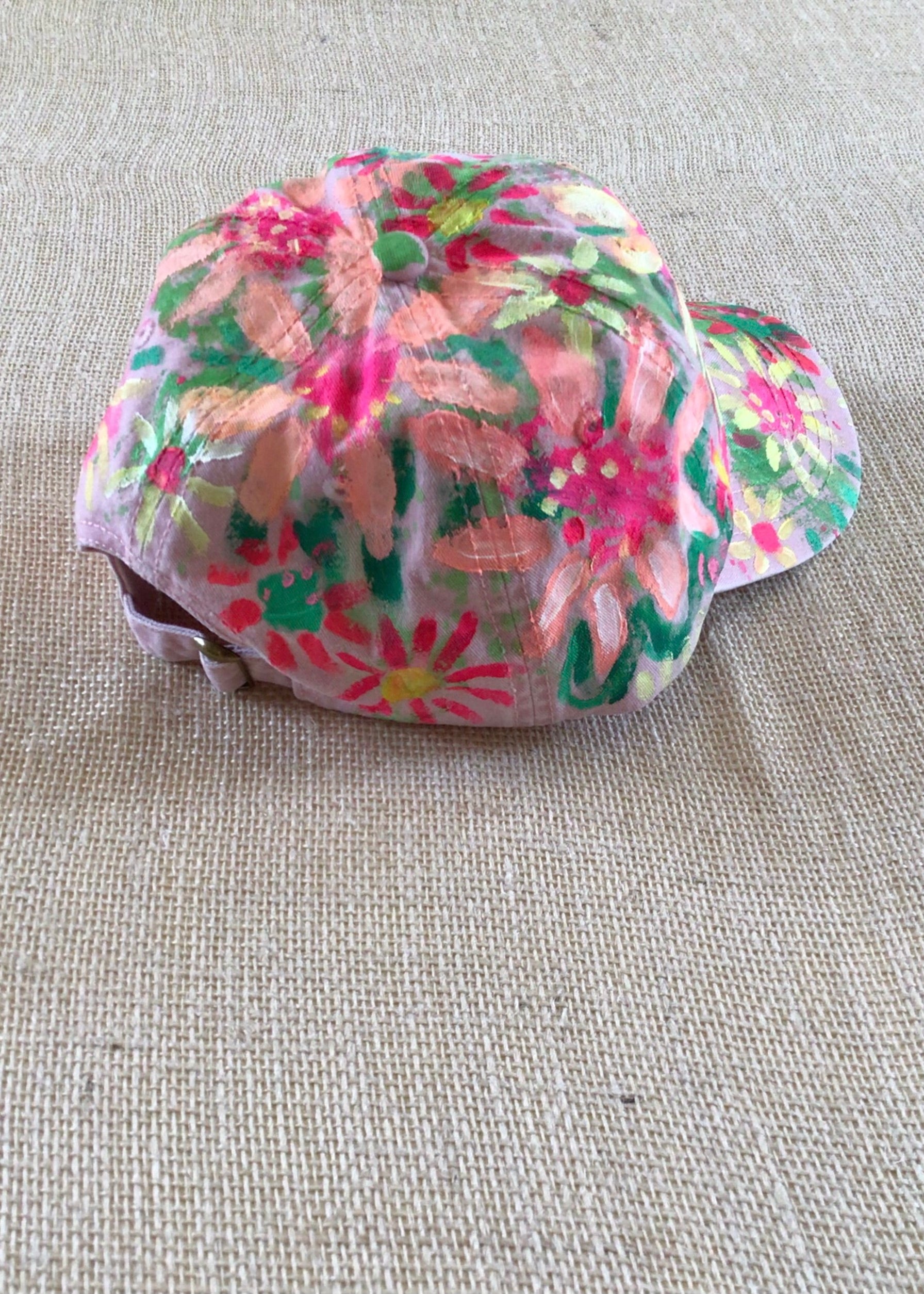 Pink Hand Painted Neon Yellow & Pink Flowers Baseball Cap