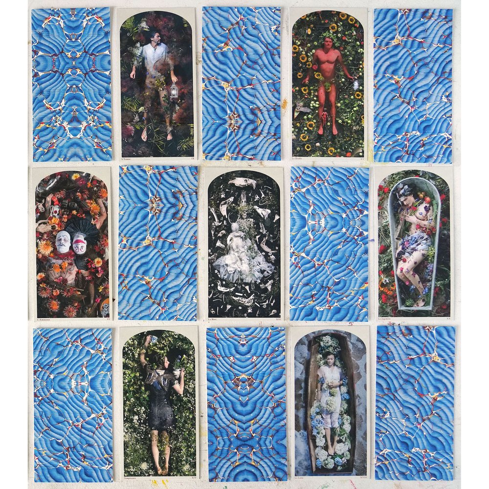 The new seasonal Tarot created in the artist’s gardens in Ghent, New York.They created these photos by changing perspective and floating the camera directly overhead about a body of water. A god’s-eye view of a world where water is rising up, infiltrating, and flooding, creating this netherworld dream space for us to see our future selves in. Printed on oversize high quality playing card stock with curved corners for maximum durability.