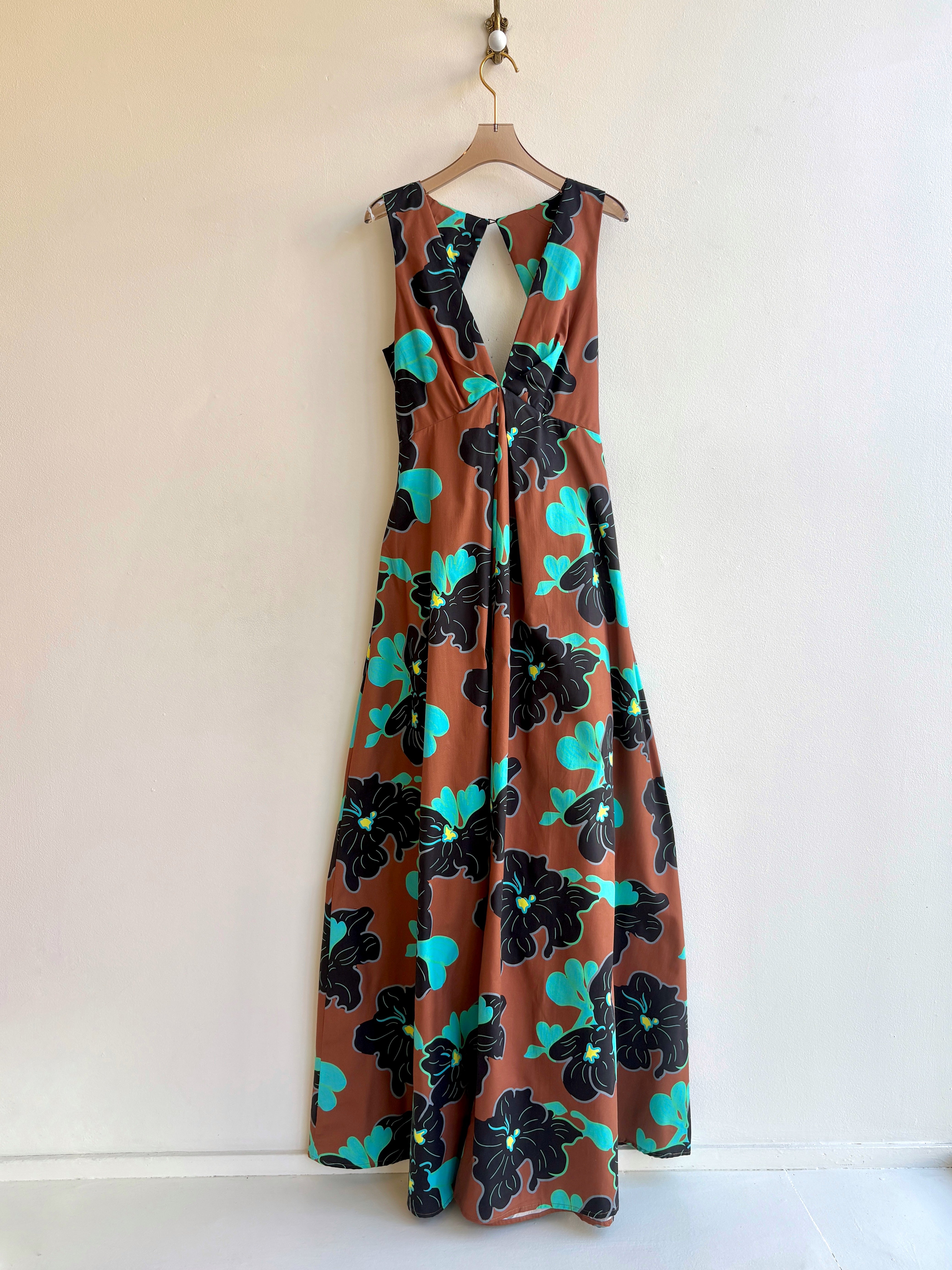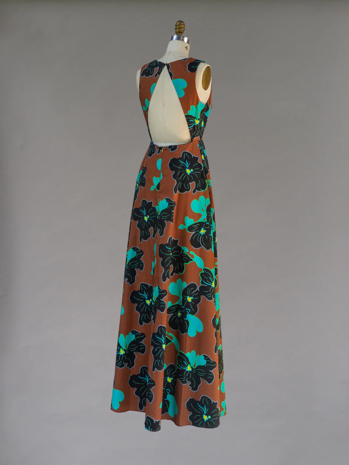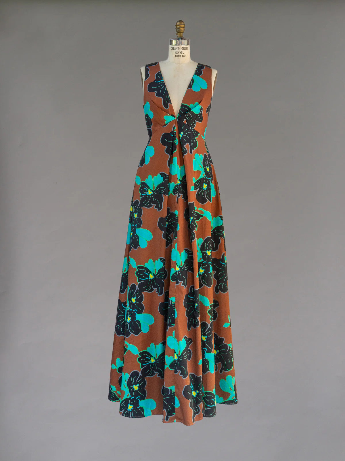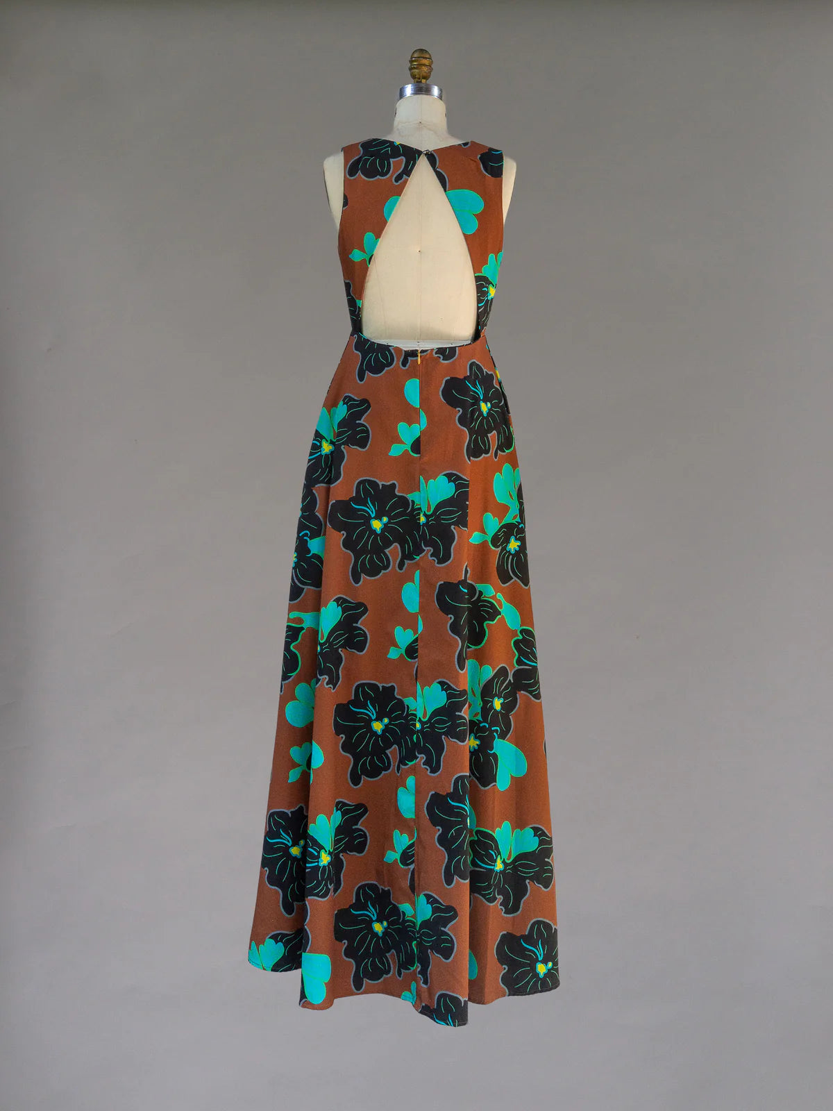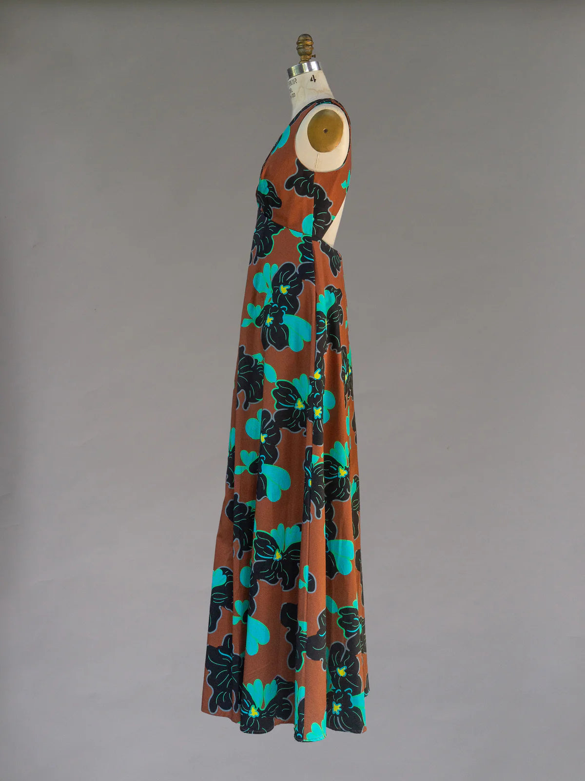 Brown, Black, & Blue Floral 1961 Chestnut Sleeveless “Origami” Dress