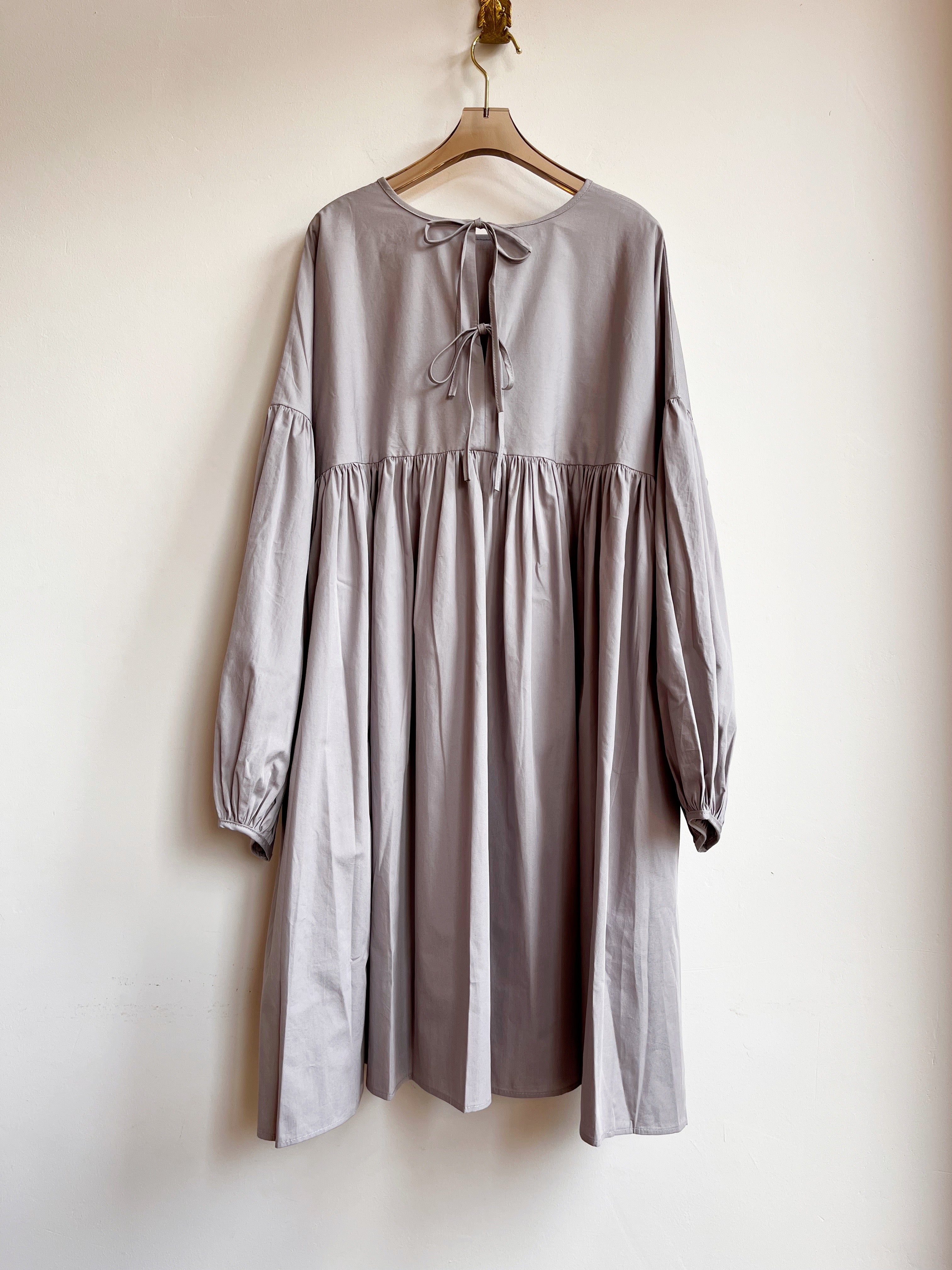 Grey Long Sleeve Cotton Phoebe Puff Sleeve Dress w/ Belt