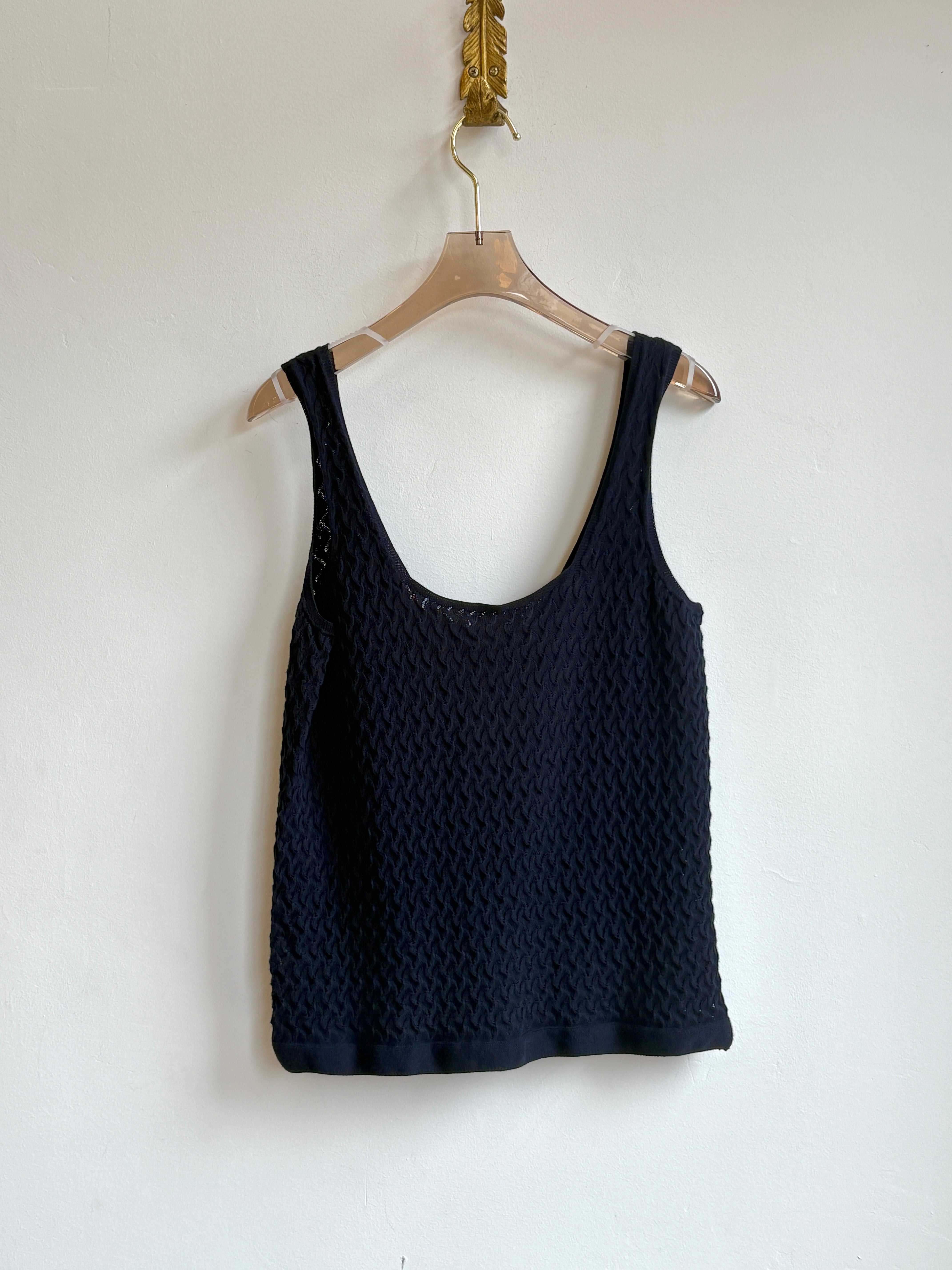 Navy Textured Pointelle Knit Tank Top