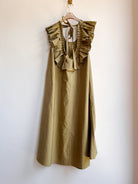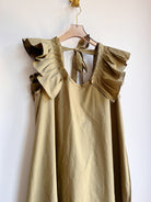 Olive Green Sleeveless Keyhole Back Ruffle Dress w/ Belt