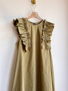 Olive Green Sleeveless Cotton Aria Ruffle Dress w/ Belt