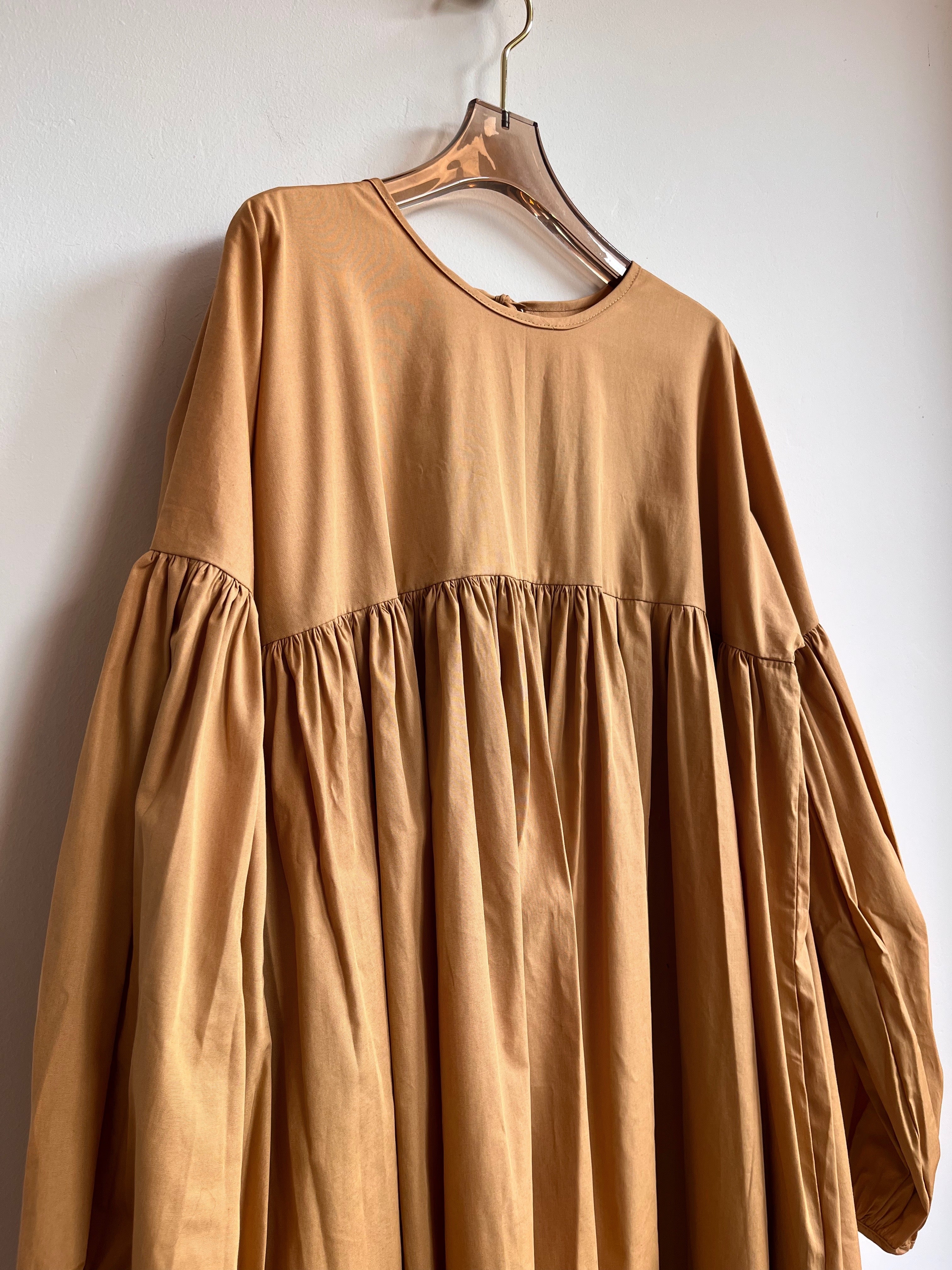 Caramel Beige Long Sleeve Cotton Phoebe Puff Sleeve Dress w/ Belt