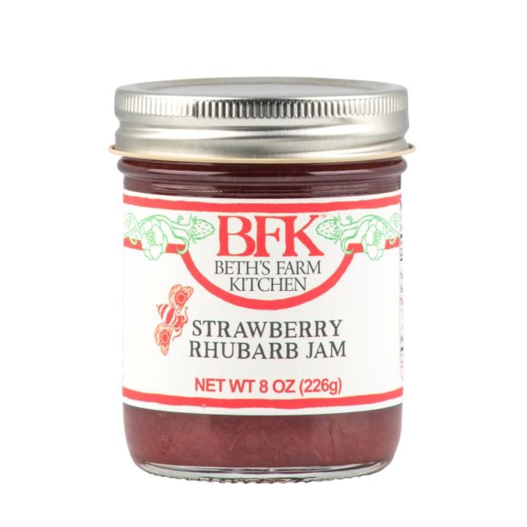 • The sweet goodness of local strawberries and the tart flavor of rhubarb makes this tango our best seller for 40 + years! (Make your toast with goat cheese for a delicious day to enjoy). - Vegan, Gluten-Free - No artificial colors or flavors - No artificial sweeteners - 8 oz Jar Natural Ingredients: strawberries, cane sugar, rhubarb, lemon juice, fruit pectin - Food Pairing: toast, yogurt, pancakes, waffles, crepes, dressing - Cheese Pairing: Goat, Triple Creme, Brie or Cream cheese Shelf Life: unopened 24 months, opened and refrigerated 3 months