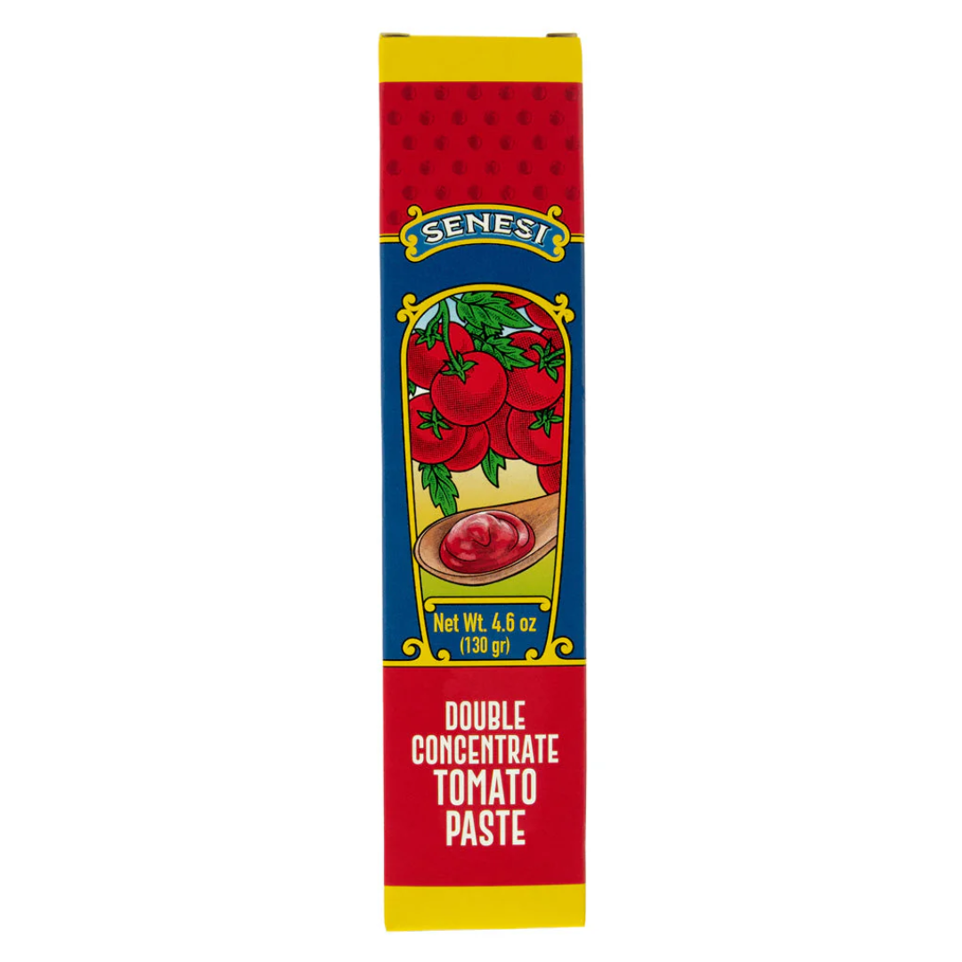 - Indulge in the rich flavor and intense color of Senesi Double Concentrated Tomato Paste. Made with handpicked, sun-ripened tomatoes, this paste is double concentrated for a bolder taste. Perfect for adding depth to sauces, soups, and stews. Experience luxury in every tube.