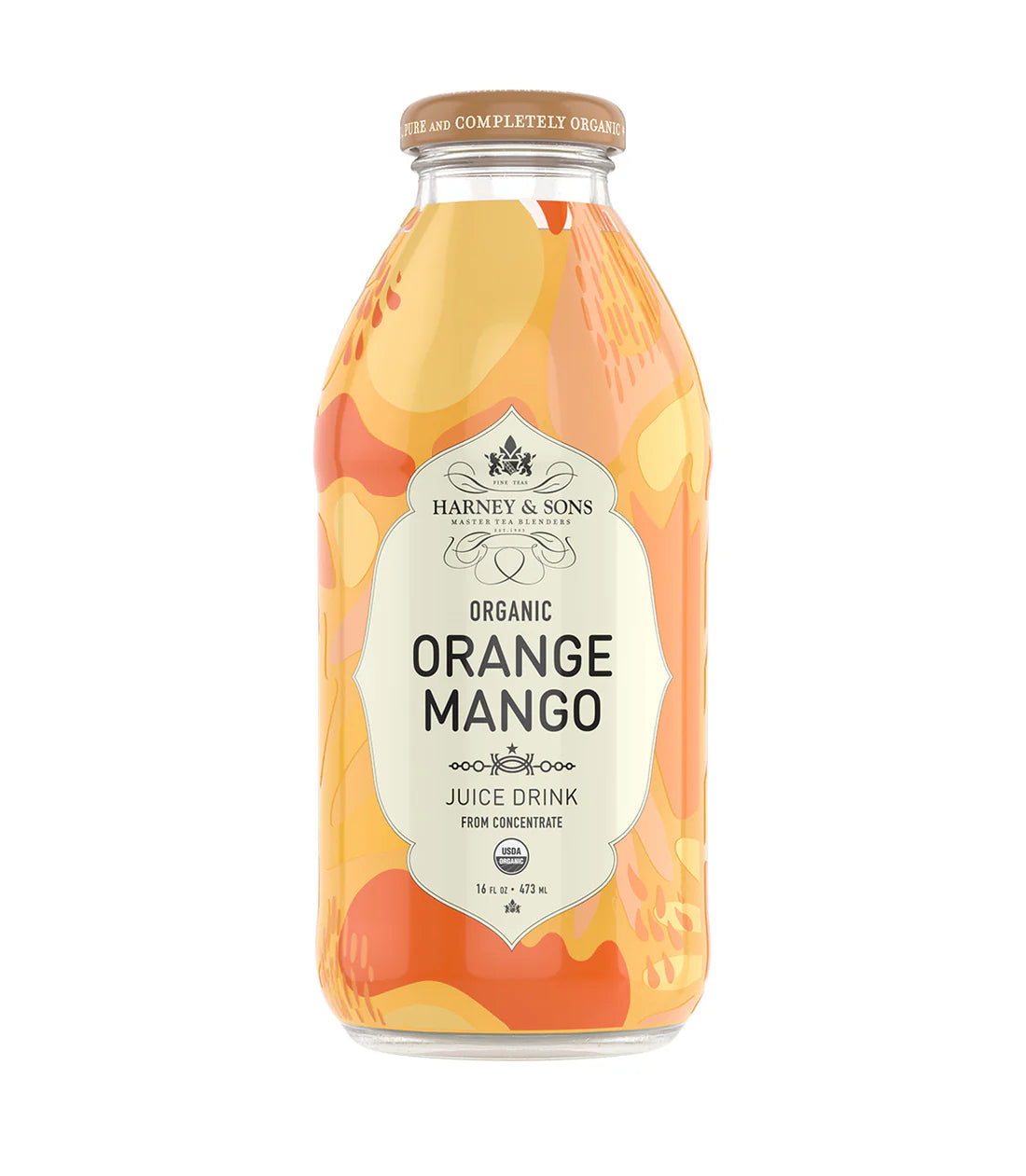 - Serve up a wholesome alternative to soda and sugary beverages with this Harney & Sons organic orange mango juice! This juice features the perfect blend of organic orange juice and organic mango puree with a splash of passion fruit juice and hibiscus juice added for tart flavor and bright color. It's made with triple-filtered water for the purest taste available.