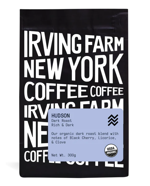 - Hudson Dark Roast, notes of black licorice, cherry, clove