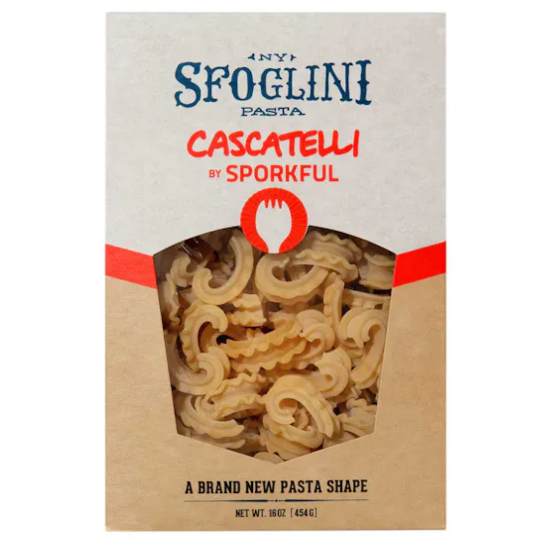 - From the mind of James Beard Award winner Dan Pashman, creator and host of The Sporkful food podcast, comes CASCATELLI (Italian for “waterfalls”). Three years in the making, this brand new shape was created in collaboration with the artisans at Sfoglini. Cascatelli is designed to maximize the three qualities by which Dan believes all pasta shapes should be judged: Sauceability: How readily sauce adheres to the shape; Forkability: How easy it is to get the shape on your fork and keep it there; Toothsinkability: How satisfying it is to sink your teeth into it. 16oz