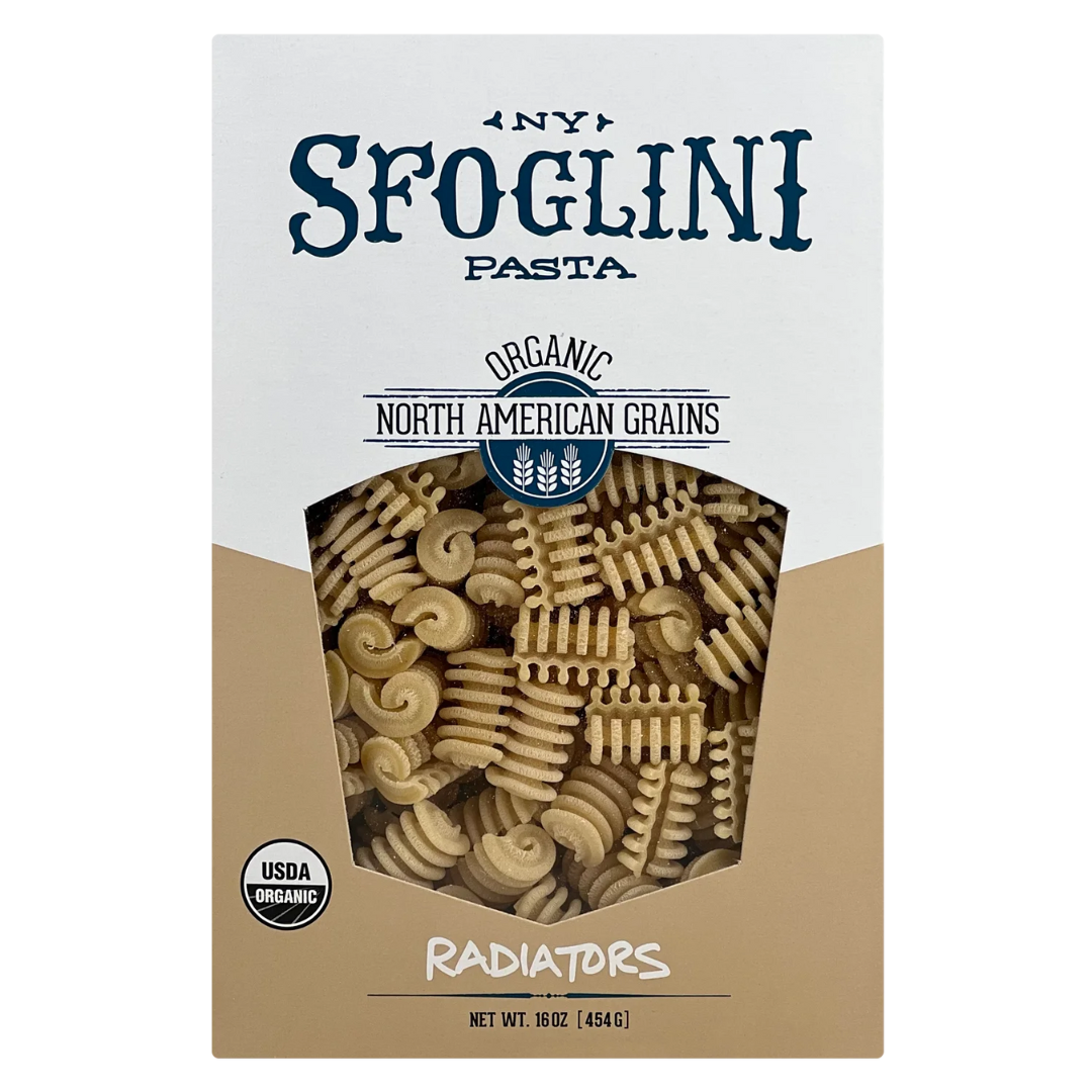 Traditionally named radiatore, after old cast-iron steam radiators, our radiators have nooks and ruffled edges that capture extra sauce to offer a superb bite every time. The design development for radiatore dates to between the two World Wars making it one of the newer shapes in the lineage of dried pasta. Great for chunky tomato sauces, add hunks of bacon and sausage, or combine with arugula, tomato and onion. 16oz.
