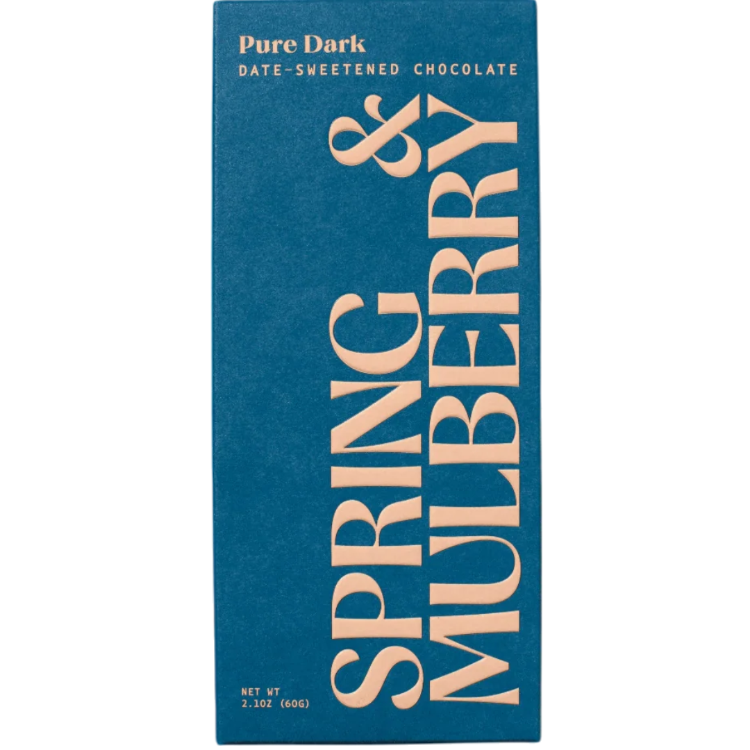 • Where it all began. Their sumptuous dark chocolate is crafted by hand, using just three (delicious, highest-quality, organic) ingredients: cacao beans, cacao butter, and dates. The result is a rich, velvety bar that celebrates the true flavor of chocolate. No added sugar. Direct-trade cacao.