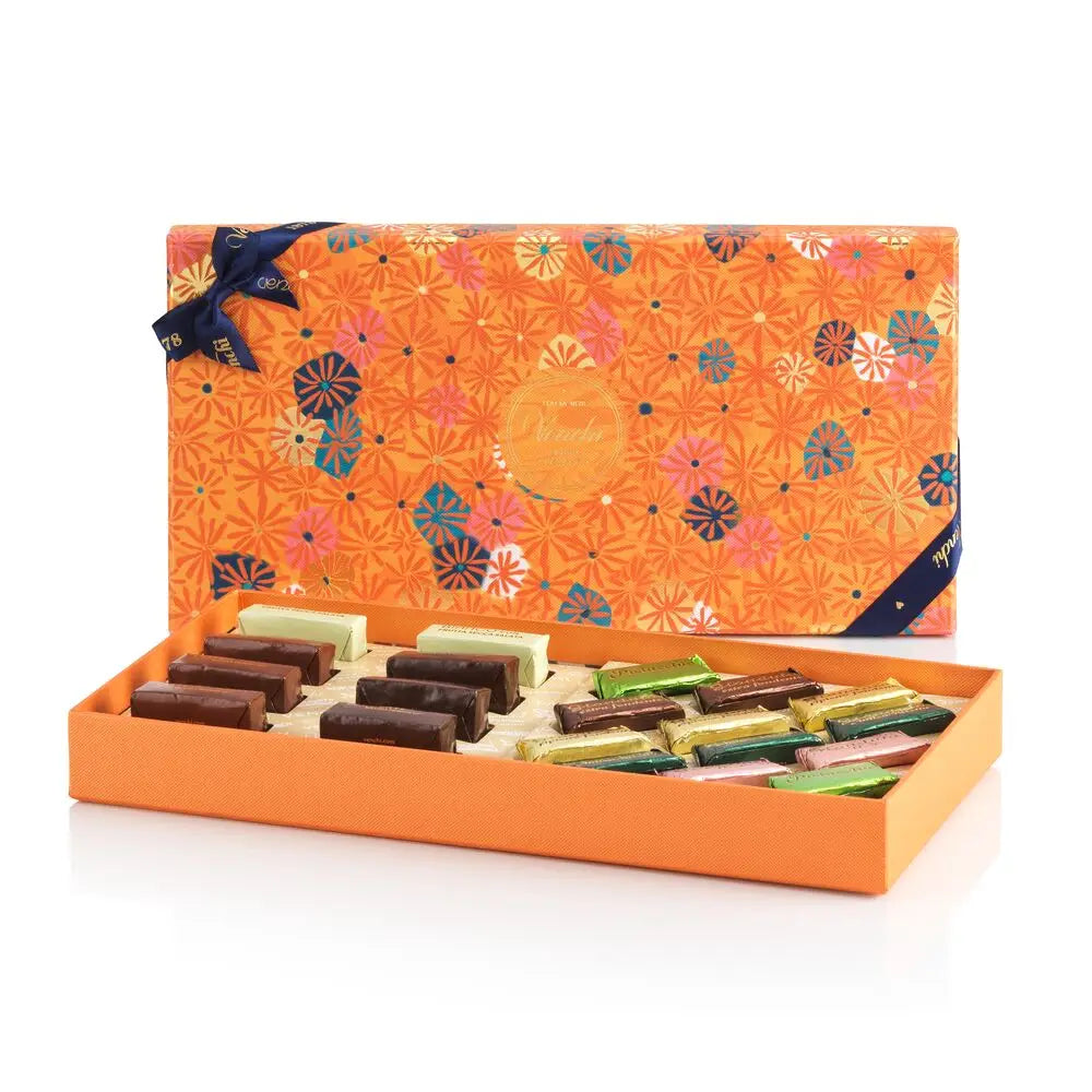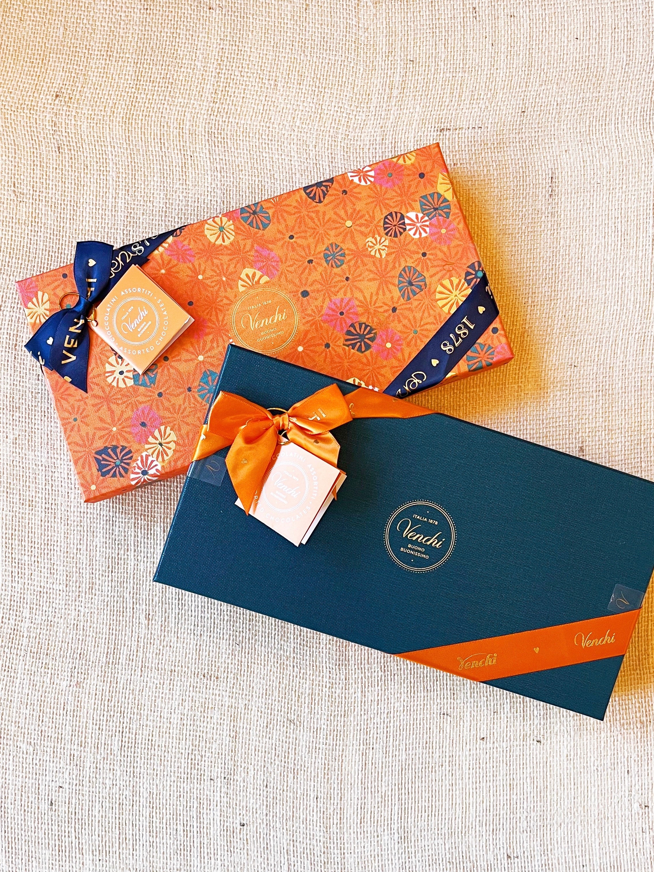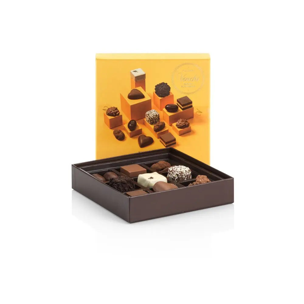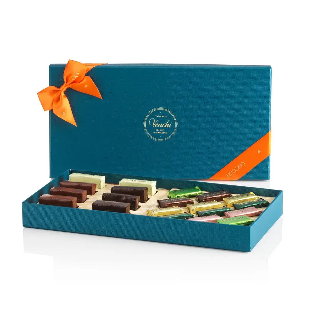 With 26 of assorted Venchi iconic chocolates: Chocoviar Stracciatella, Gianduiotto and Milk with Hazelnut Pearl