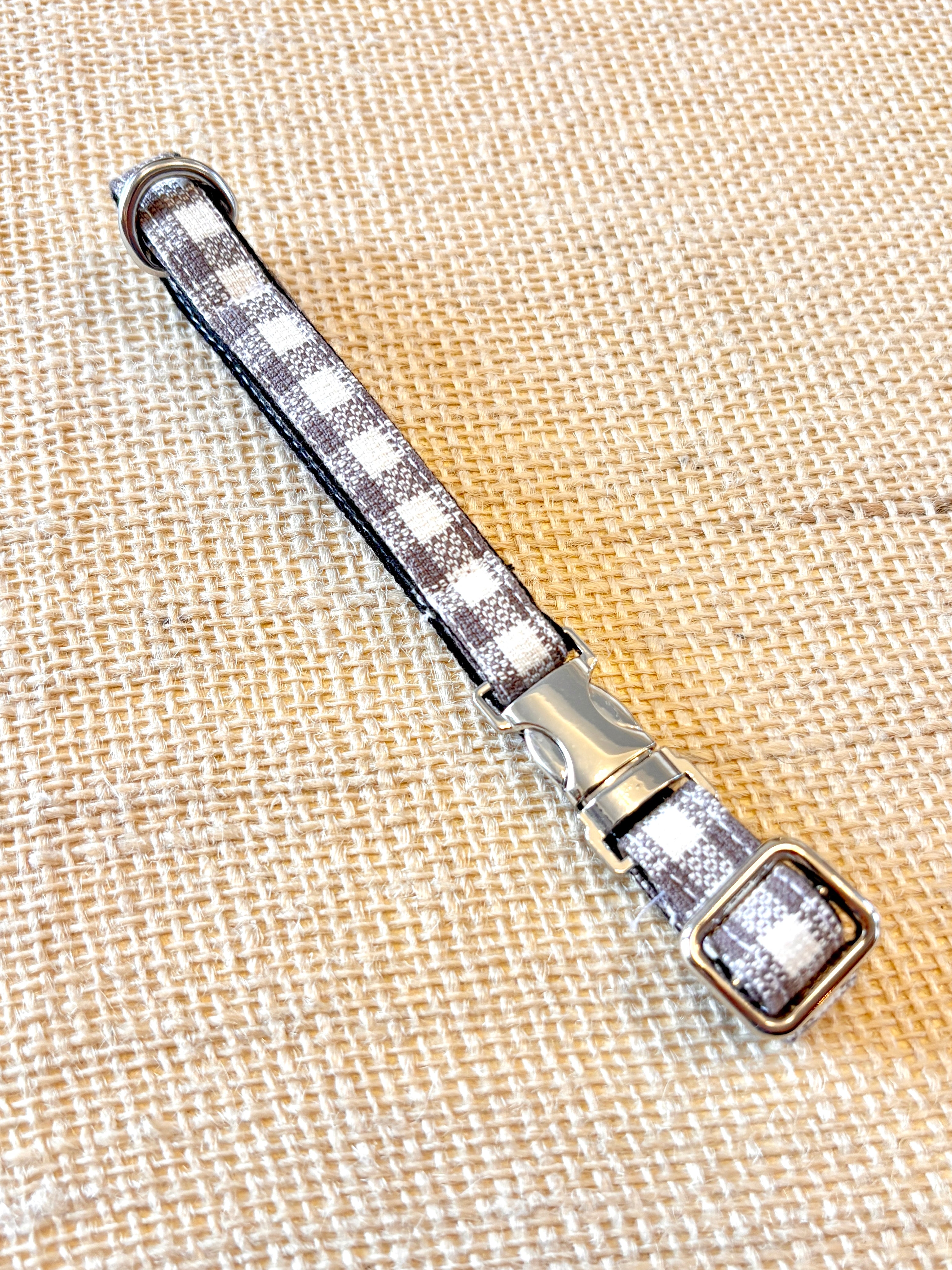 The newest accessory from the MXH Atelier is perfect for any four-legged friend. Sturdy, stylish, and truly one of a kind, these adjustable dog collars are crafted from deadstock remnants sourced from our Catskill factory. Each collar features a silver toned metal buckle, an adjustable tri-glide for a snug and customizable fit across a range of sizes, and a thick D-ring ready for both name tags and a leash.
