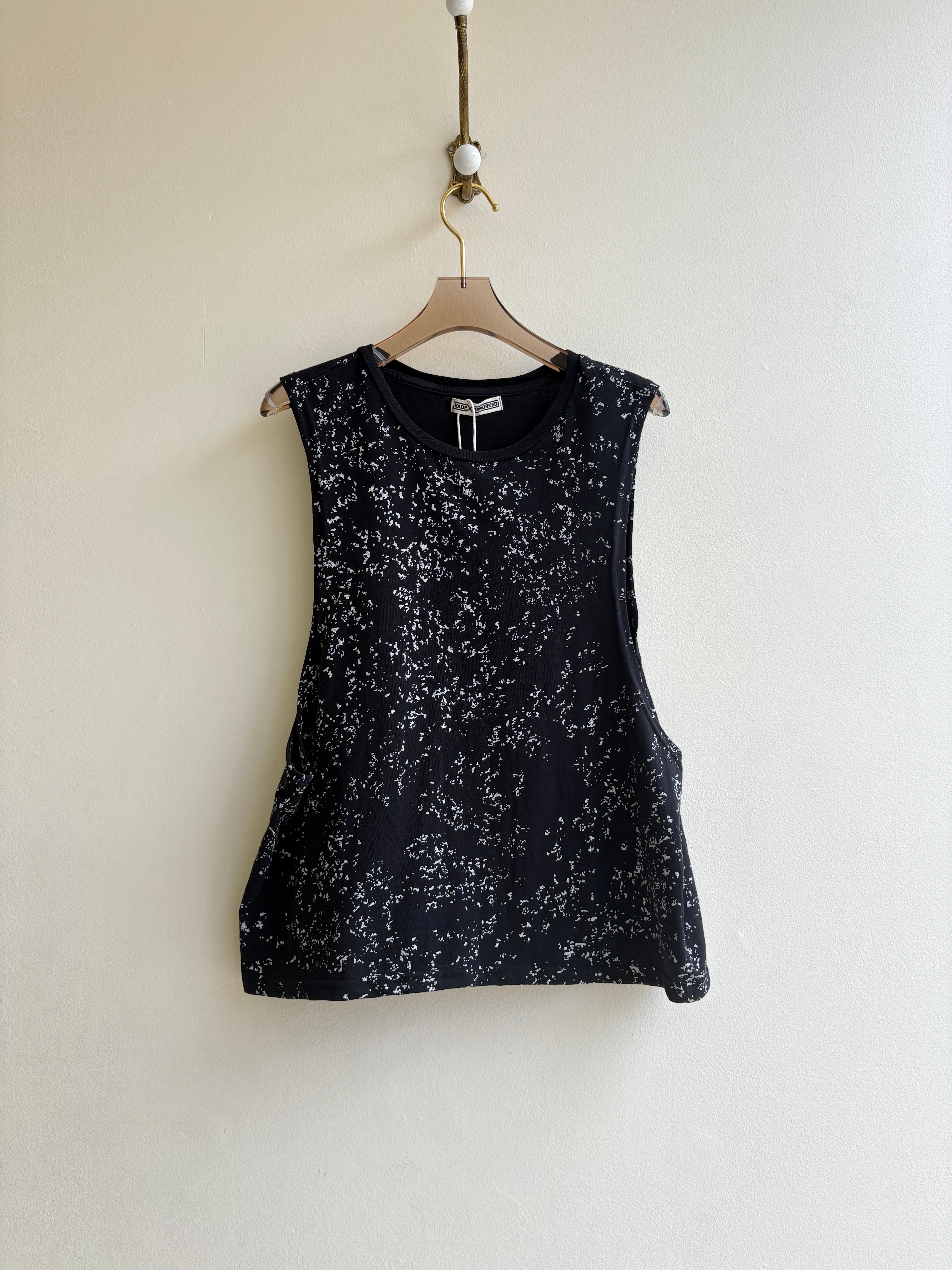 - Vintage graphic t-shirt reworked into cropped sleeveless muscle tee/tank top