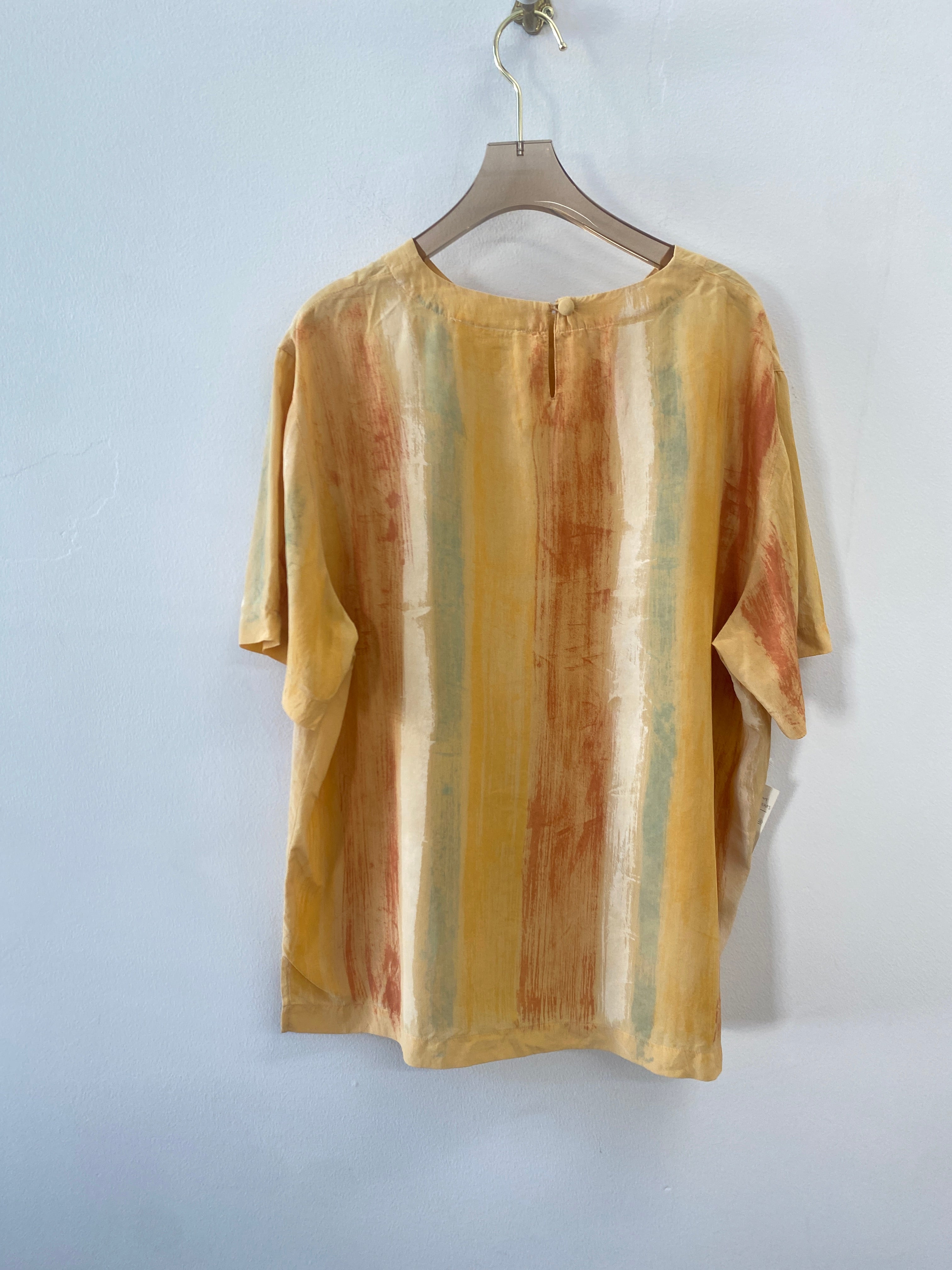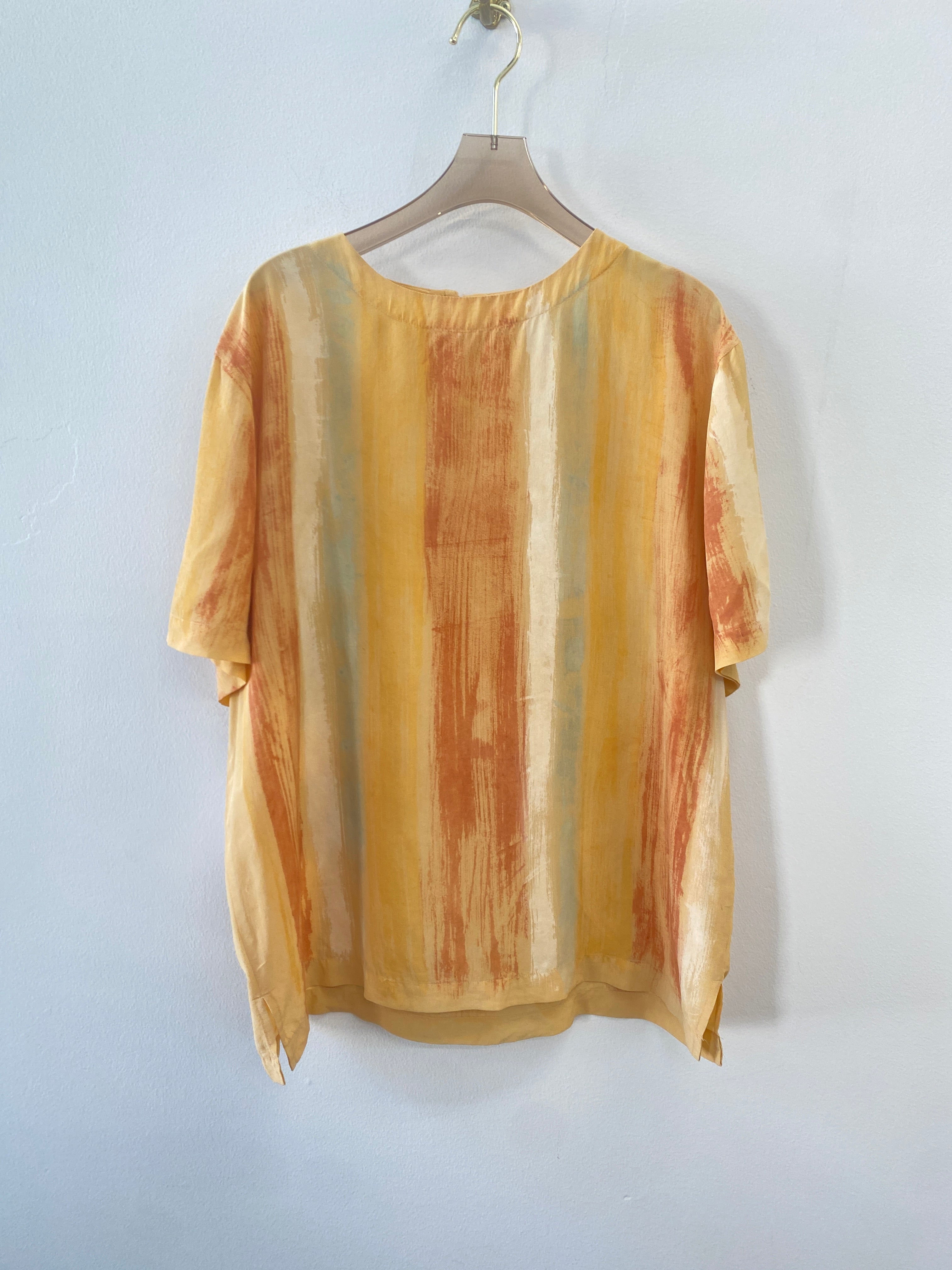 Hand Painted Short Sleeve Silk Top (Orange & Yellow)