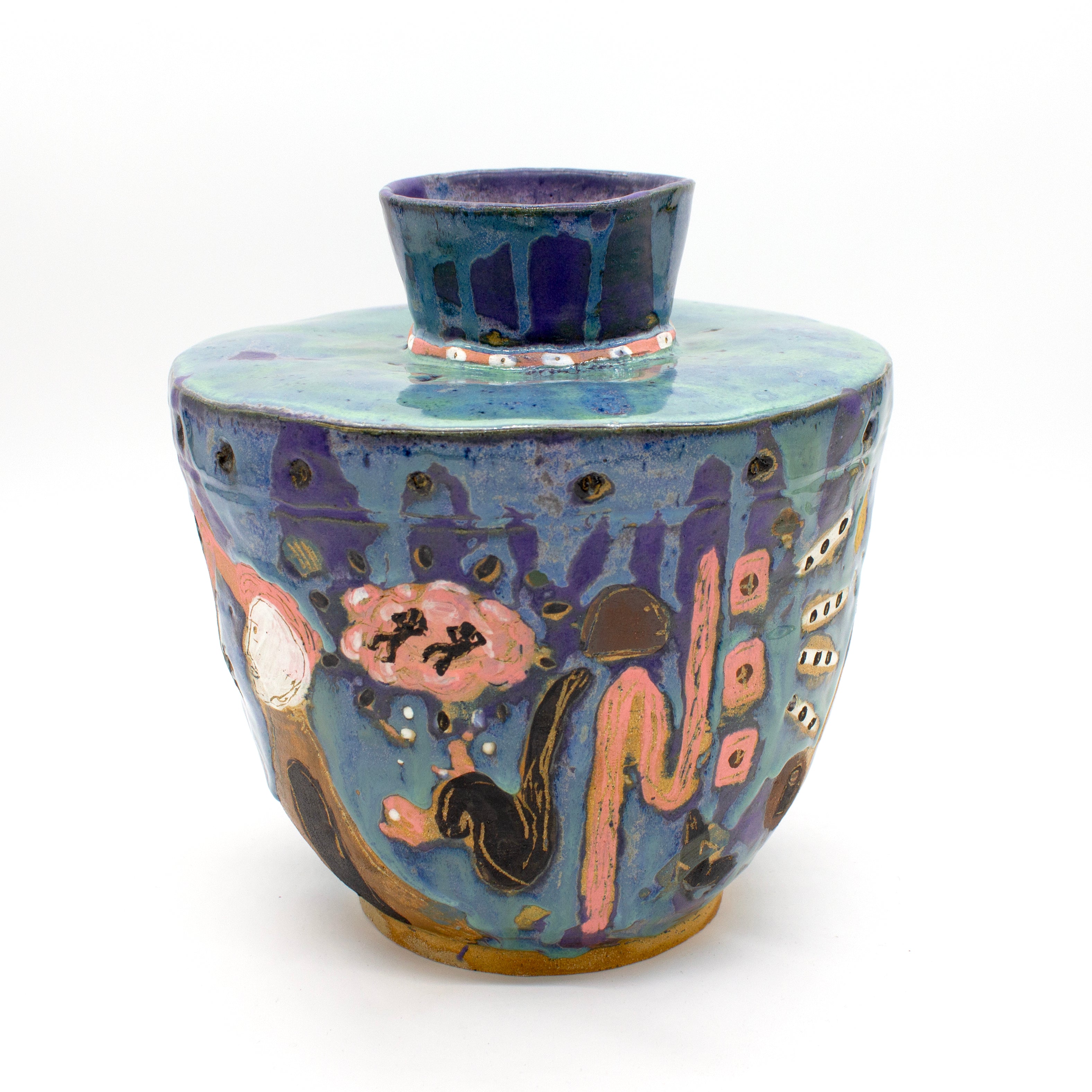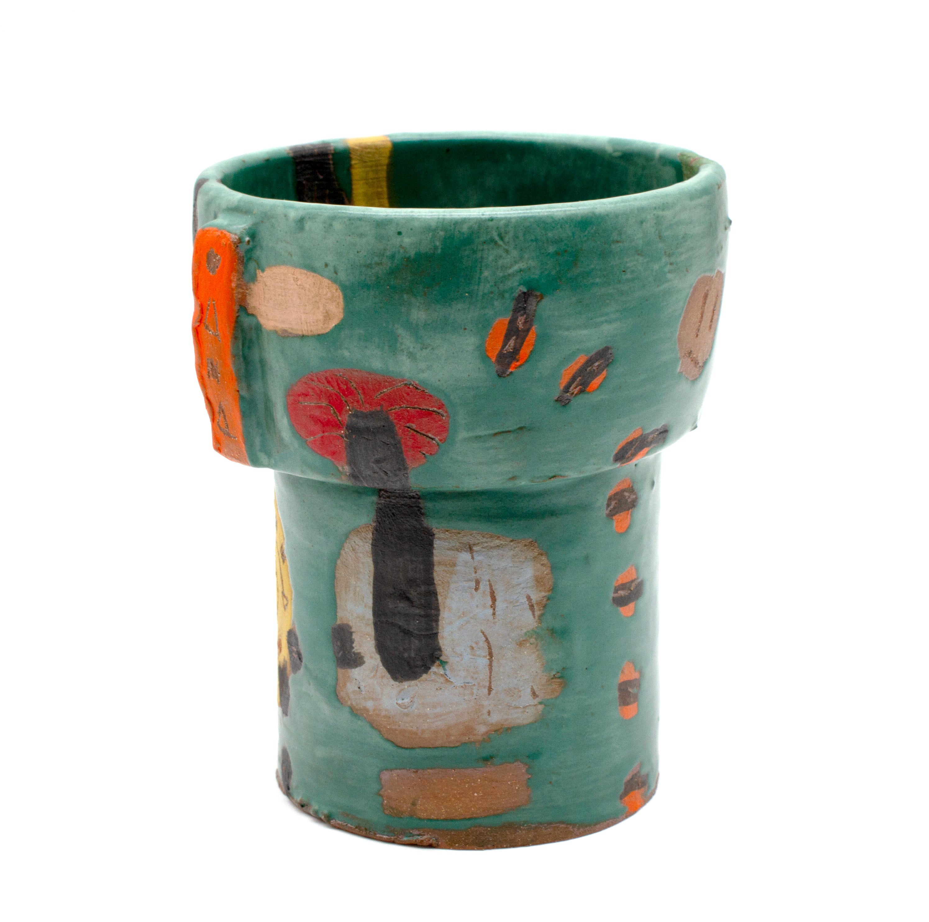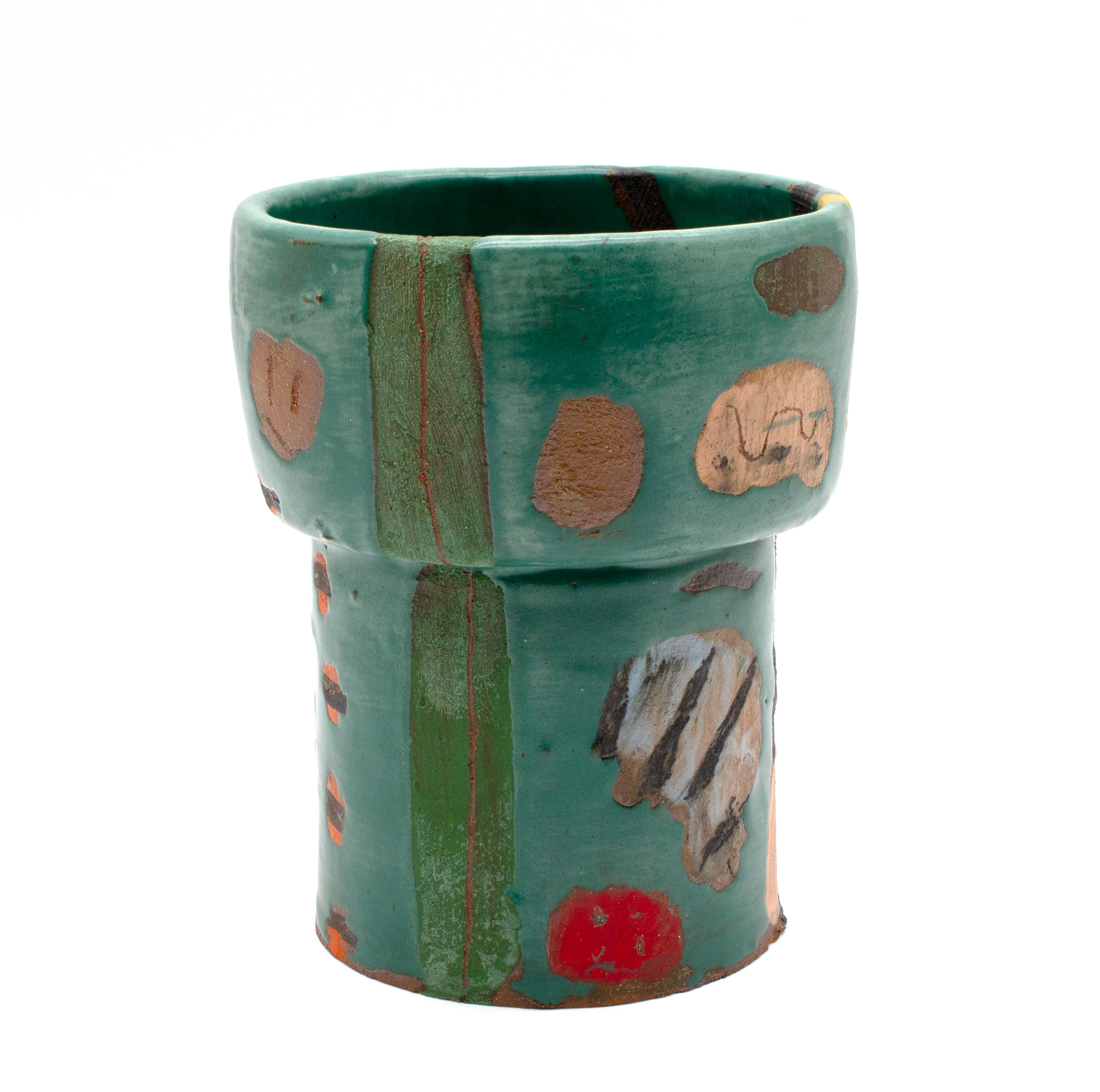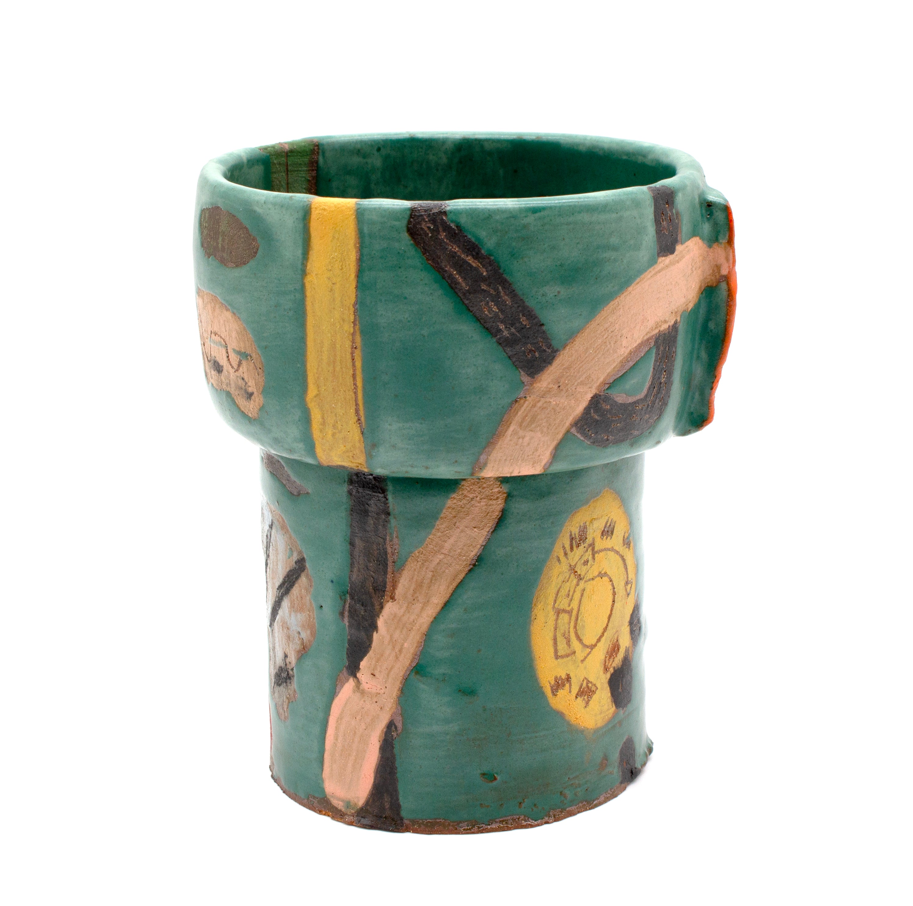 Mark Harrington is a self-taught painter and ceramicist living and working in Brooklyn NY. Utilizing both hand-building and pottery wheel techniques, he creates stoneware vessels and sculptures from collaged forms that later serve as the surface for intuitive mark-making, experimental color and compounded narratives. Mark’s vibrant and irregular ceramics draw influence from contemporary abstract painting while being firmly rooted in the historical tradition of decorative vessel-making.