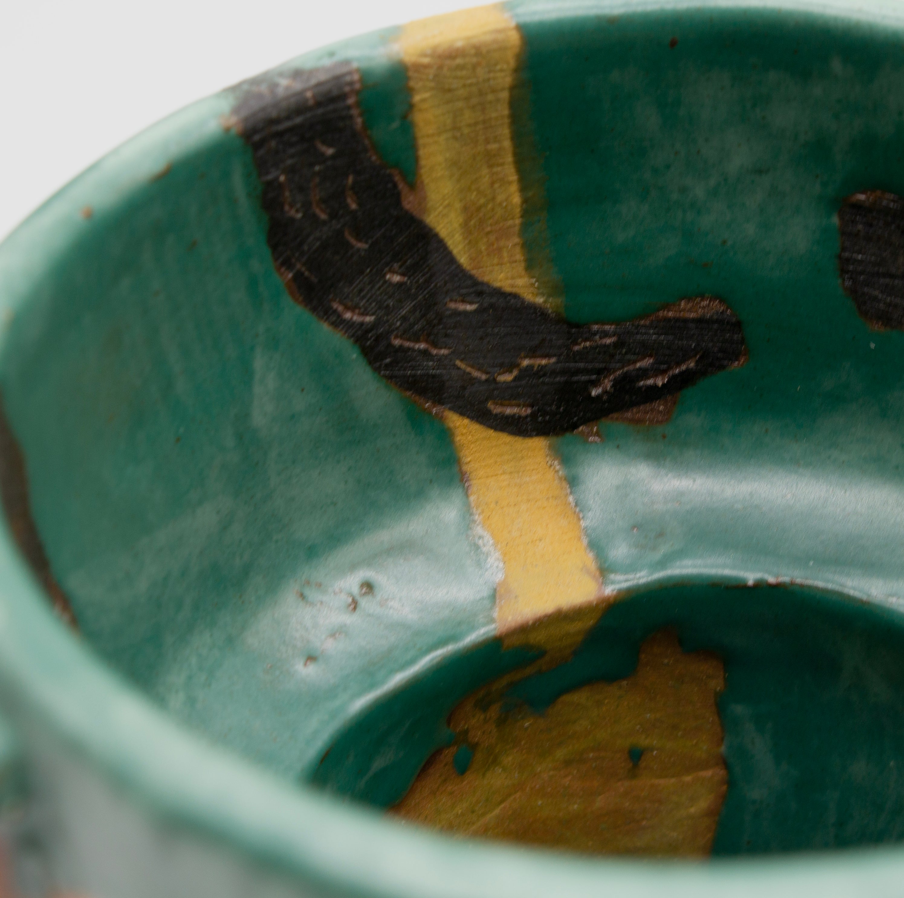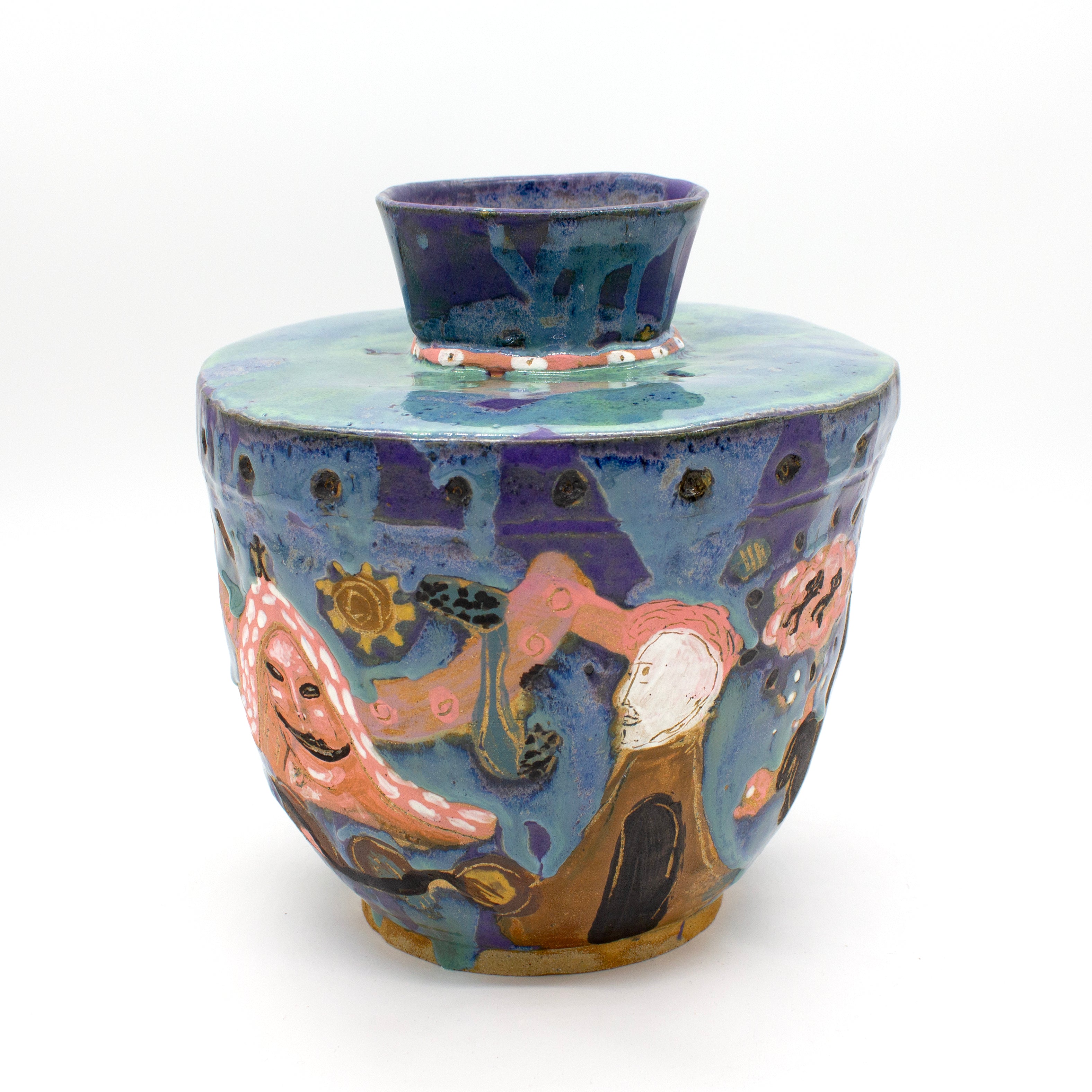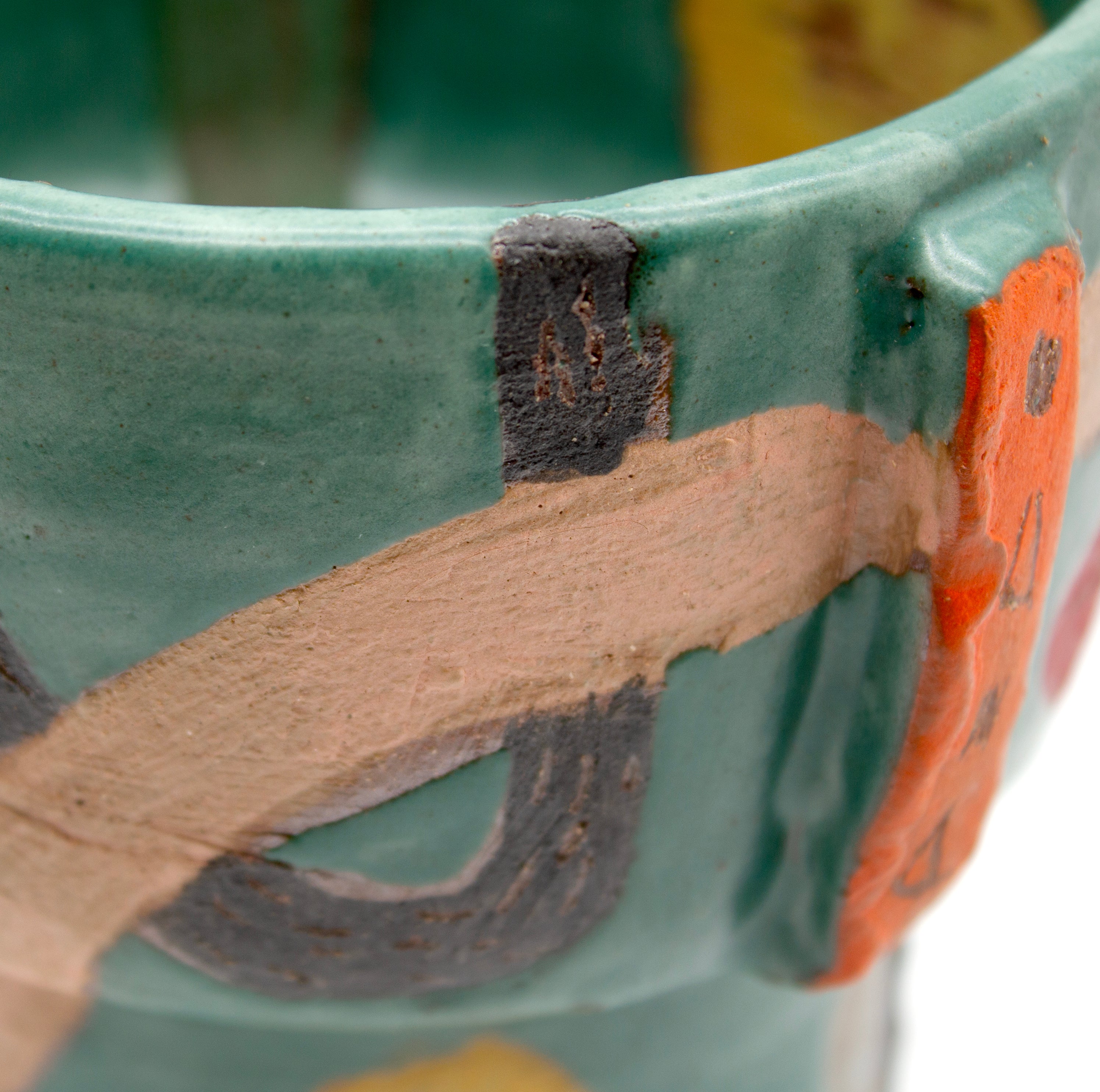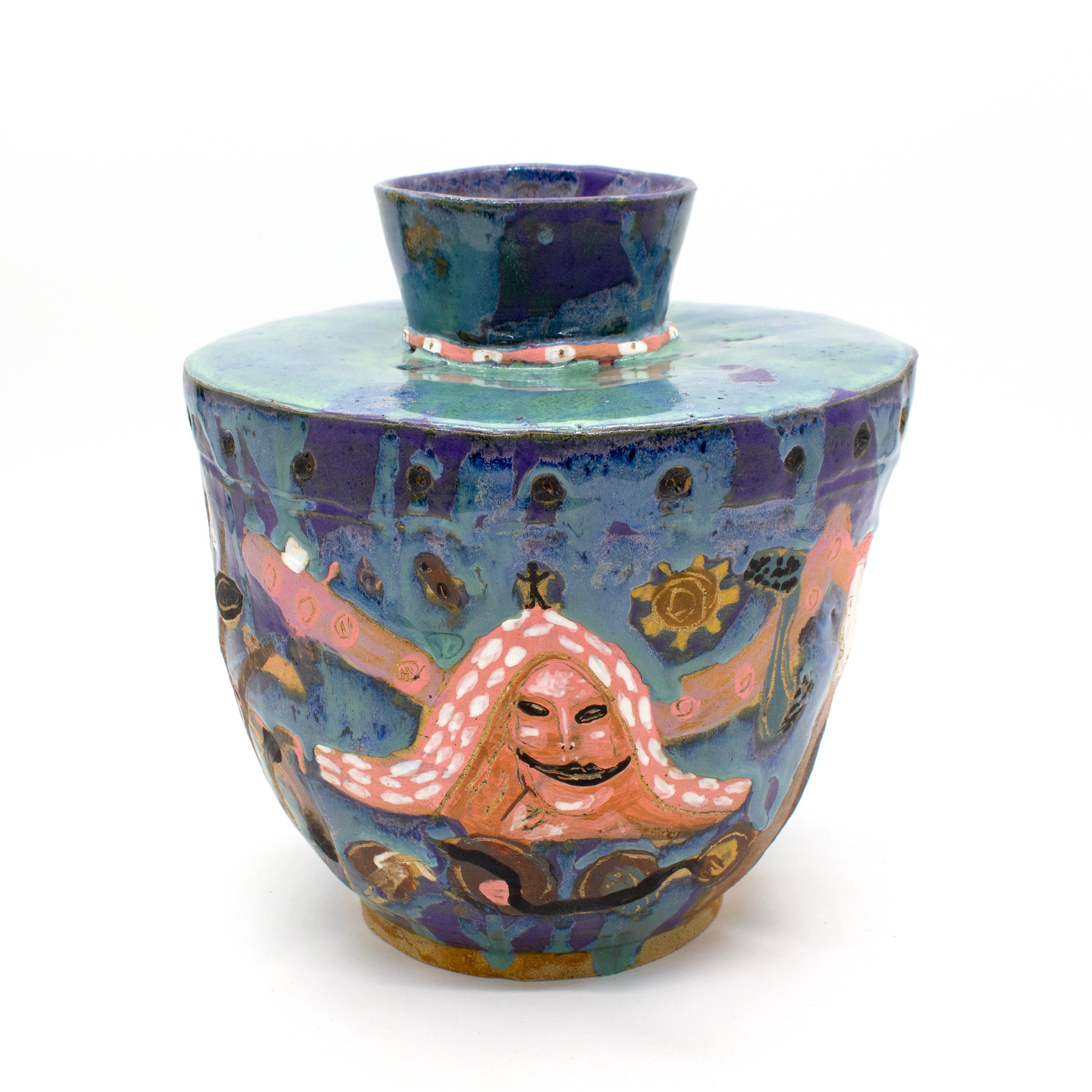 Mark Harrington is a self-taught painter and ceramicist living and working in Brooklyn NY. Utilizing both hand-building and pottery wheel techniques, he creates stoneware vessels and sculptures from collaged forms that later serve as the surface for intuitive mark-making, experimental color and compounded narratives. Mark’s vibrant and irregular ceramics draw influence from contemporary abstract painting while being firmly rooted in the historical tradition of decorative vessel-making.