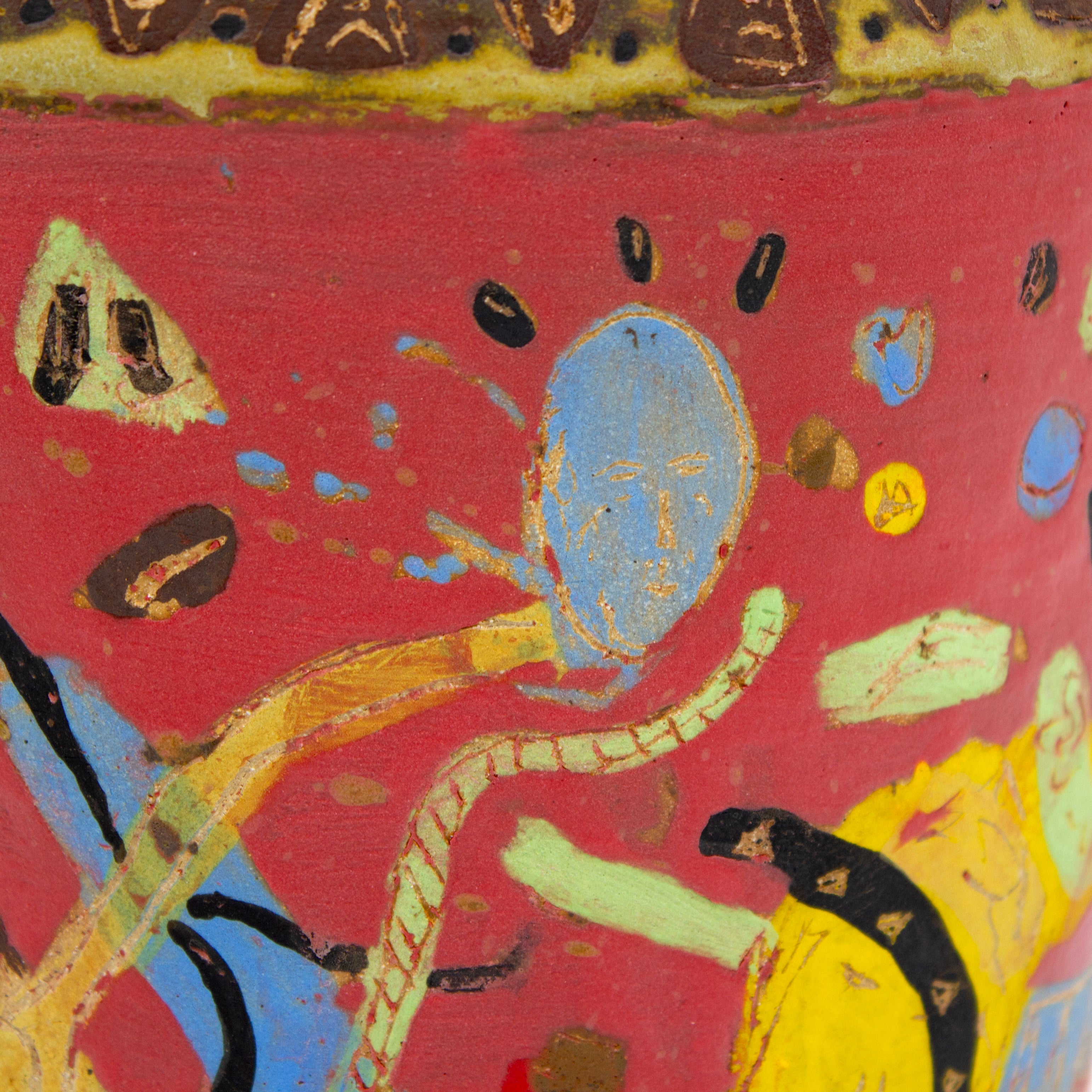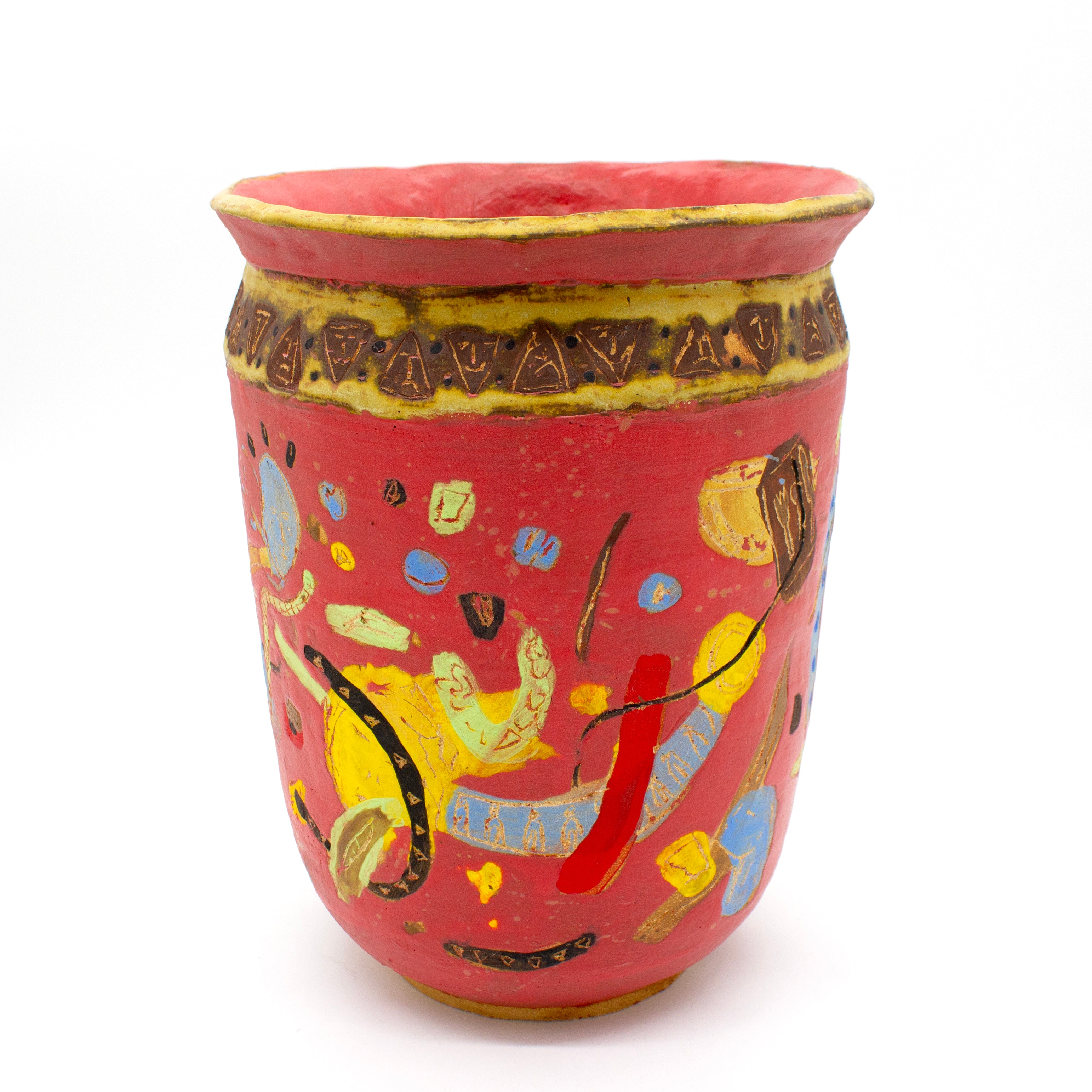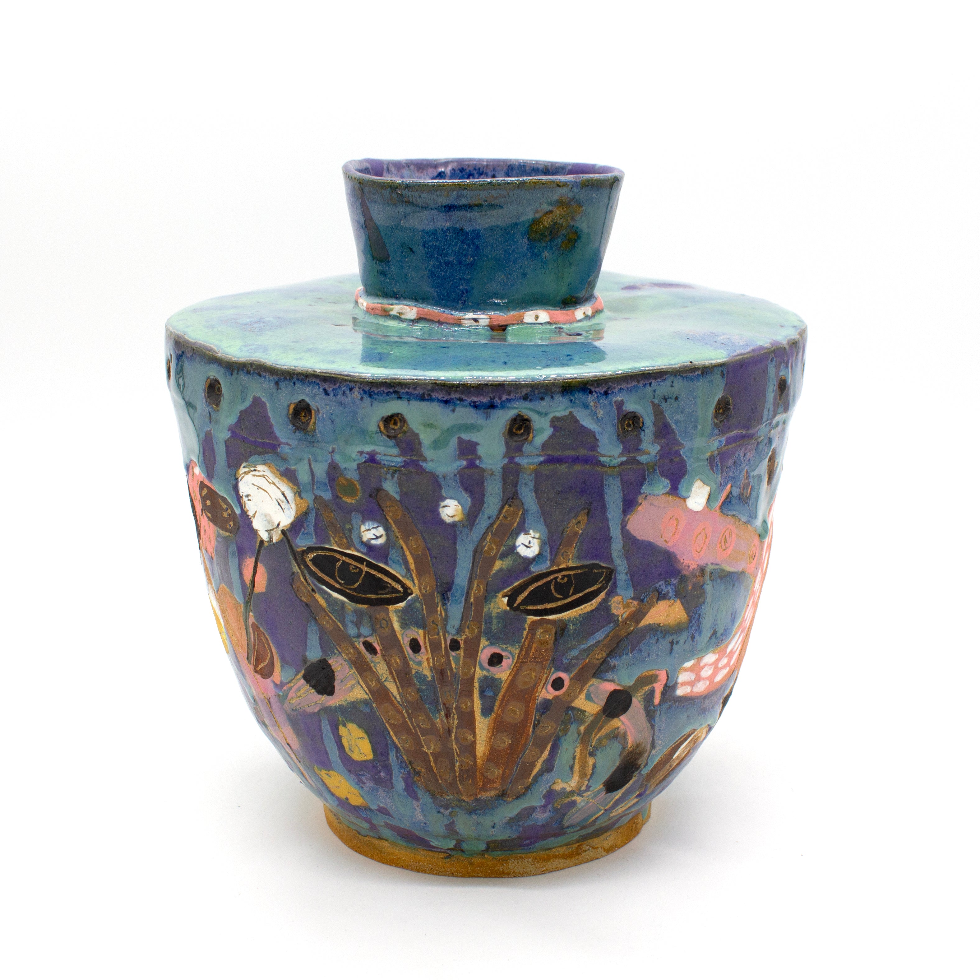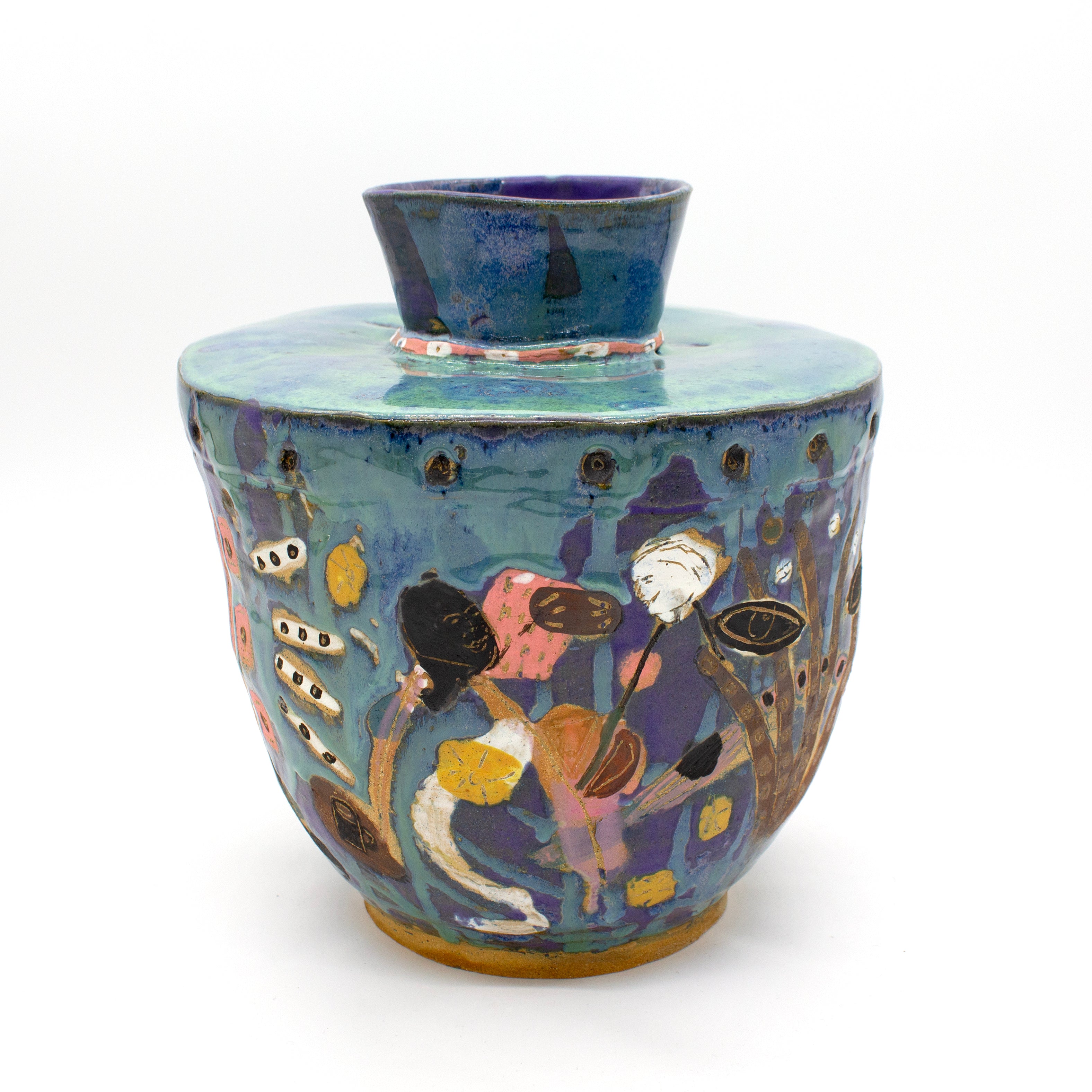 Mark Harrington is a self-taught painter and ceramicist living and working in Brooklyn NY. Utilizing both hand-building and pottery wheel techniques, he creates stoneware vessels and sculptures from collaged forms that later serve as the surface for intuitive mark-making, experimental color and compounded narratives. Mark’s vibrant and irregular ceramics draw influence from contemporary abstract painting while being firmly rooted in the historical tradition of decorative vessel-making.