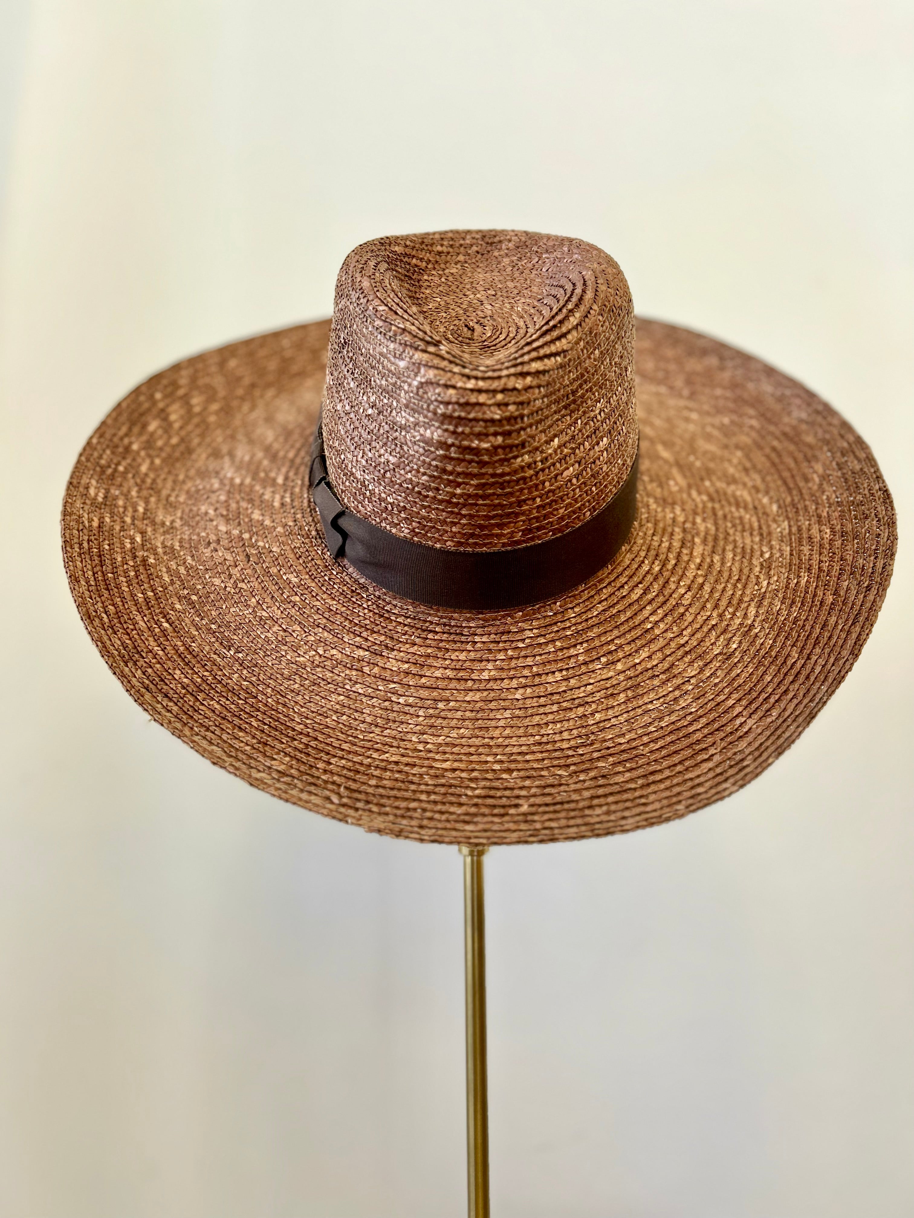 Brown Wide Brim Hat w/ Ribbon Accent
