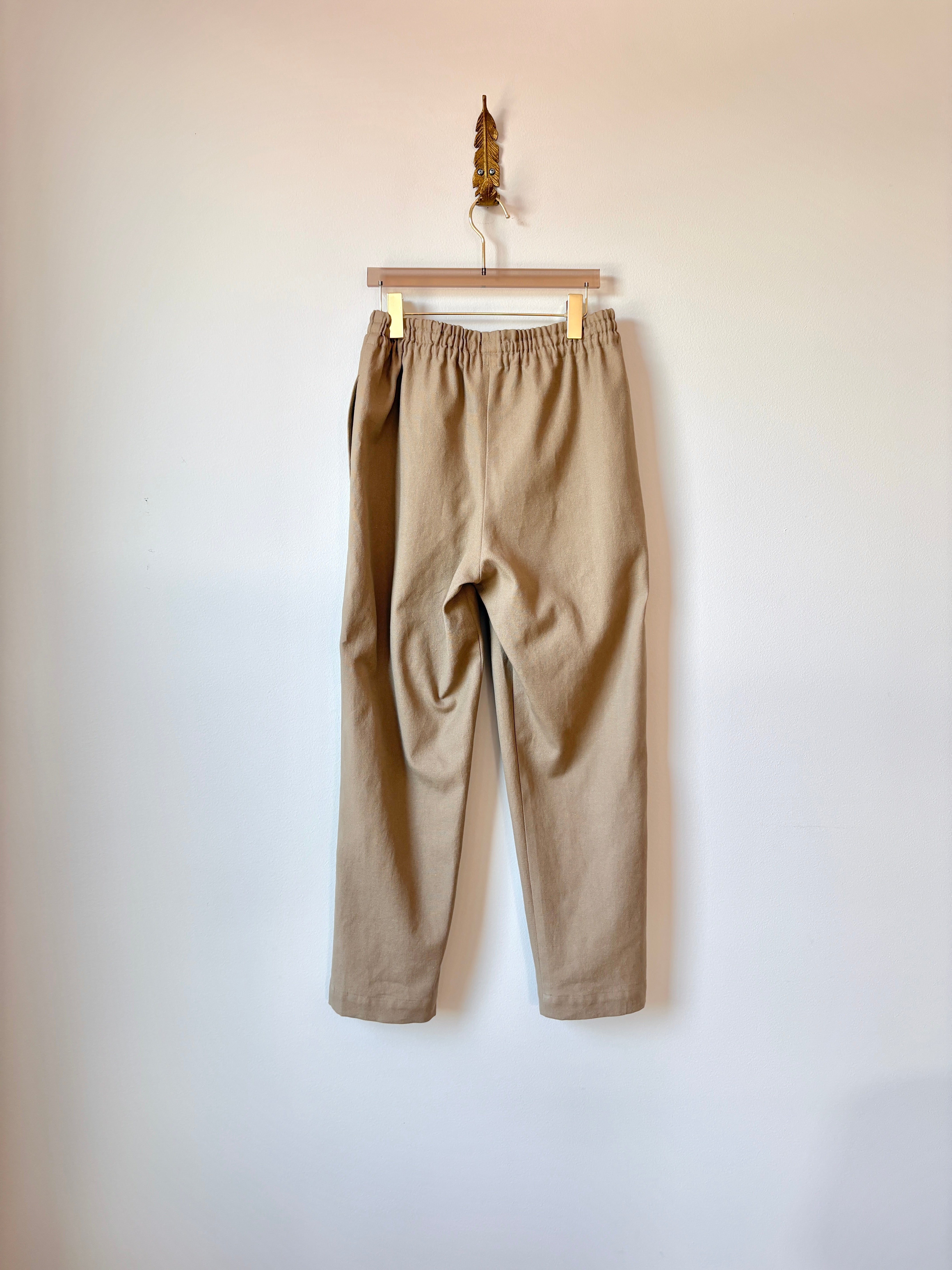 This pair is made from mid-weight hemp-cotton canvas in a khaki.