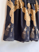 - Deadstock silk fabric with black and neutral ropes-and-tassels print