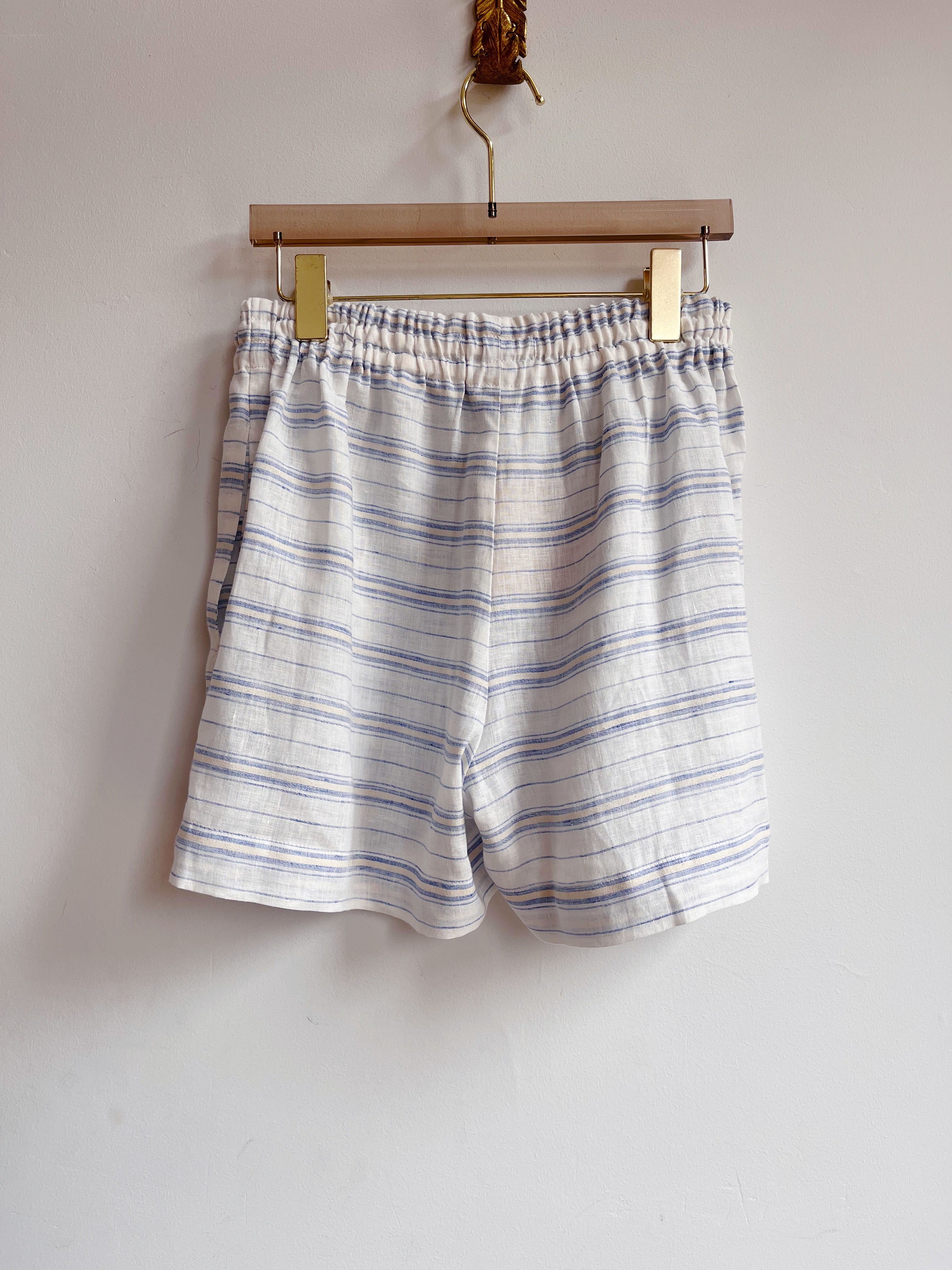 White, Blue & Cream Linen Town Shorts