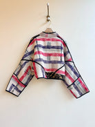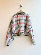 The Kaira Cropped Jacket is made from repurposed Vintage Kantha quilts, and the original patina includes areas of fraying, patches and an age-softened feel.
