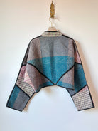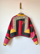 The Kaira Cropped Jacket is made from repurposed Vintage Kantha quilts, and the original patina includes areas of fraying, patches and an age-softened feel.