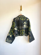 Reversible Suzani Quilted Cropped Jacket in Colors Black, Green, Sage, Grey & Black, Green, Sage, Grey