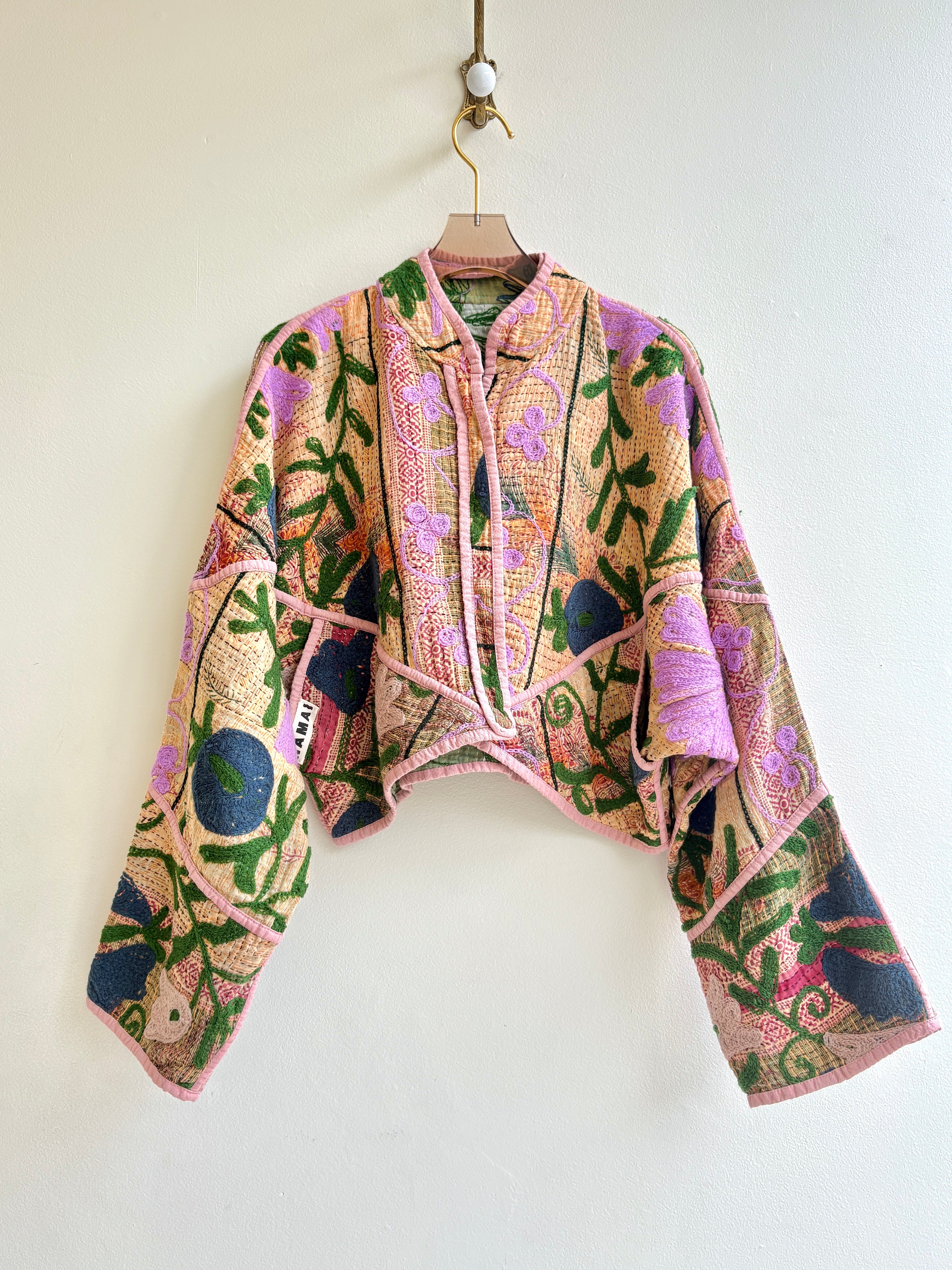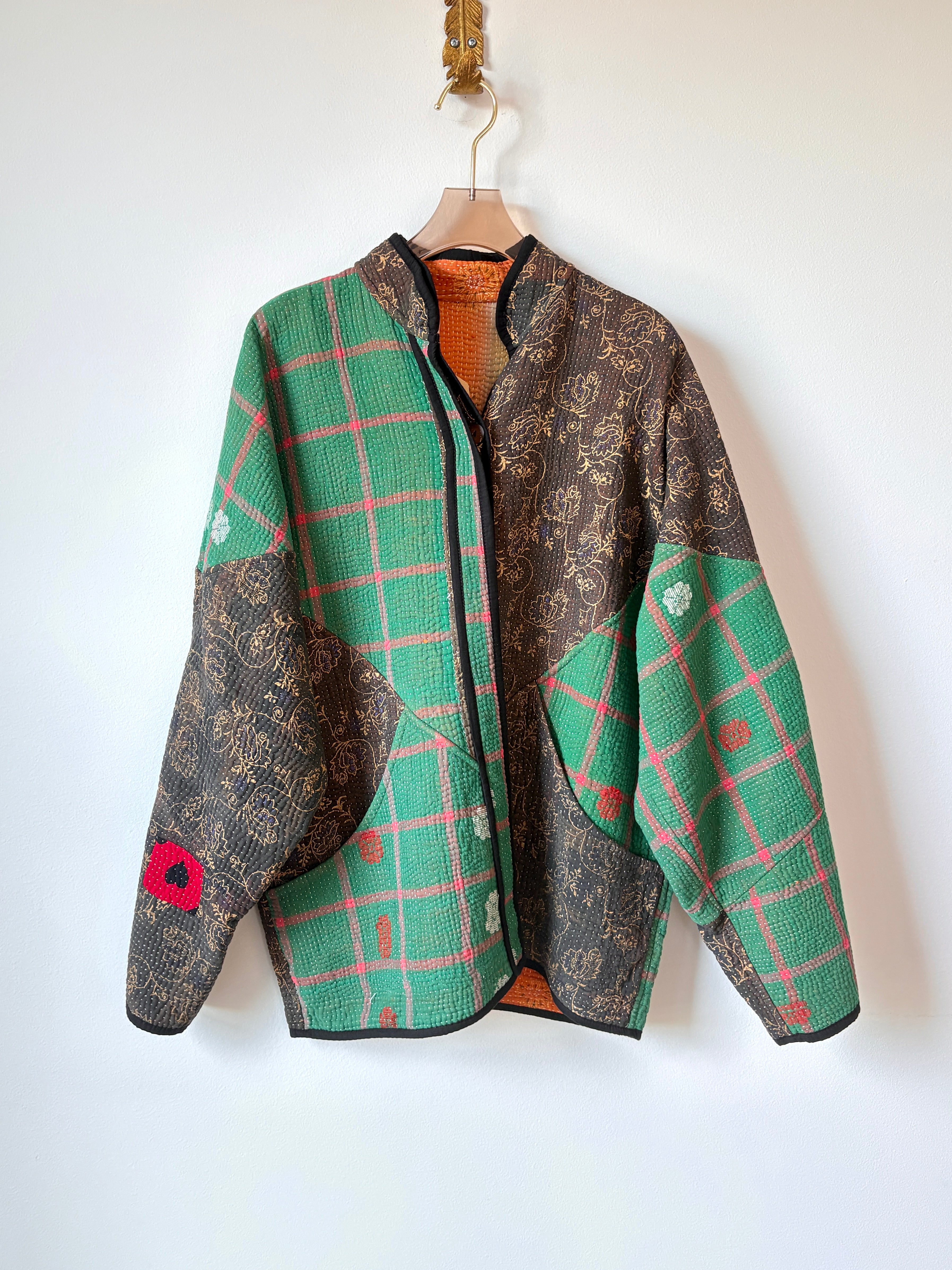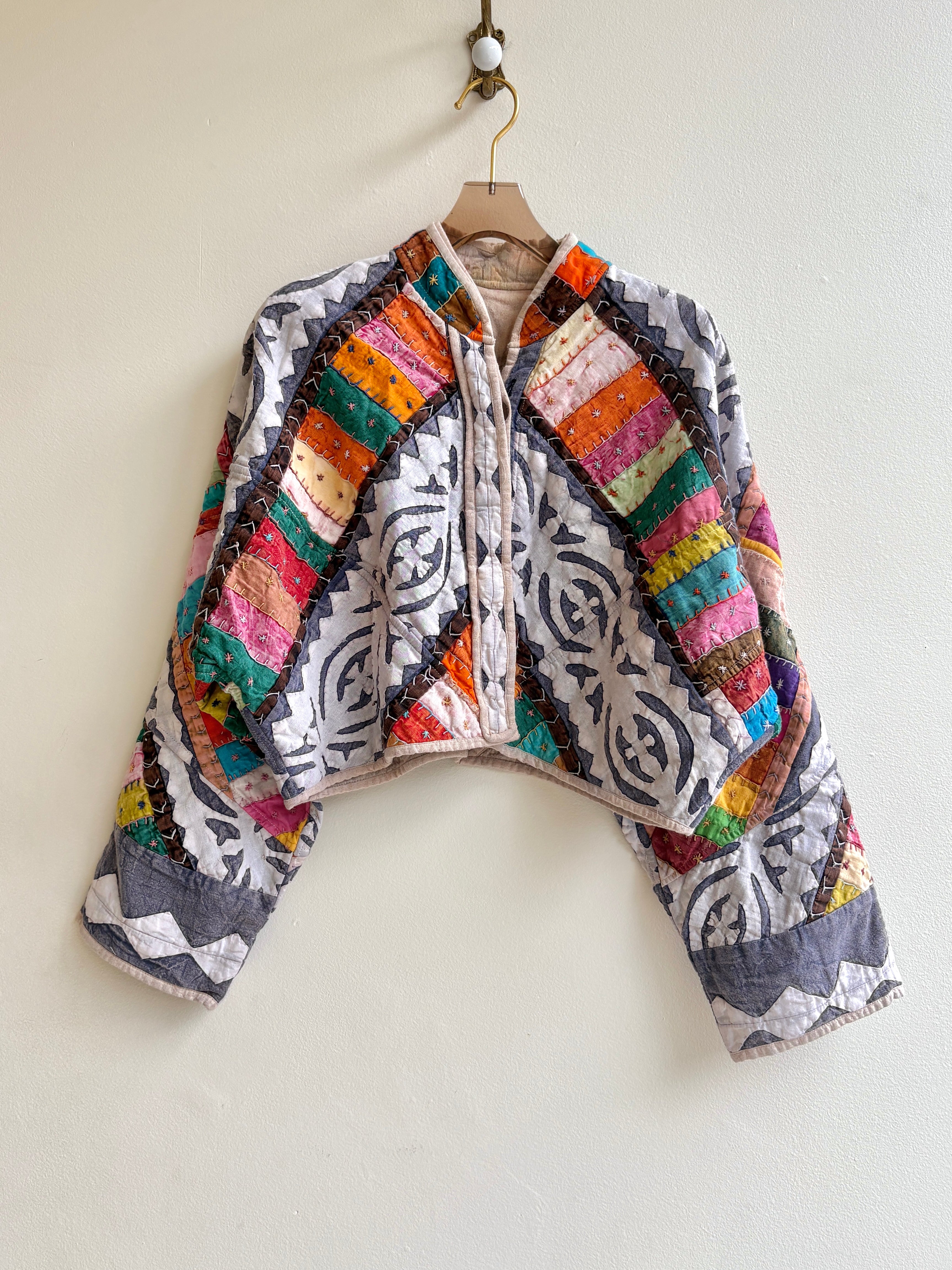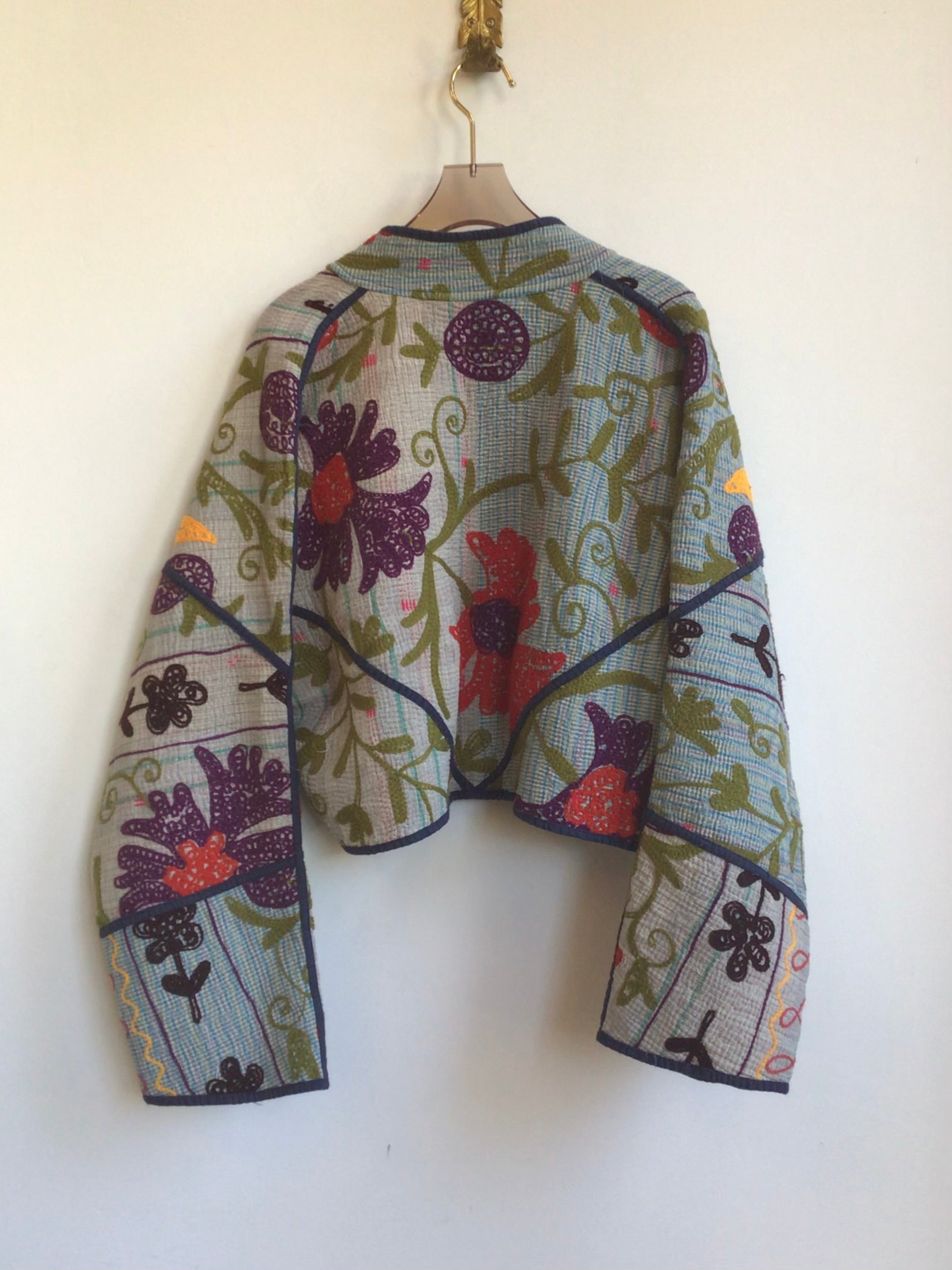 Namai jackets and accessories are designed in Kingston NY and handmade by family-run tailoring workshops in India. These one-of-a-kind pieces made from vintage Kantha quilts are timeless, zero waste and heirloom quality.