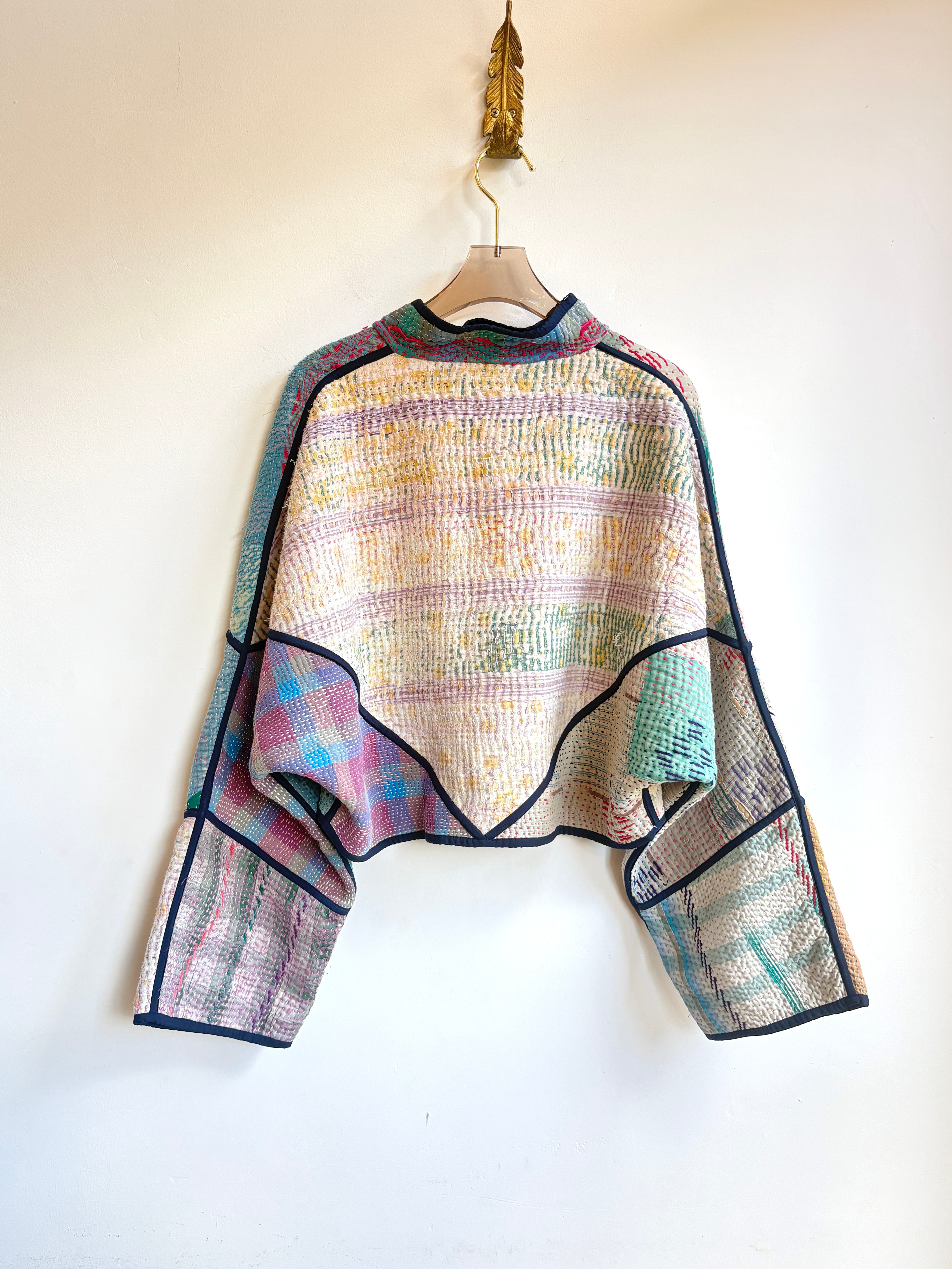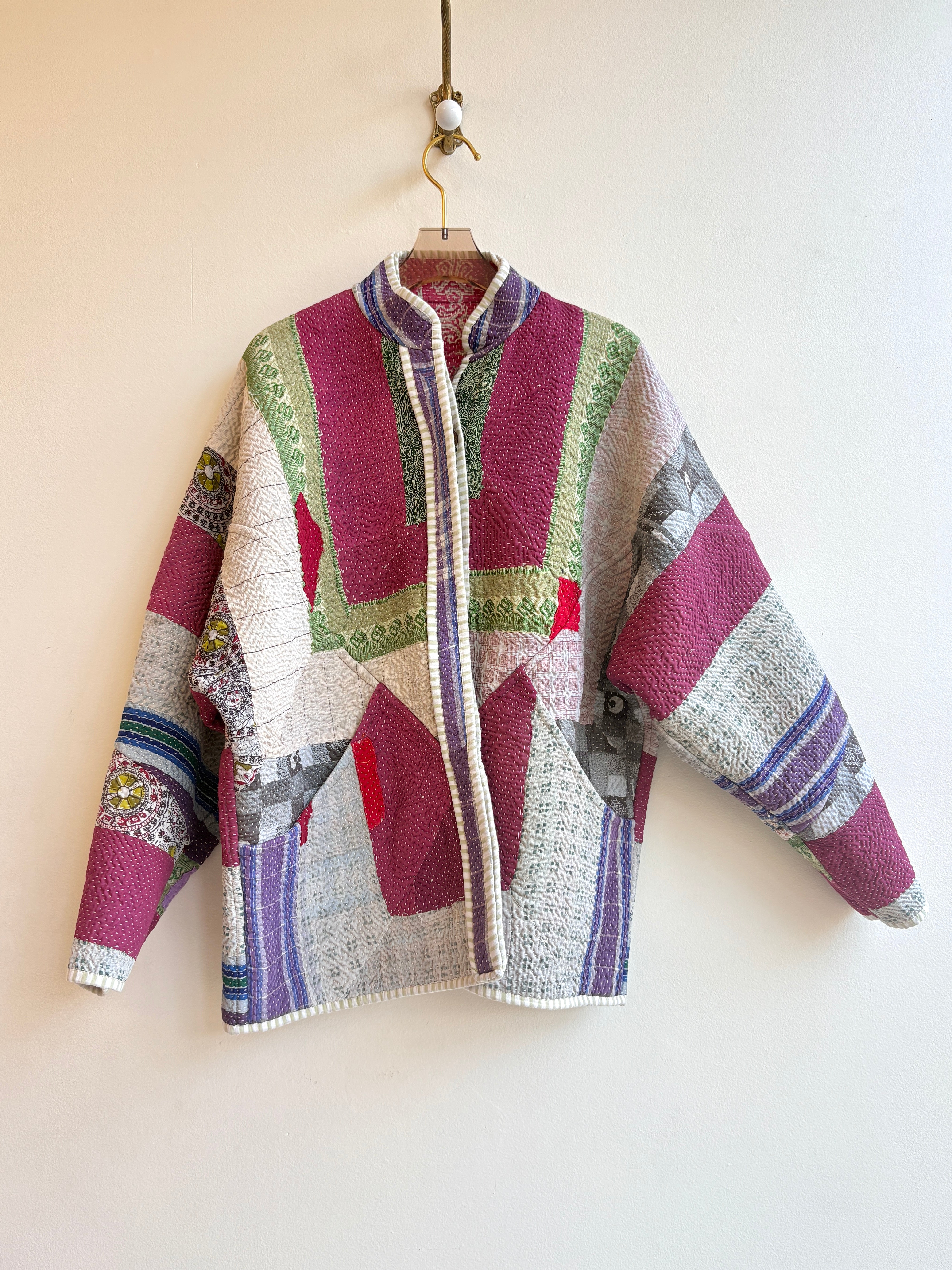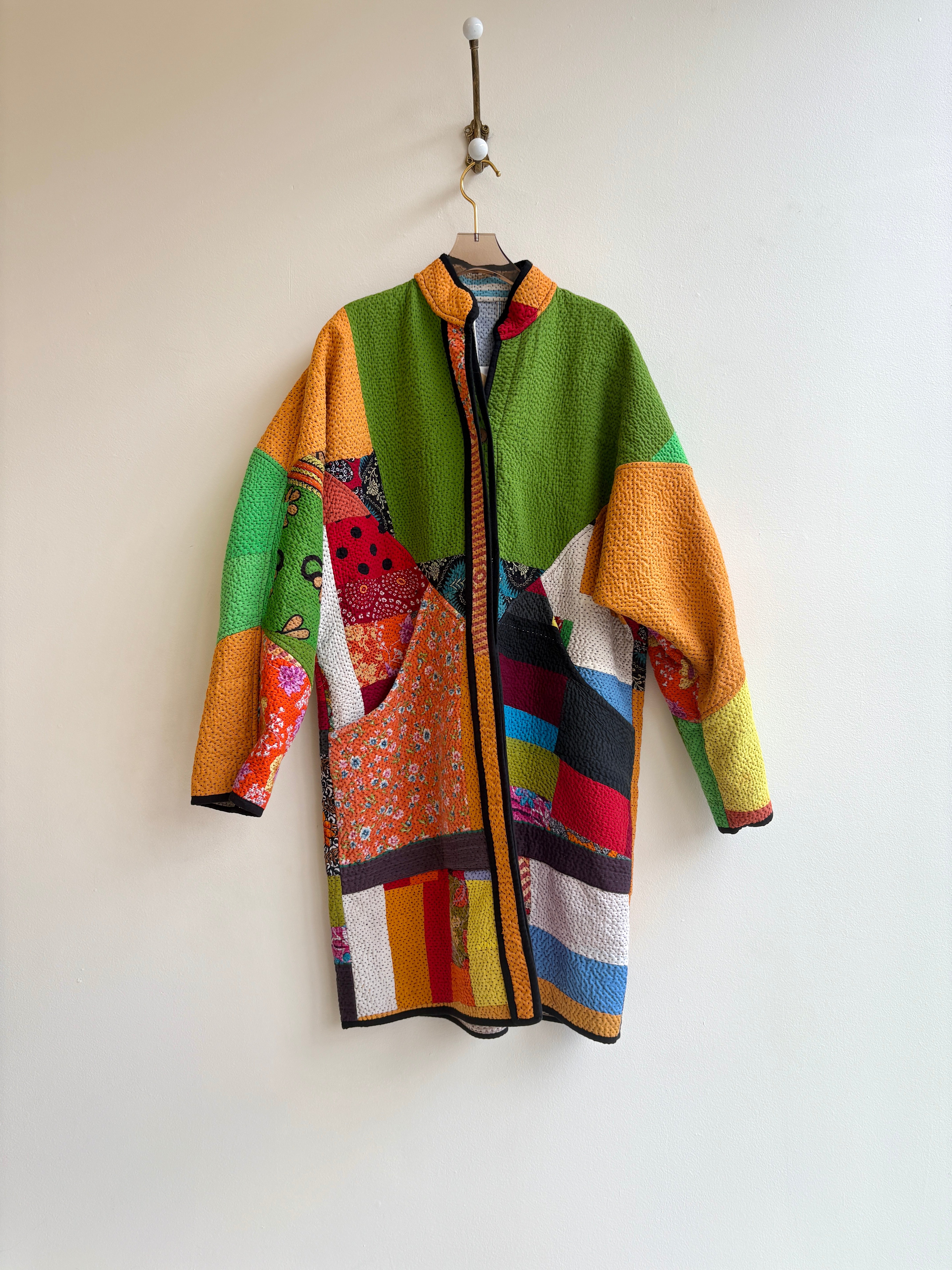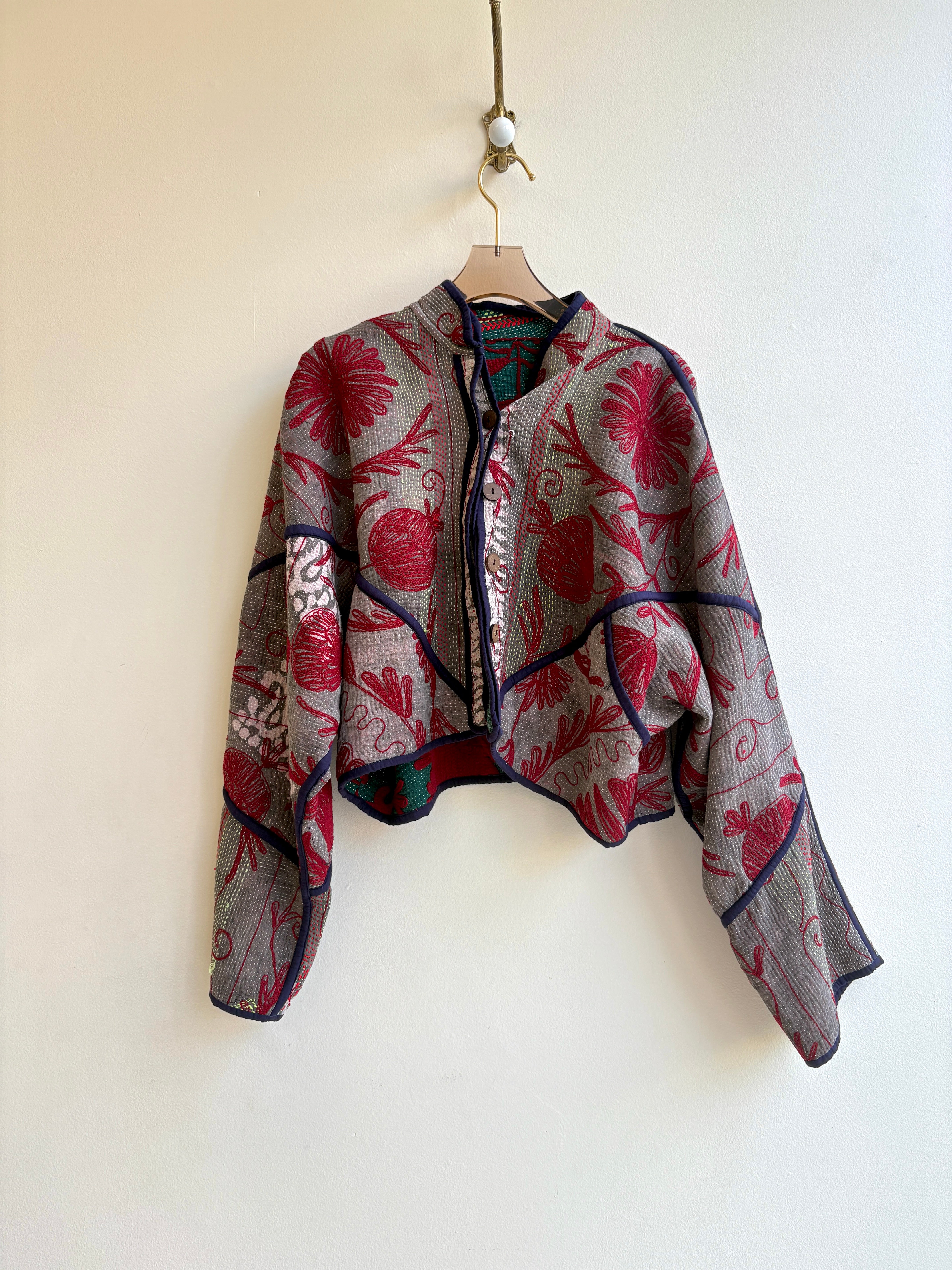 Namai jackets and accessories are designed in Kingston NY and handmade by family-run tailoring workshops in India. These one-of-a-kind pieces made from vintage Kantha quilts are timeless, zero waste and heirloom quality.