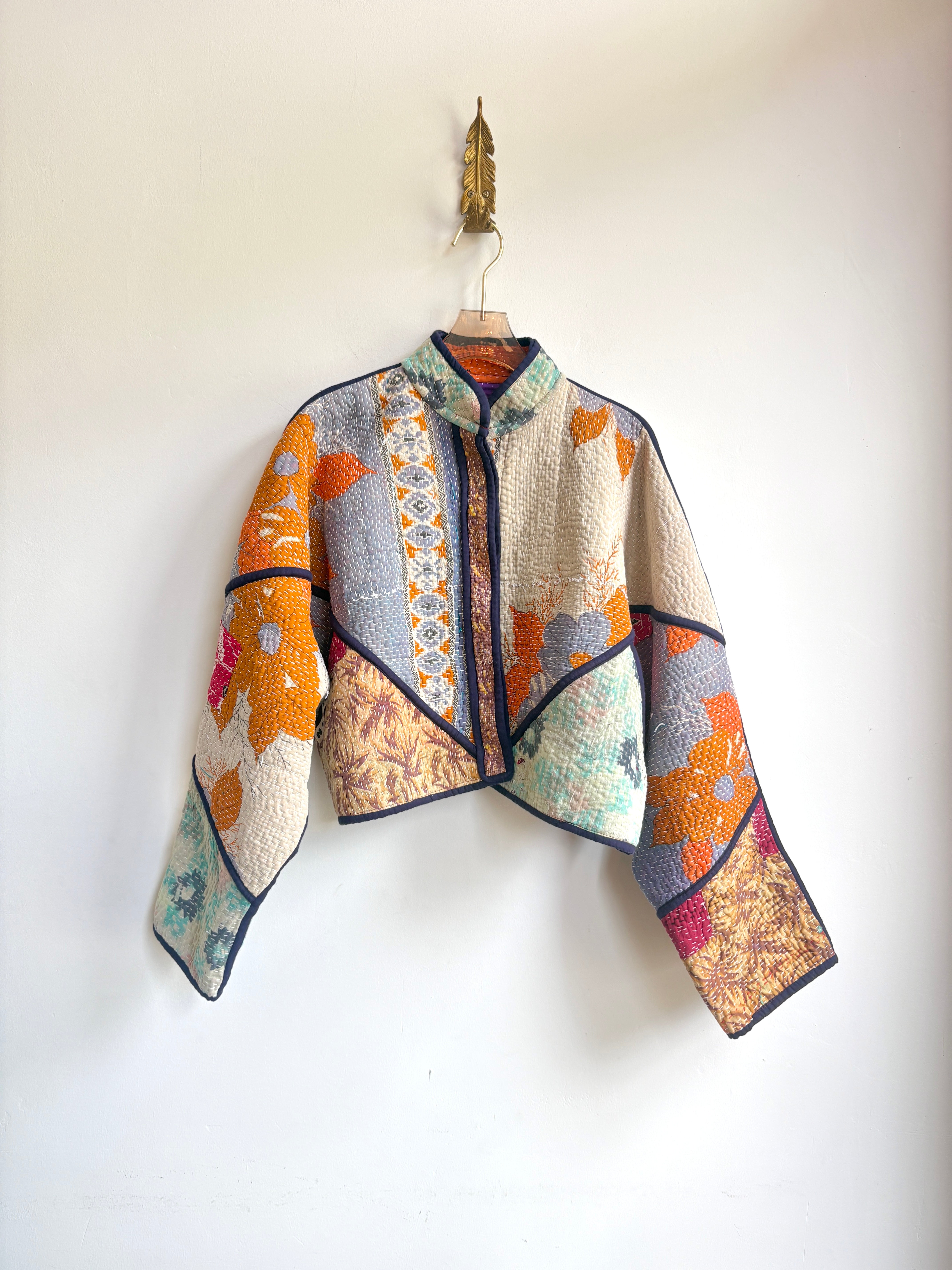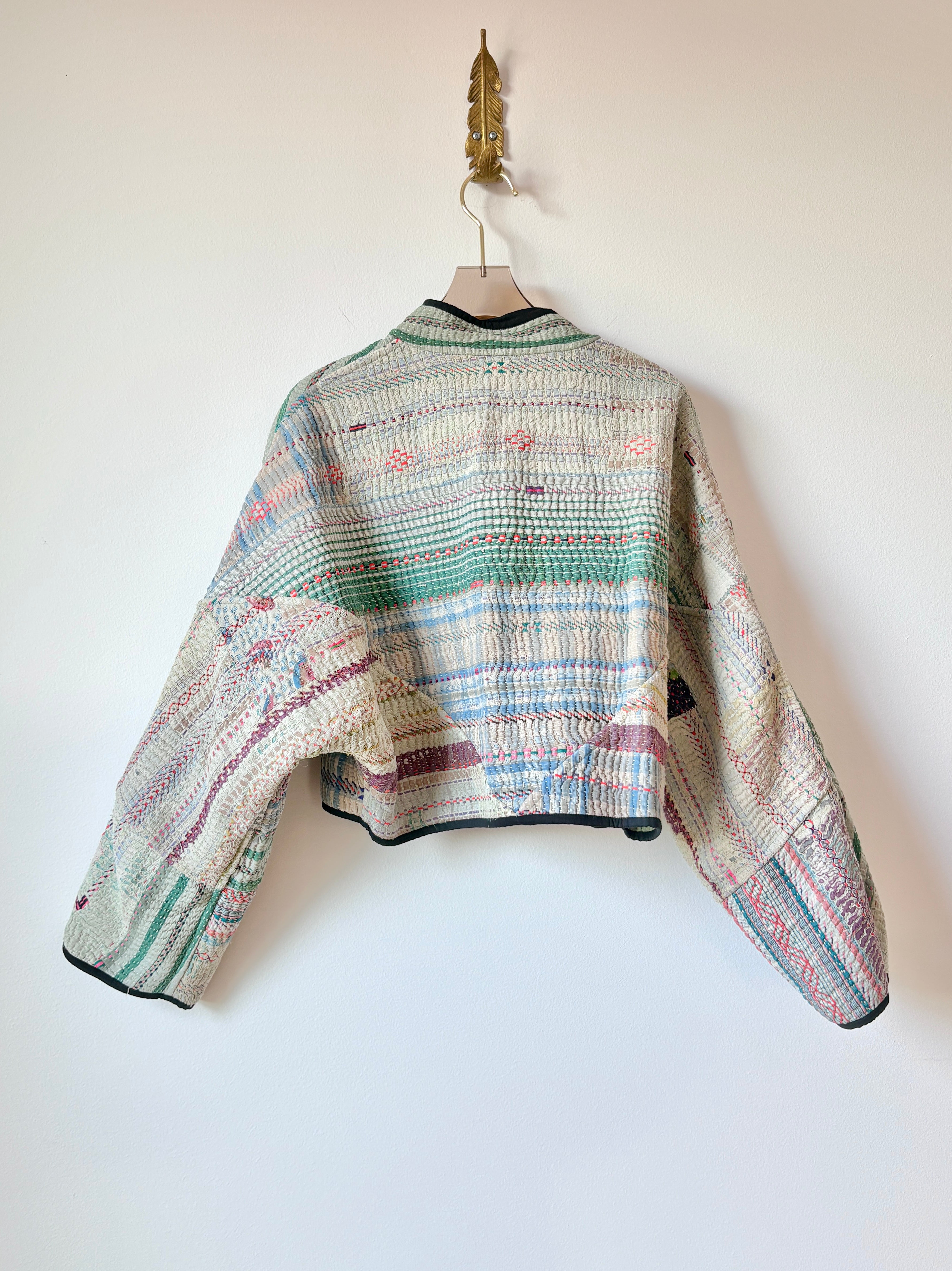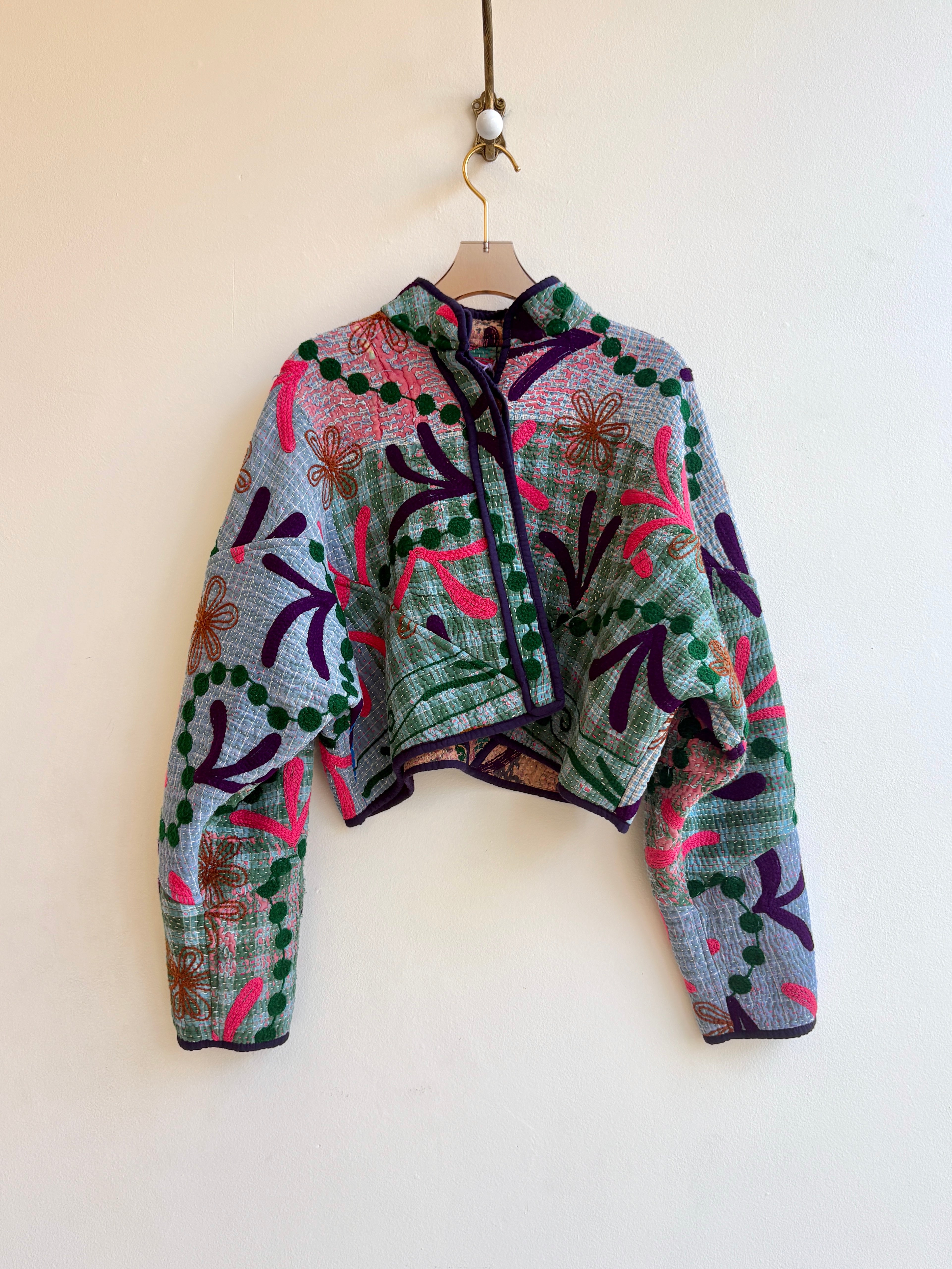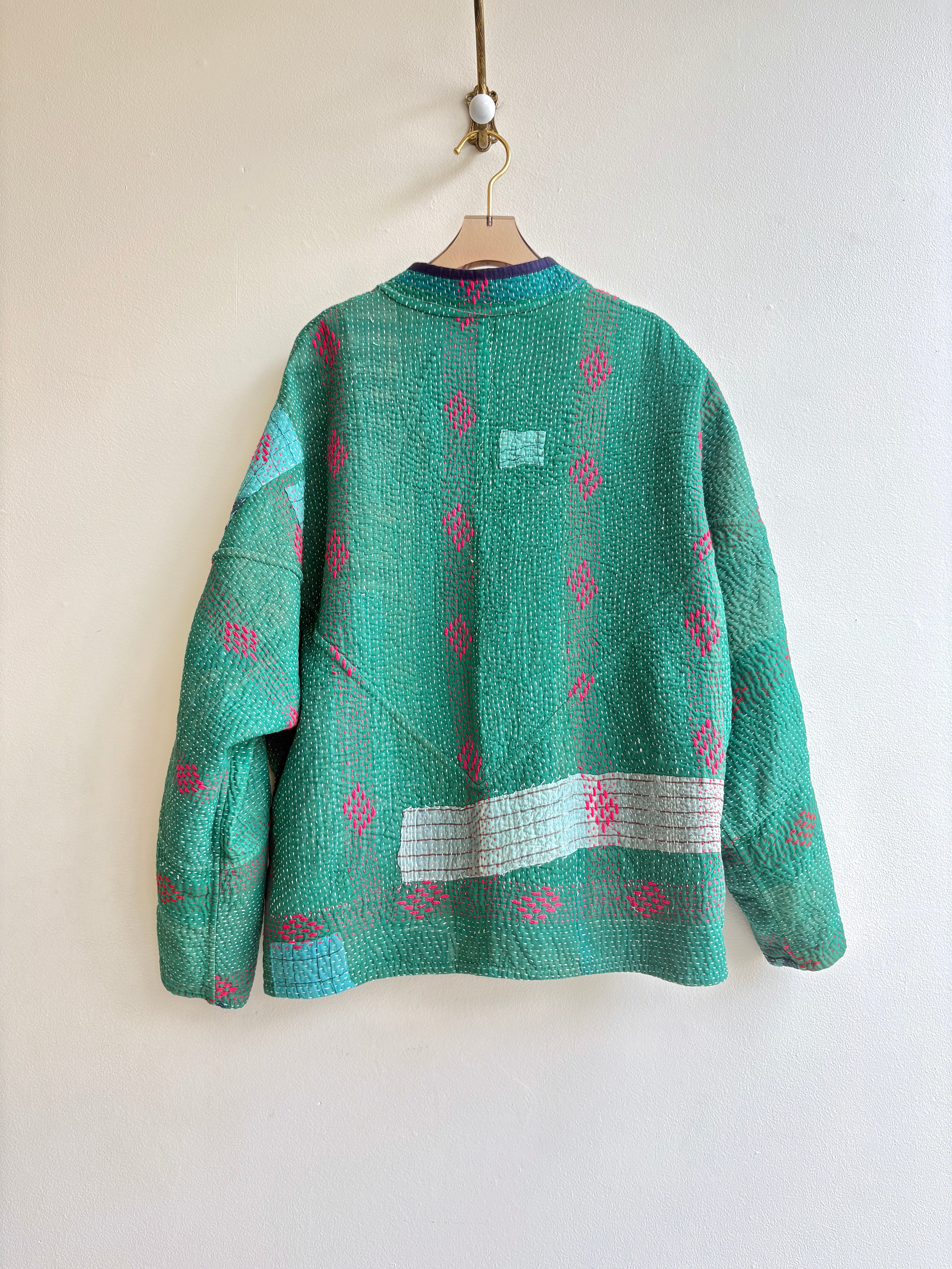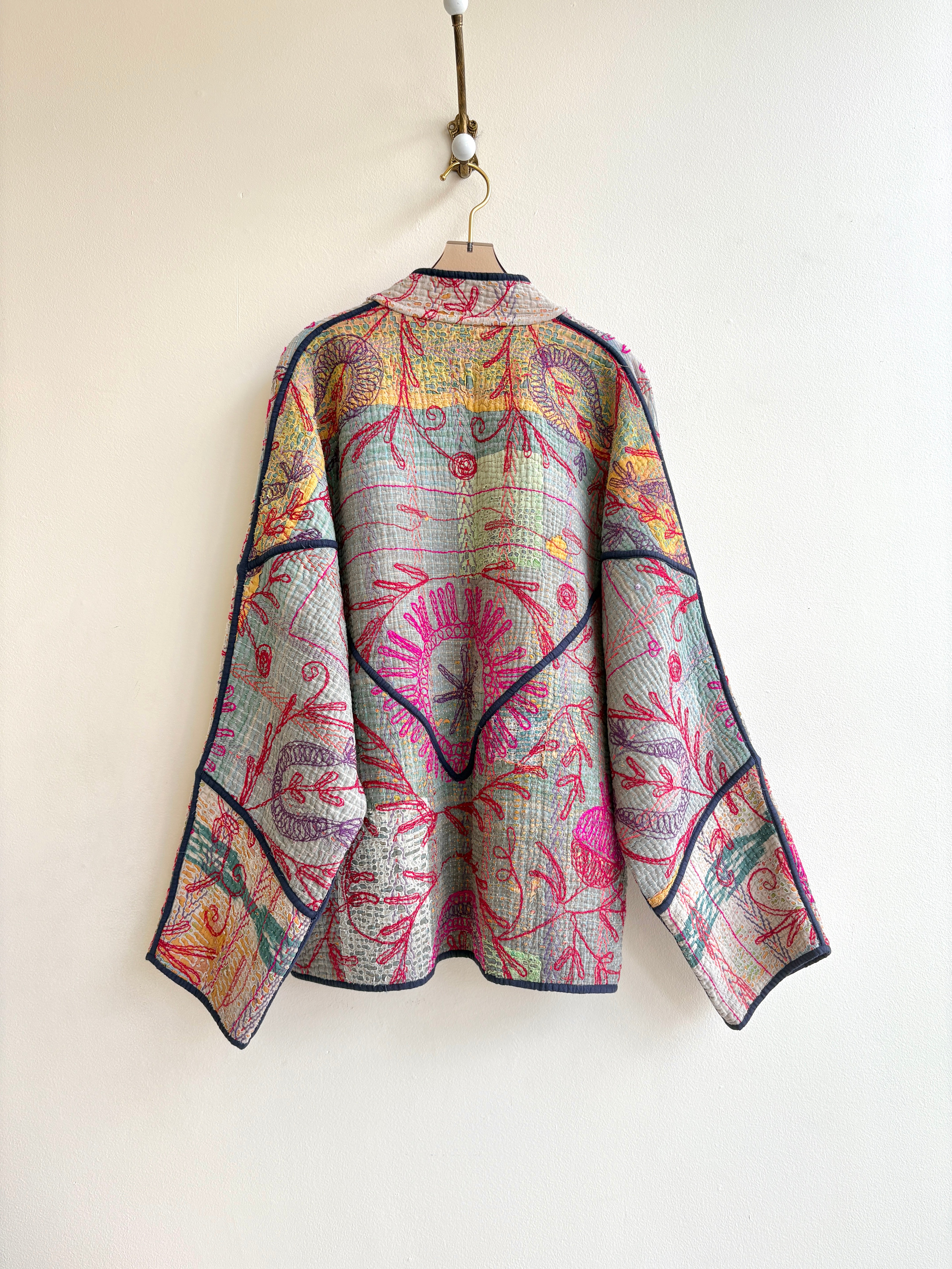 Namai jackets and accessories are designed in Kingston NY and handmade by family-run tailoring workshops in India. These one-of-a-kind pieces made from vintage Kantha quilts are timeless, zero waste and heirloom quality.