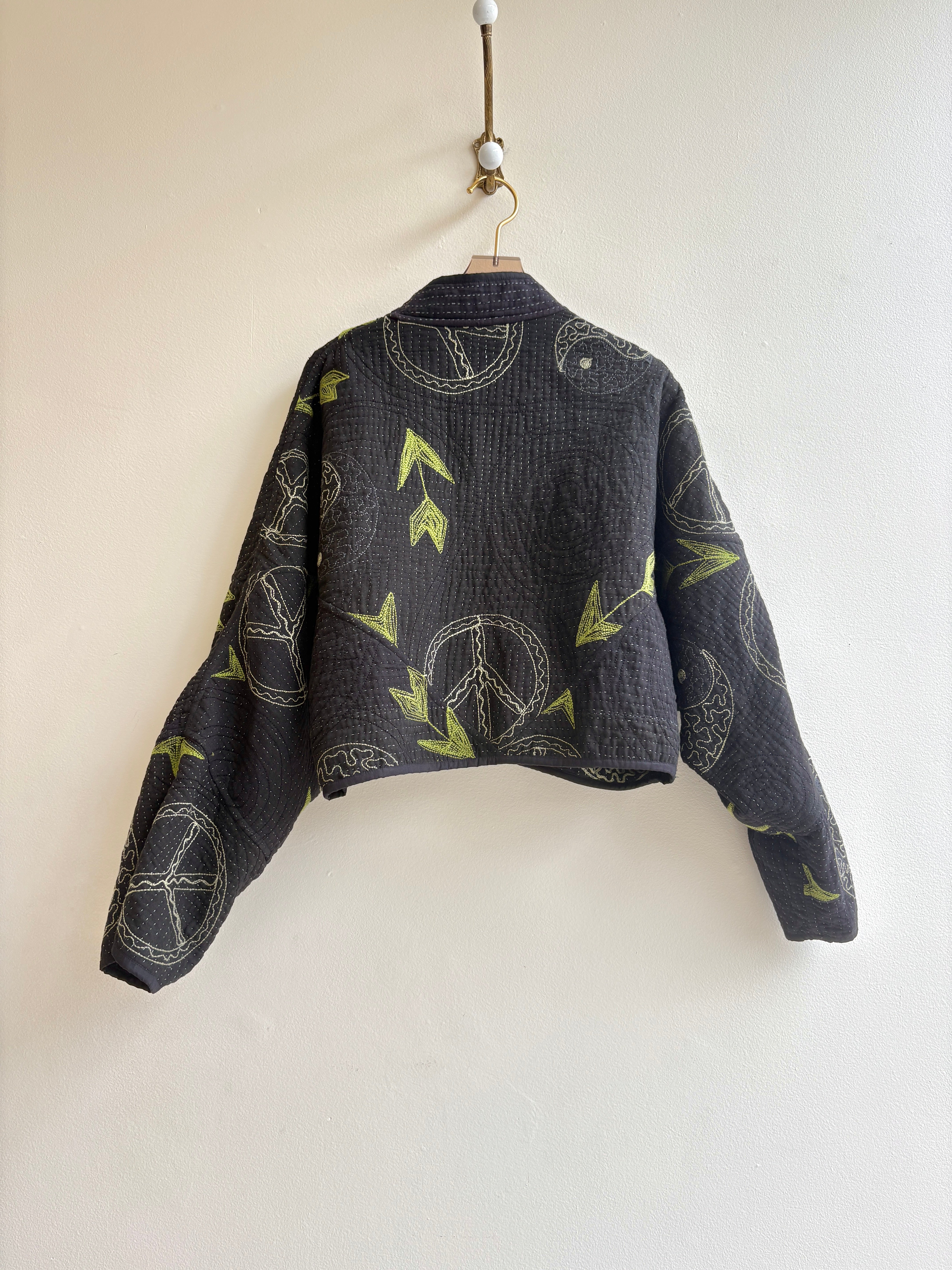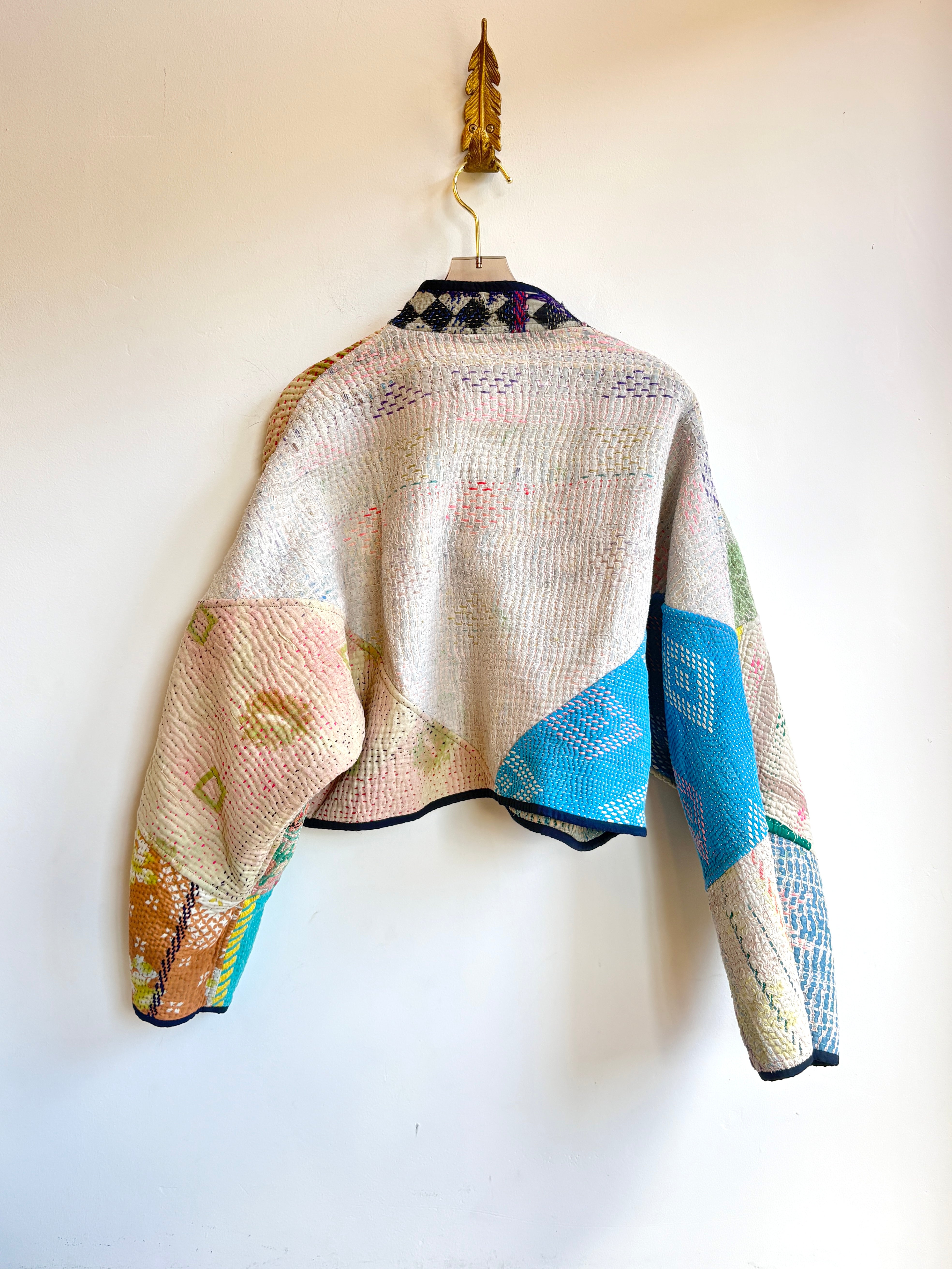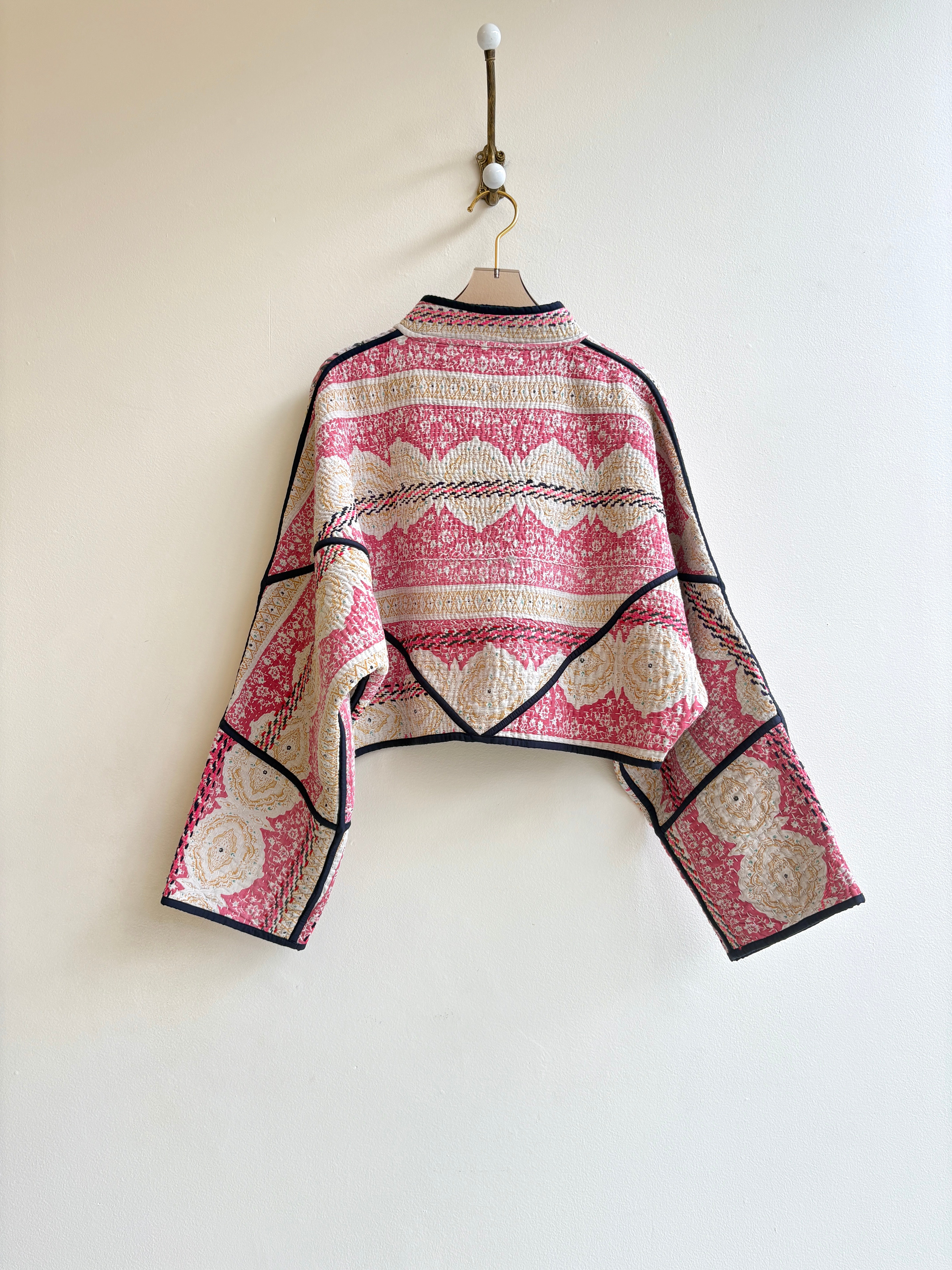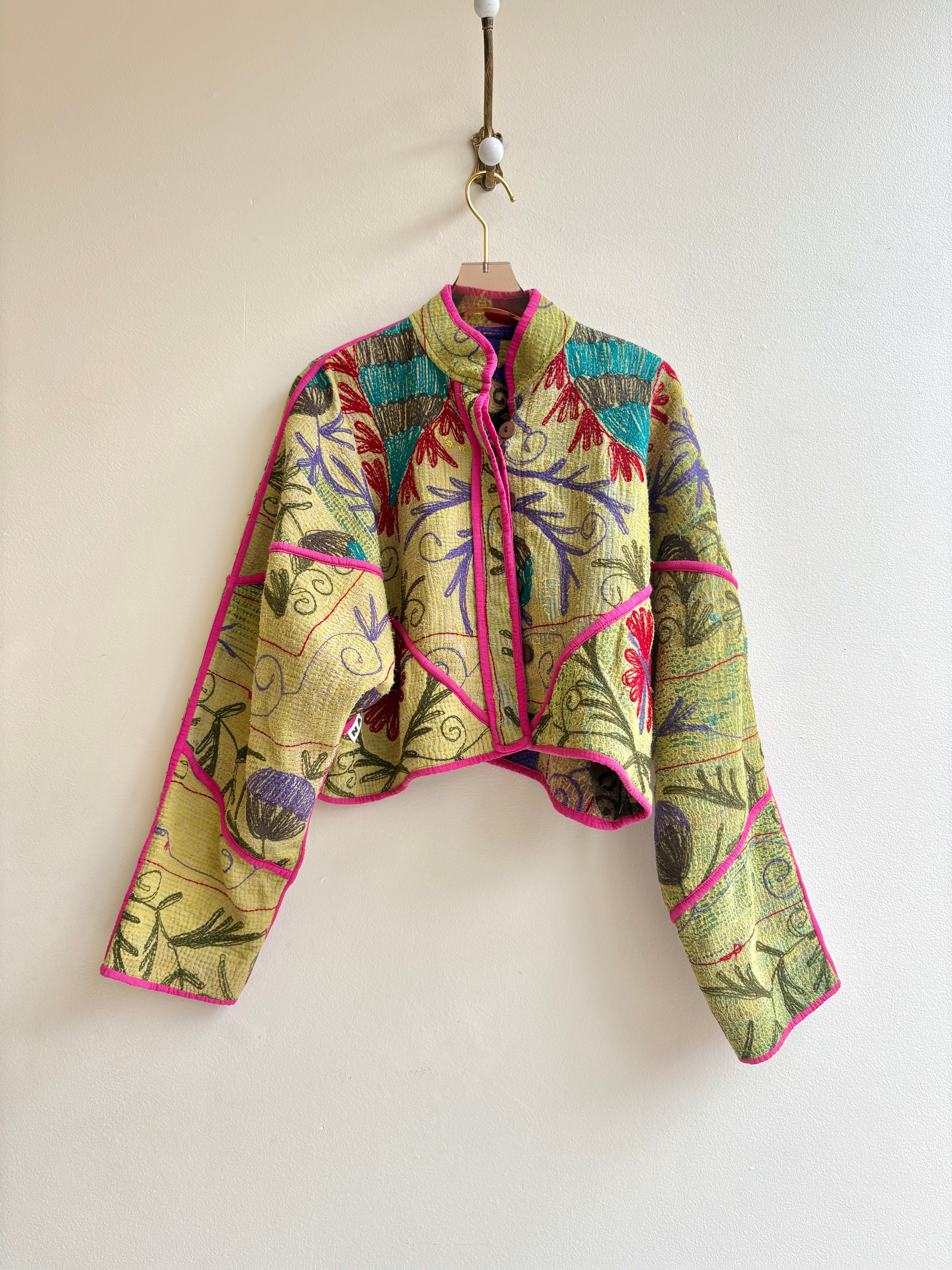 Namai jackets and accessories are designed in Kingston NY and handmade by family-run tailoring workshops in India. These one-of-a-kind pieces made from vintage Kantha quilts are timeless, zero waste and heirloom quality.