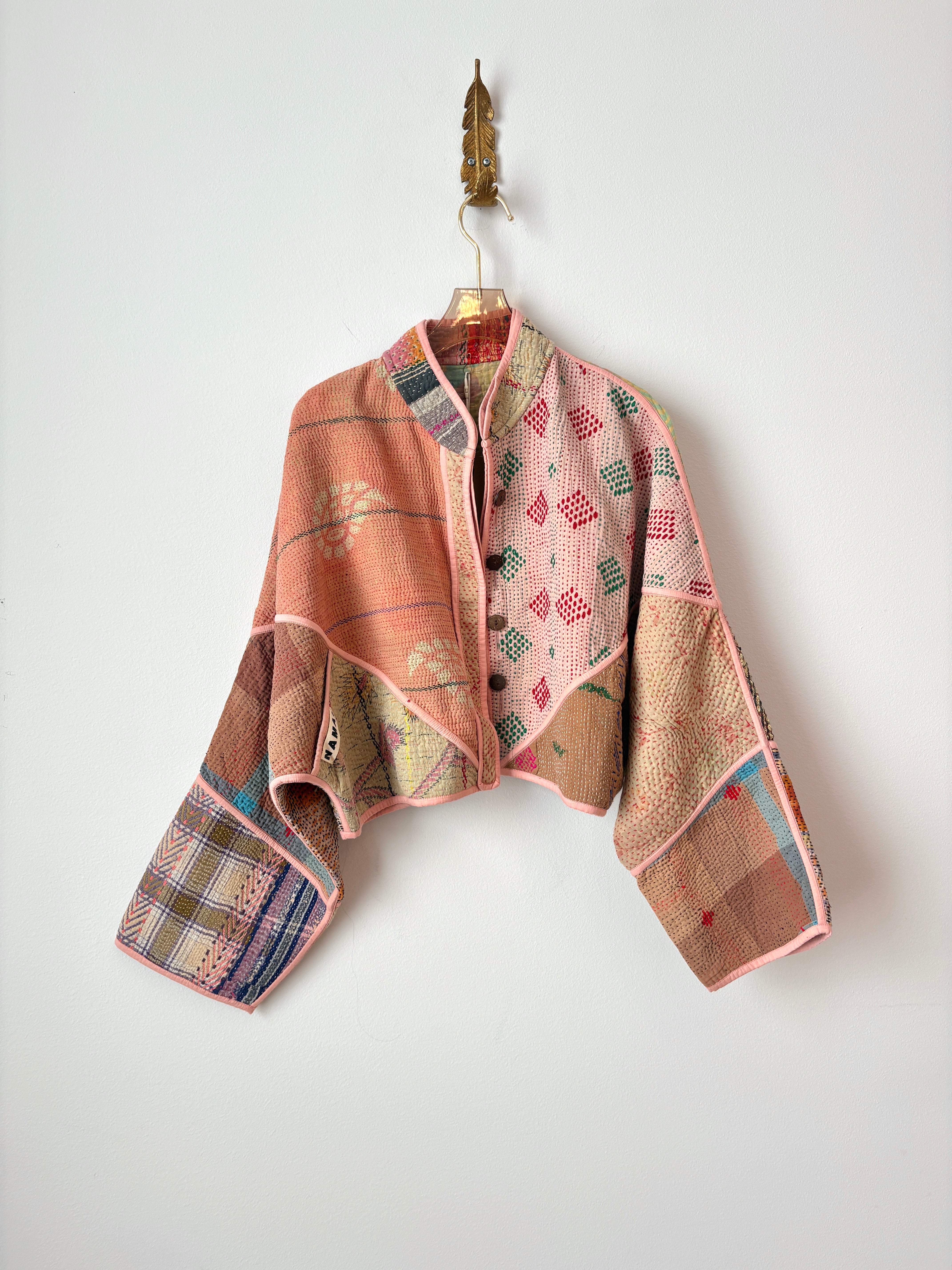 Namai jackets and accessories are designed in Kingston NY and handmade by family-run tailoring workshops in India. These one-of-a-kind pieces made from vintage Kantha quilts are timeless, zero waste and heirloom quality.