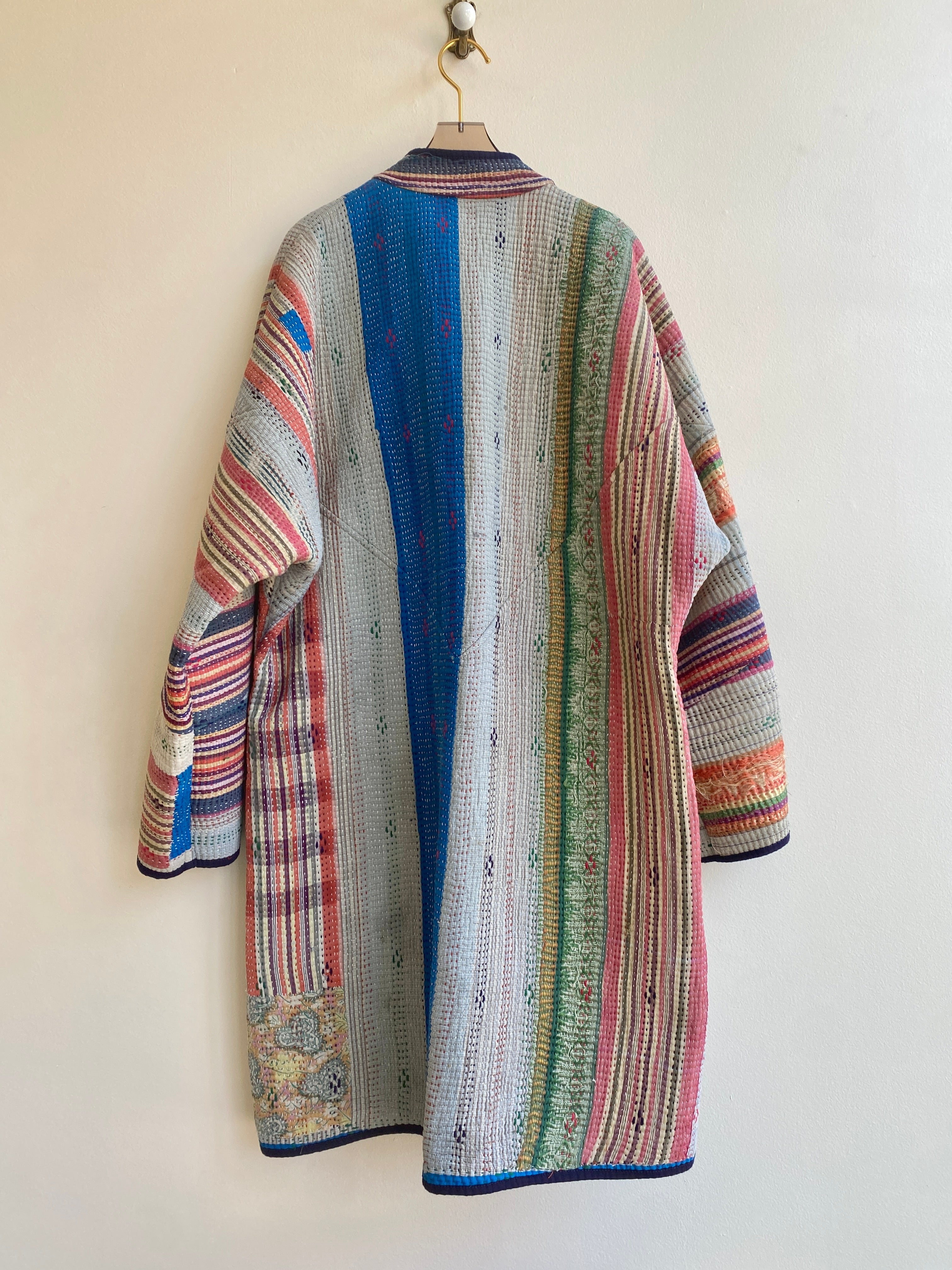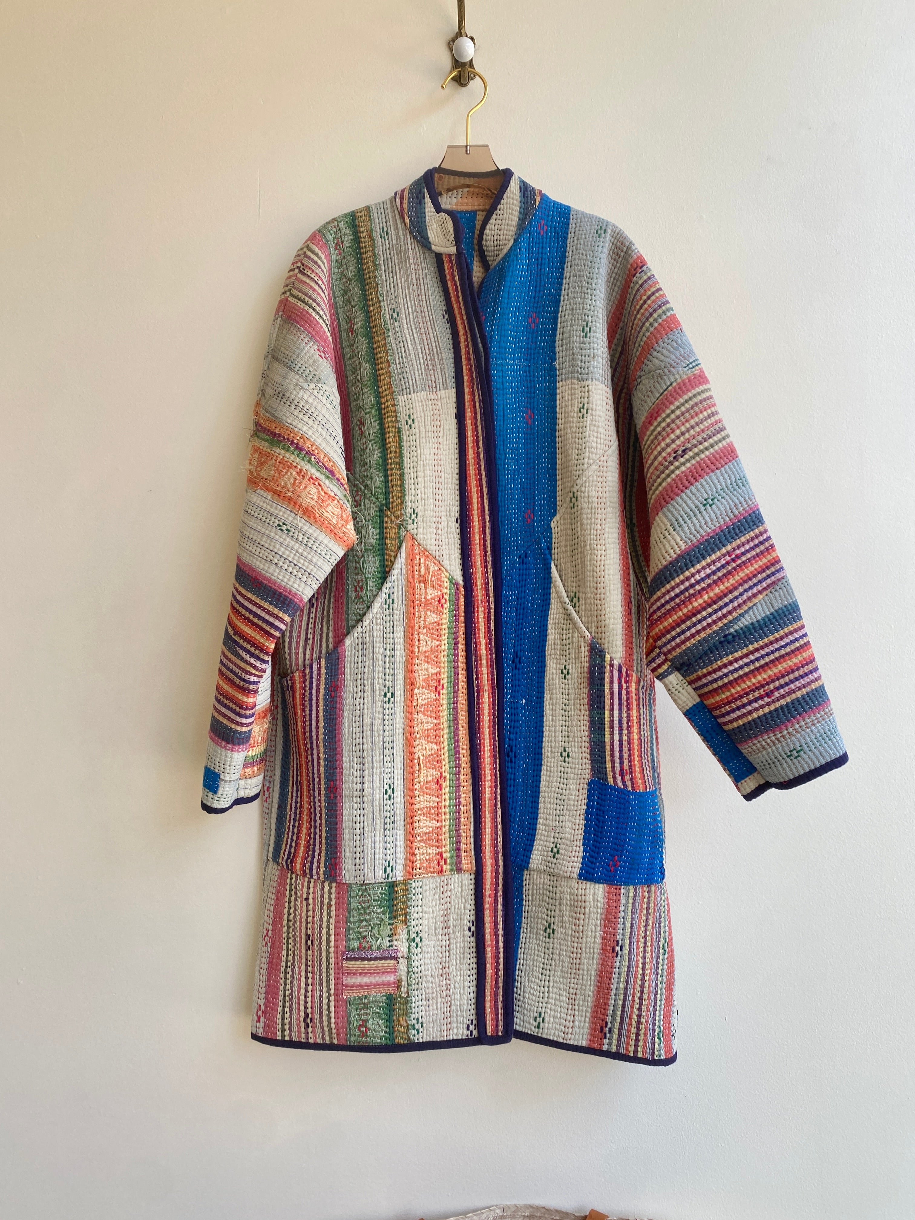 Namai jackets and accessories are designed in Kingston NY and handmade by family-run tailoring workshops in India. These one-of-a-kind pieces made from vintage Kantha quilts are timeless, zero waste and heirloom quality.