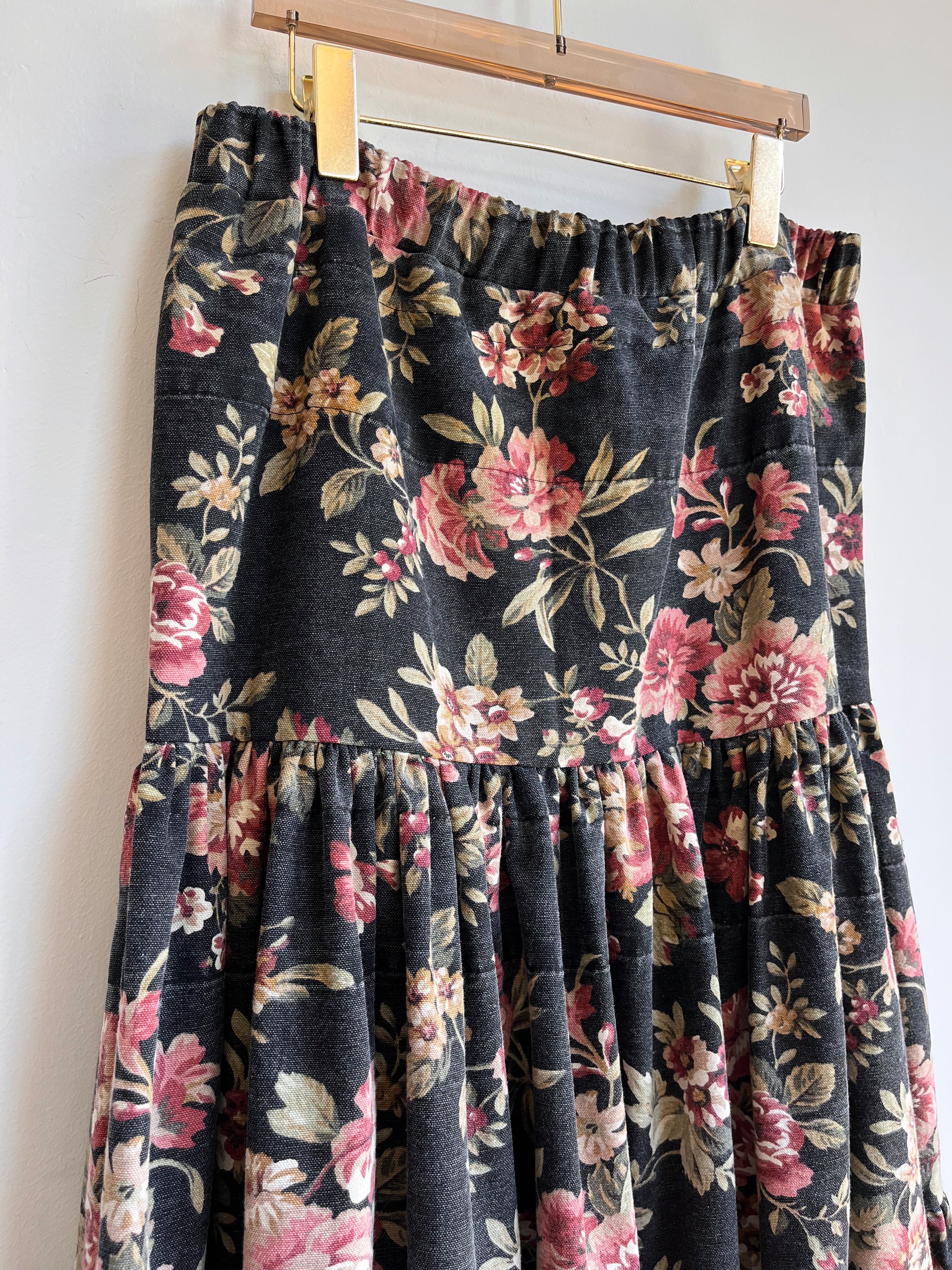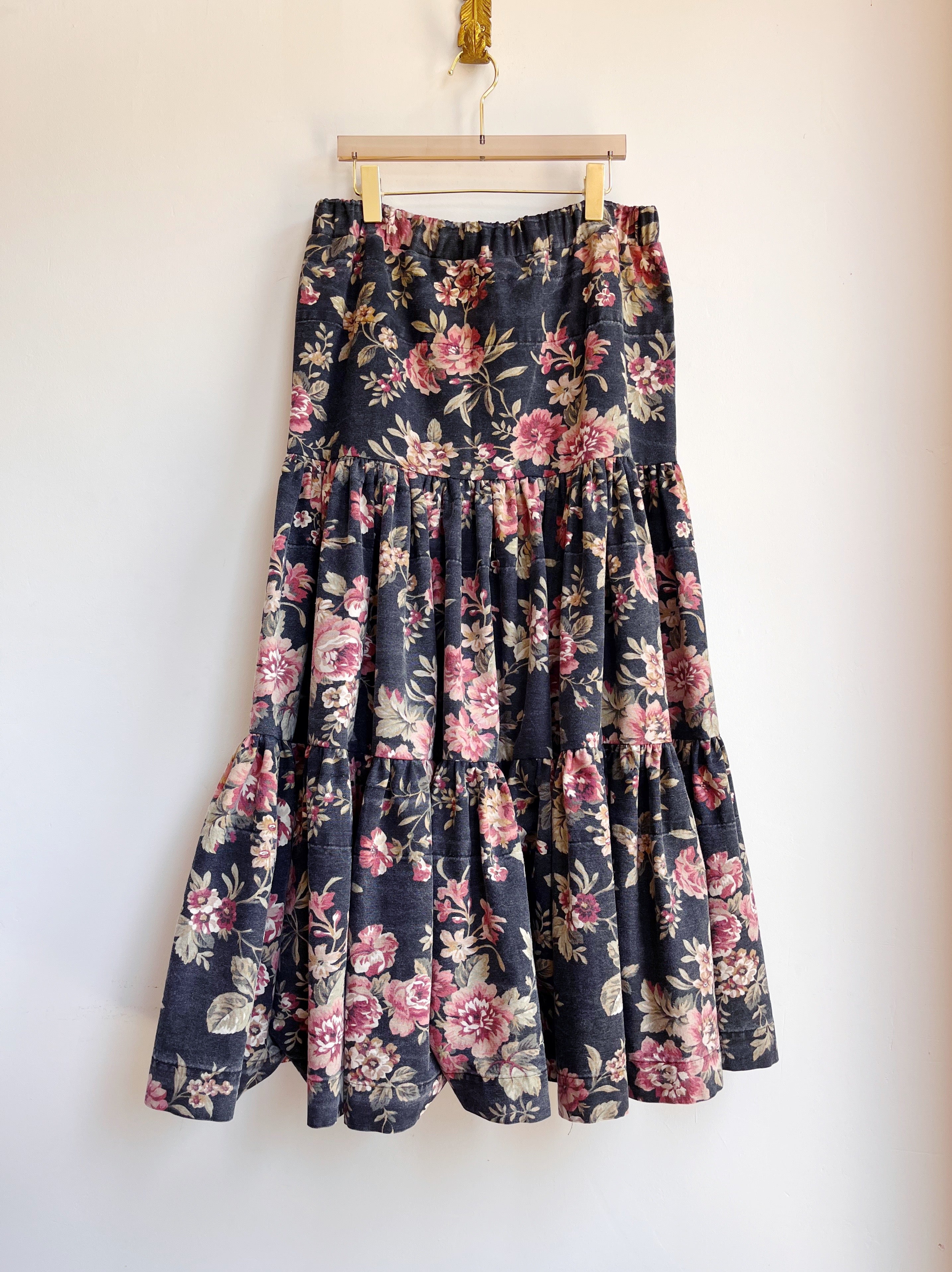 • Full, three-tiered maxi skirt with comfortable elastic waistband
