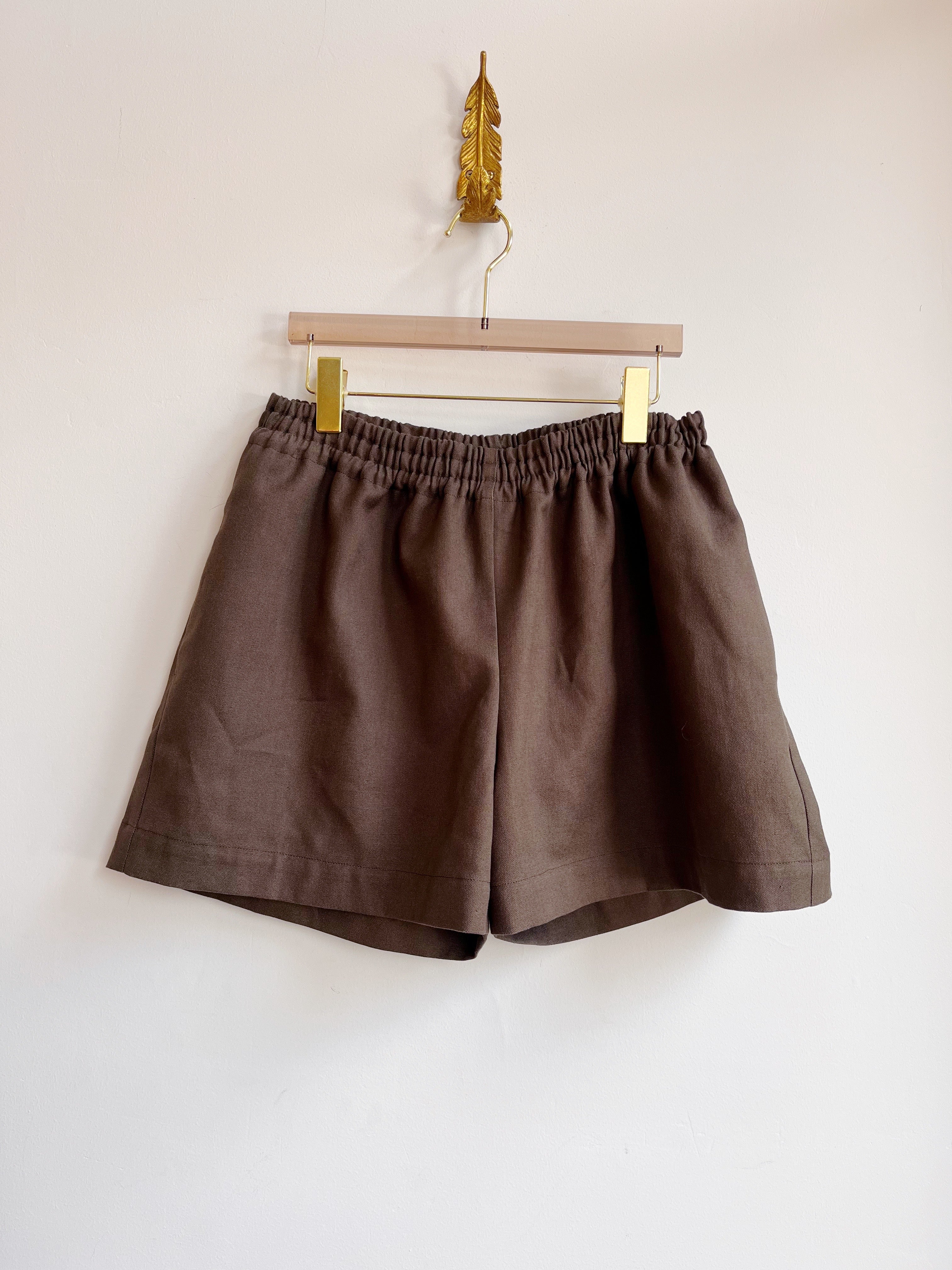 Our unisex MXH Town Shorts are the quintessential easygoing garment, designed and sewn right here in our Catskill atelier. The triple-channel elastic waistband looks polished and lies flat, while being as comfortable as pajamas. And the side-seam pockets keep the silhouette clean, so you can dress them up or down, wear them in the city, on the beach, or anywhere in between. This pair was sewn from our favorite hemp-cotton canvas in a mossy brown-green, the perfect neutral.