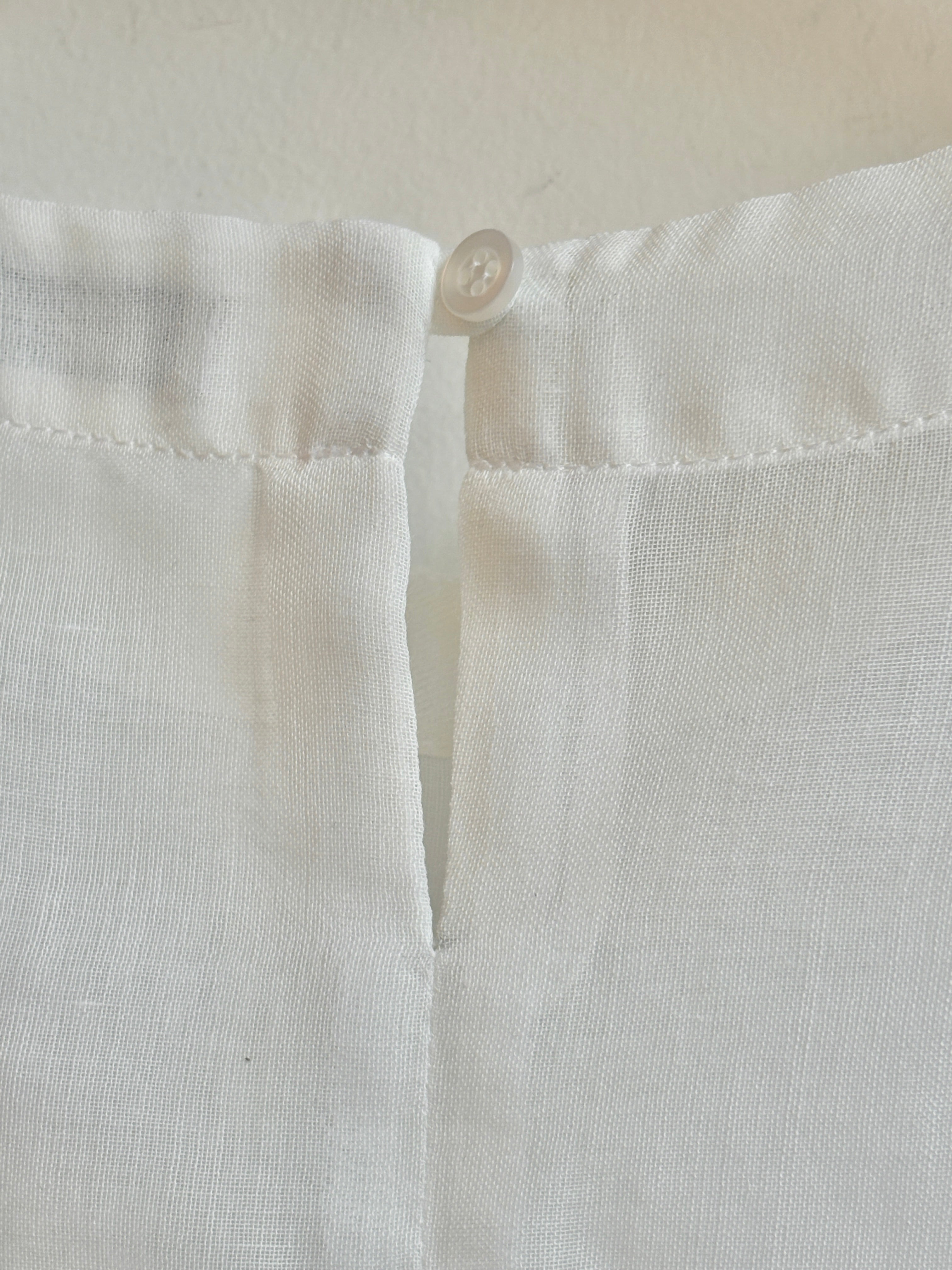 Our Everyday Top is just that — the perfect little woven tee-style top to throw on any day of the week, with everything from jeans to your nicest skirt or trousers. And it’s cute worn straight and loose, or tucked in and with the sleeves rolled up. This sheer version with embroidery across the chest and sleeves is very special, and we had just enough of the vintage fabric to make two.