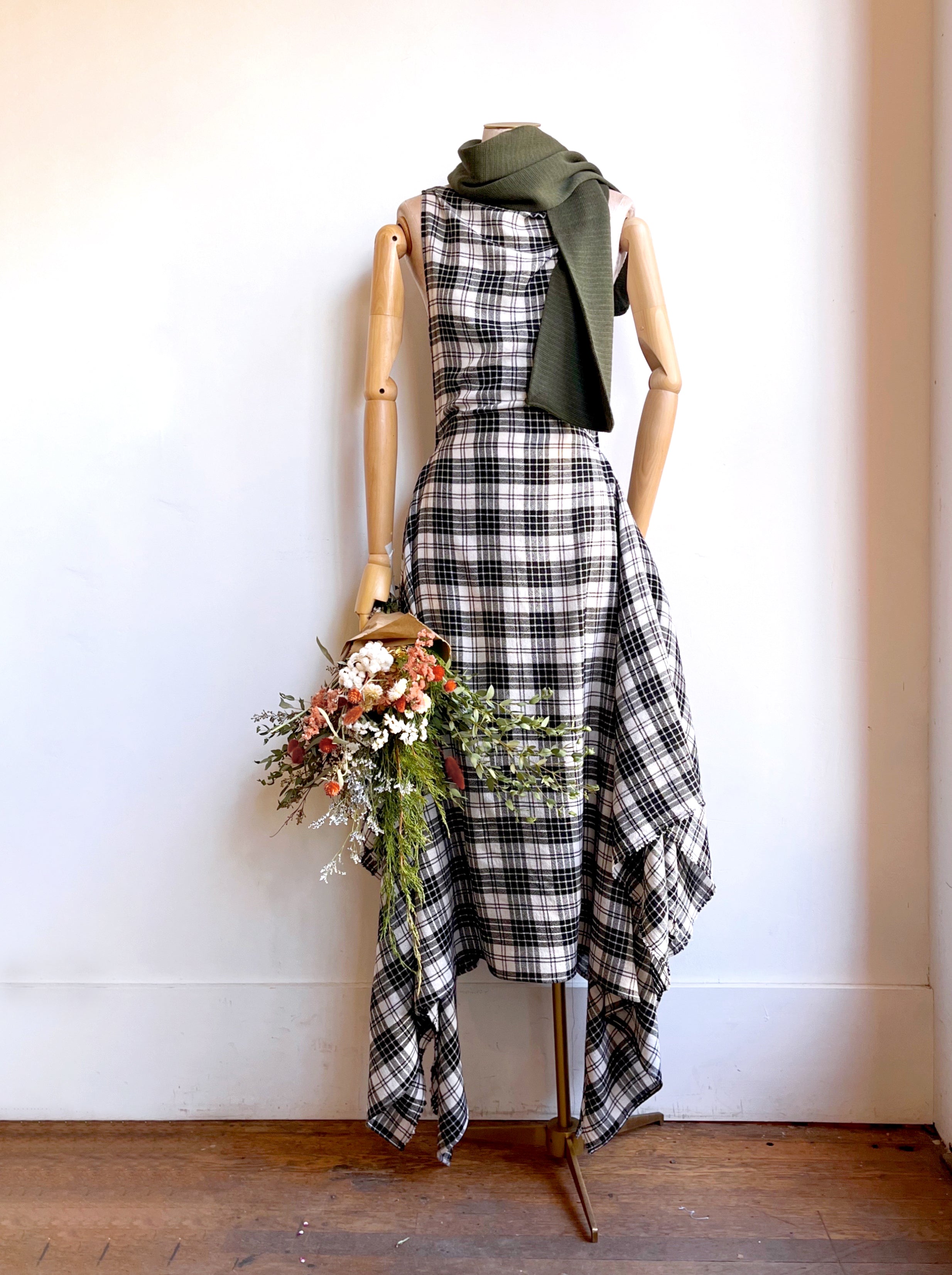 Zero-Waste Dress in Black and White Plaid