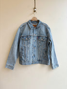 This Olga Ella patchworked jacket is the perfect way to make a statement for any occasion. This light denim jacket features a shattered denim, intuitive patchwork of various shades of denim.