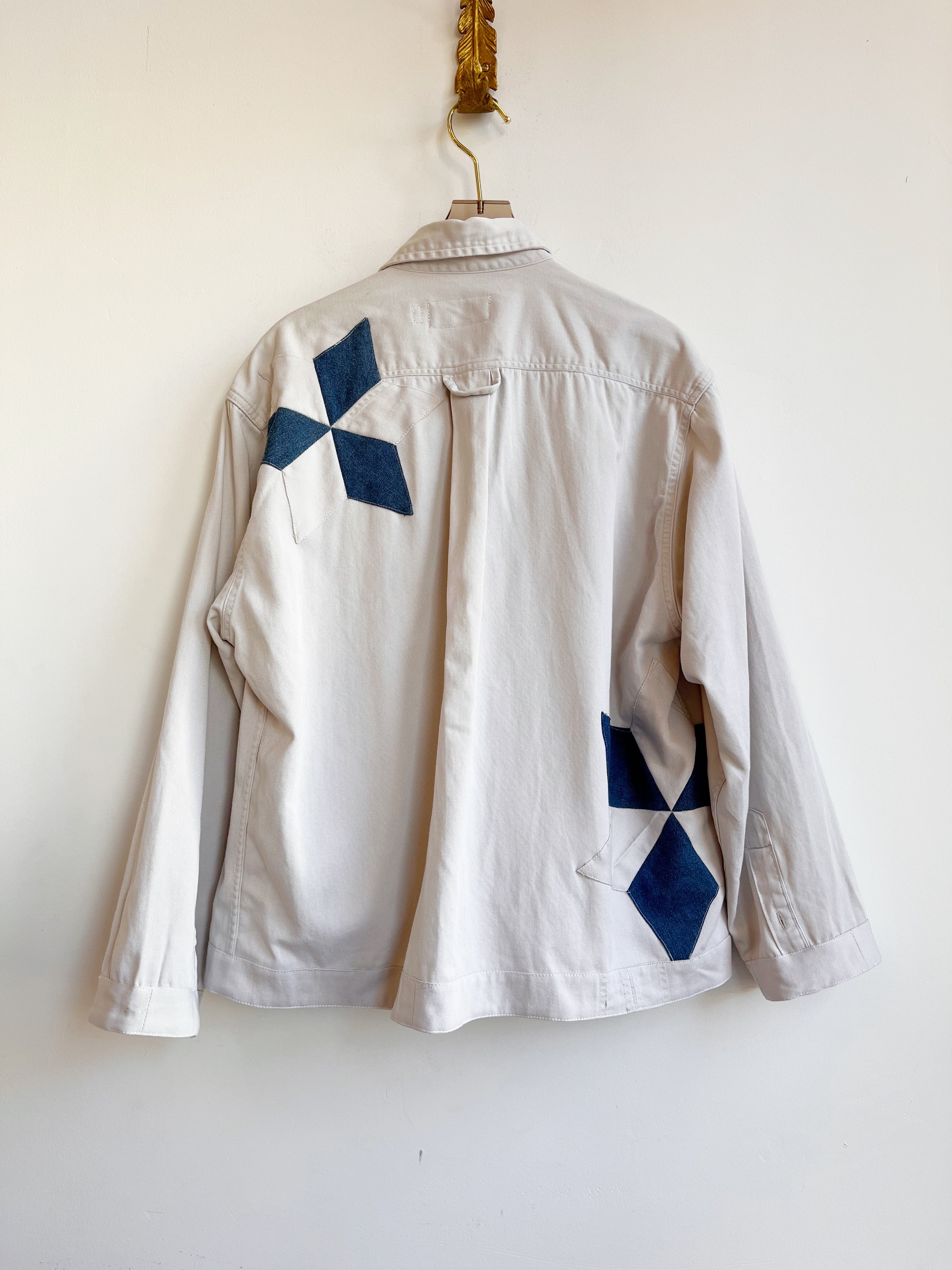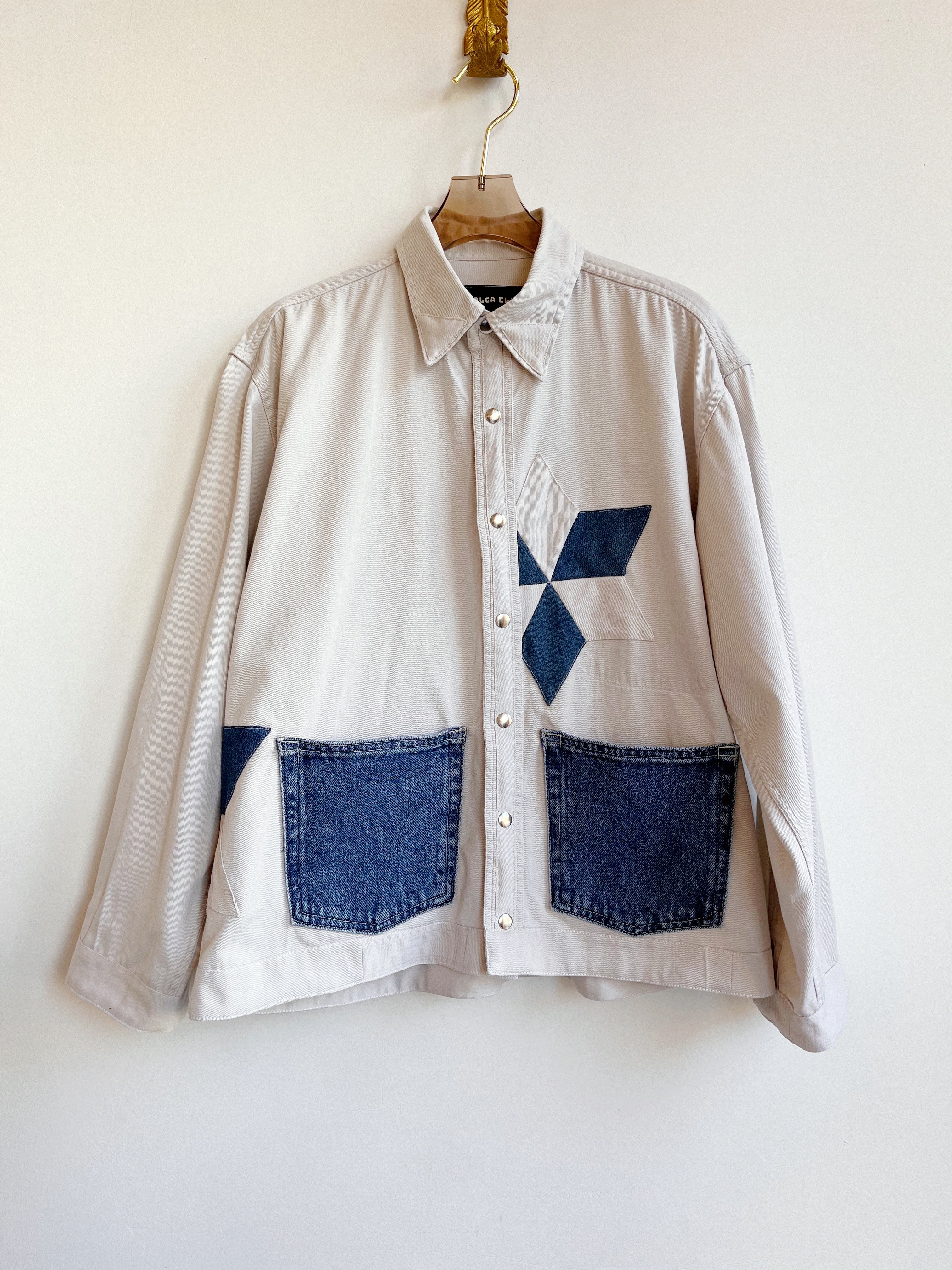 White Denim Shirtjacket w/ White & Blue Lemoyne Star & Dark Blue Pockets (Reworked)