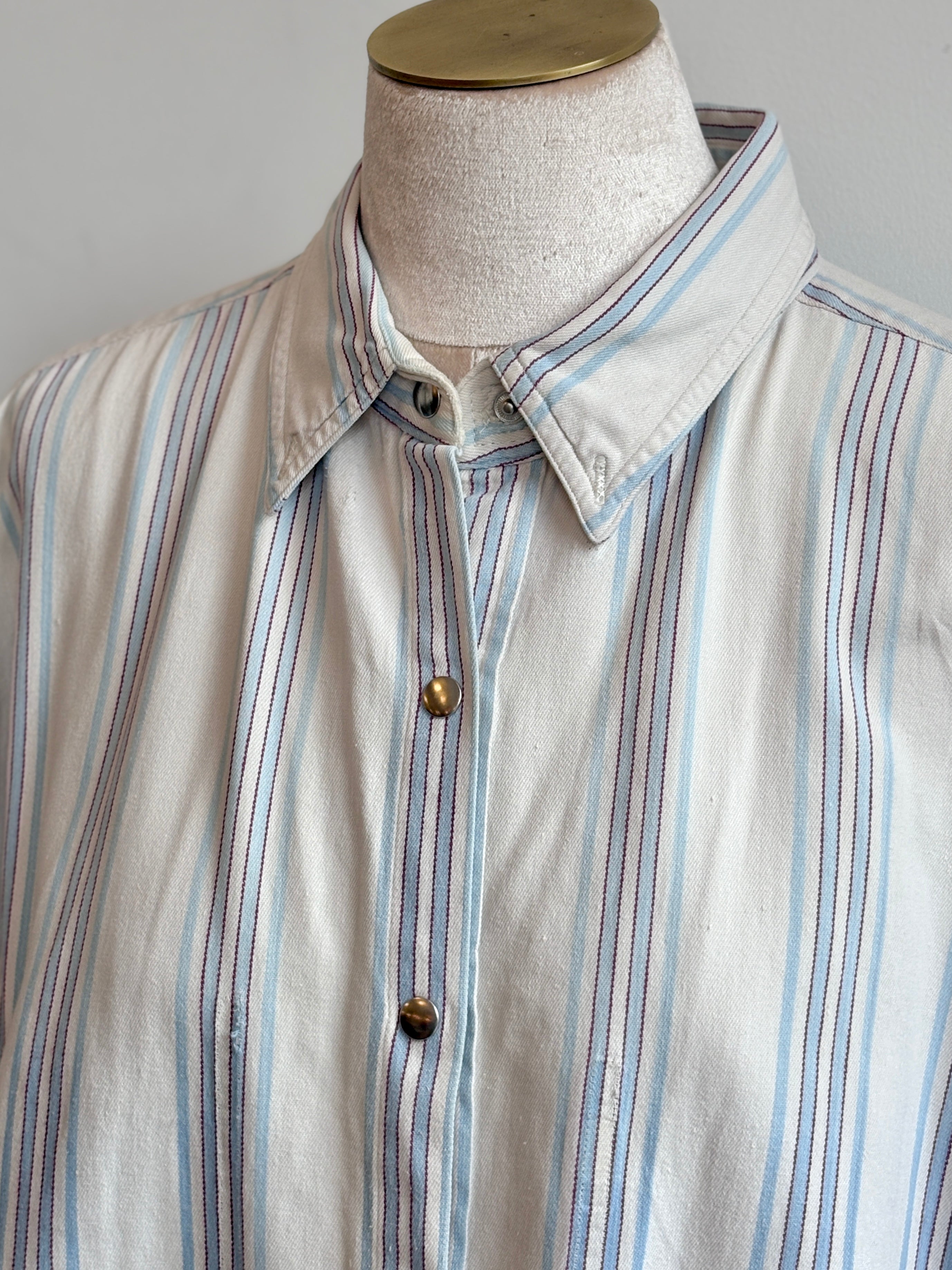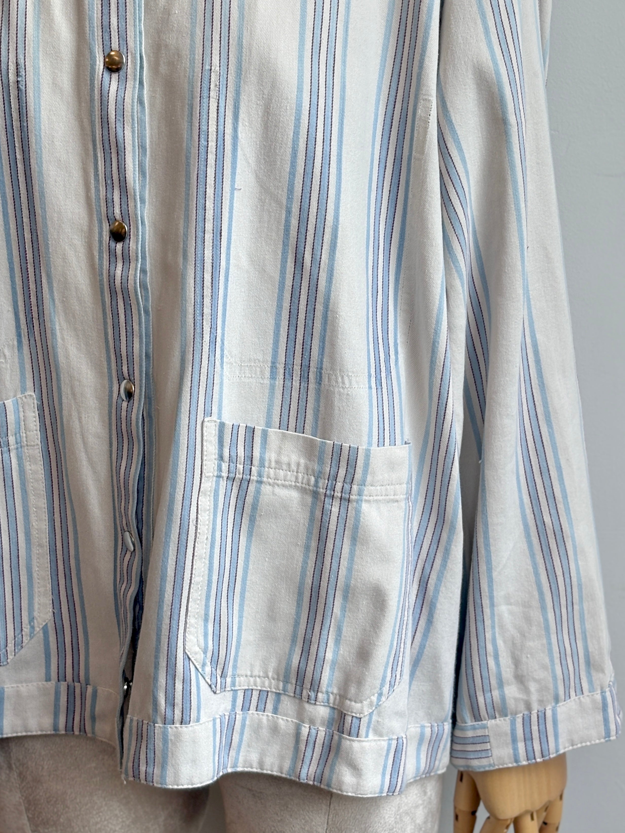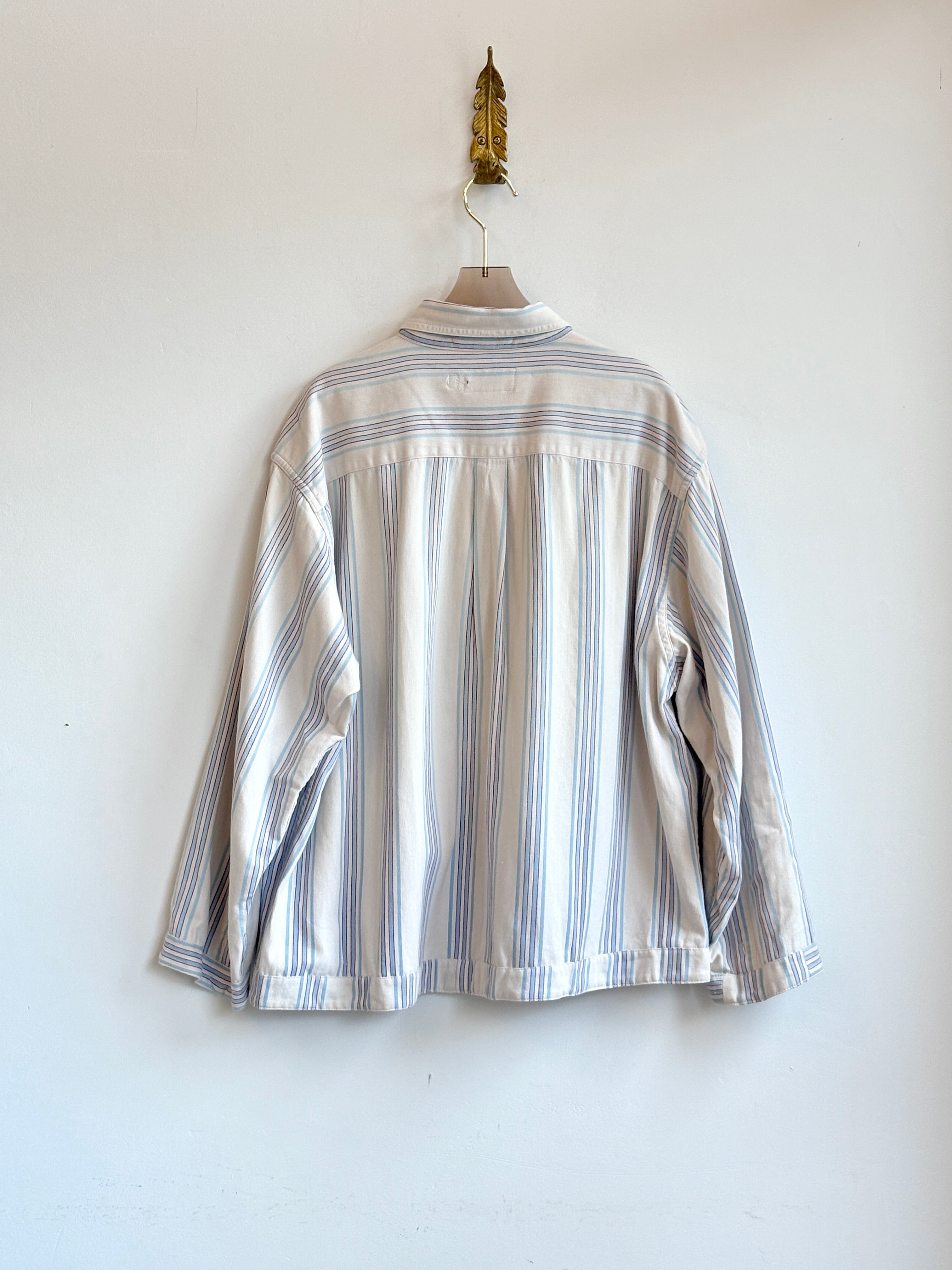 White w/ Light Blue & Red Stripes Denim Shirtjacket (Reworked)