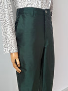 Revel in the radiance of these Nahas trousers, impeccably tailored from luminous emerald green silk shantung. The luxurious fabric captures and reflects light, creating a striking, sophisticated silhouette. Crafted in exclusive small batches by the MXH Atelier, each pair is a testament to crisp, architectural lines and rare, bespoke fabrics designed for the most discerning clientele.