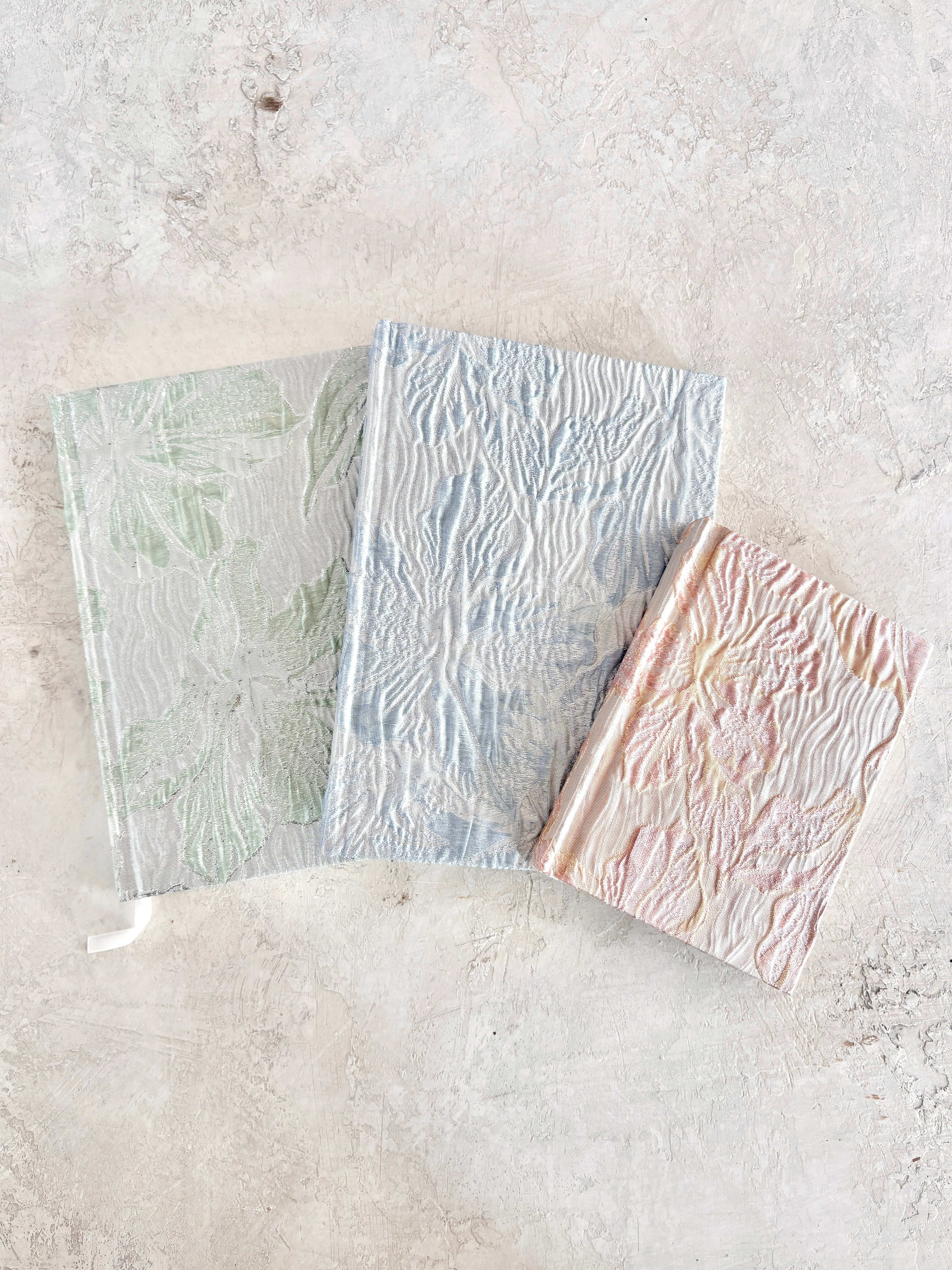 Capture your thoughts, ideas, and inspirations in style with this brocade fabric covered note book. Featuring a luxurious brocade-patterned cover and smooth lined, or un-lined pages. This notebook is perfect for journaling, note-taking, or keeping track of your life. Its elegant design makes it a thoughtful gift for students, professionals, writers, and stationery enthusiasts.