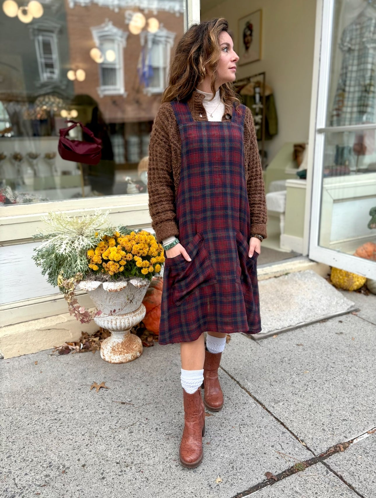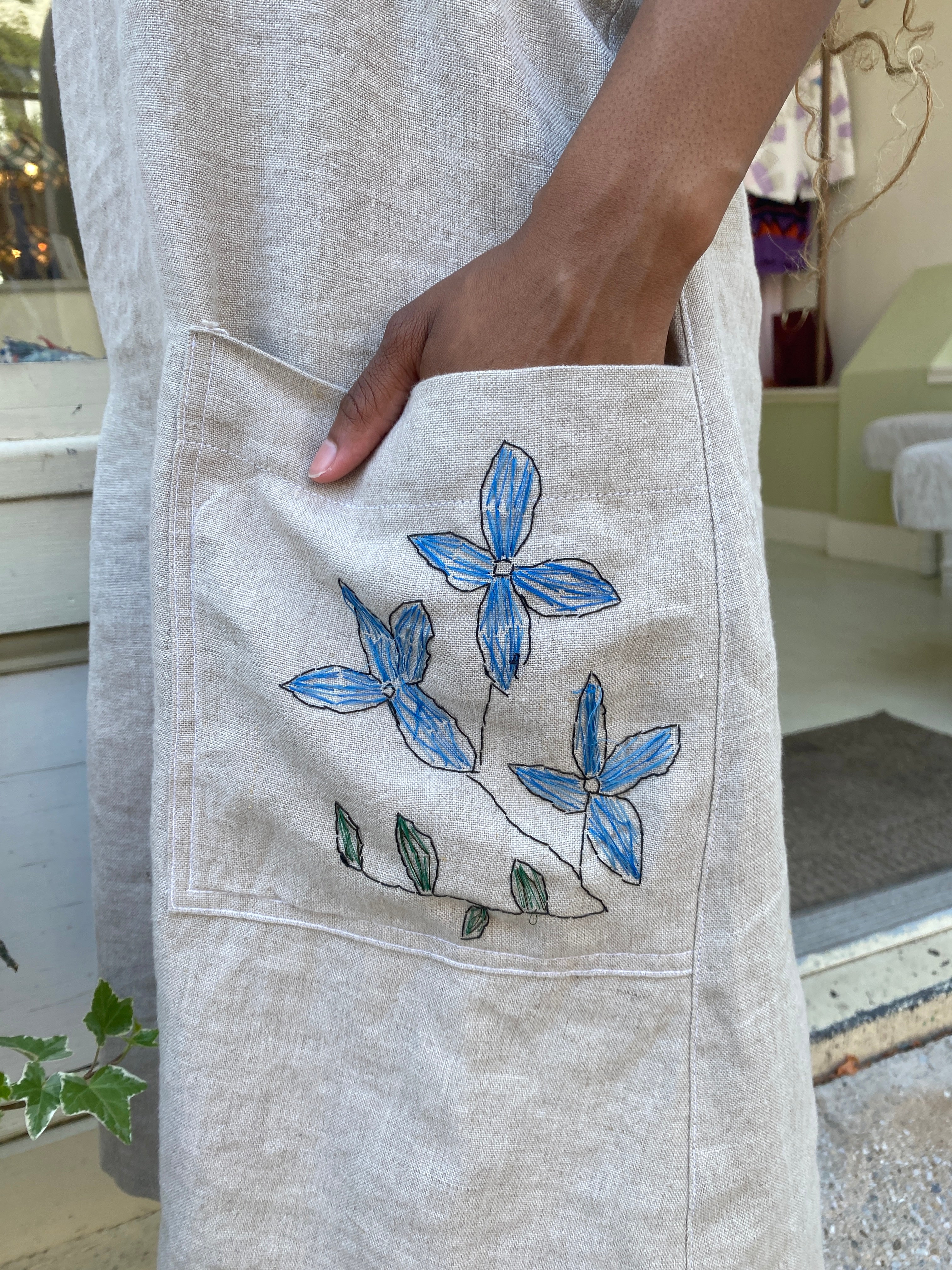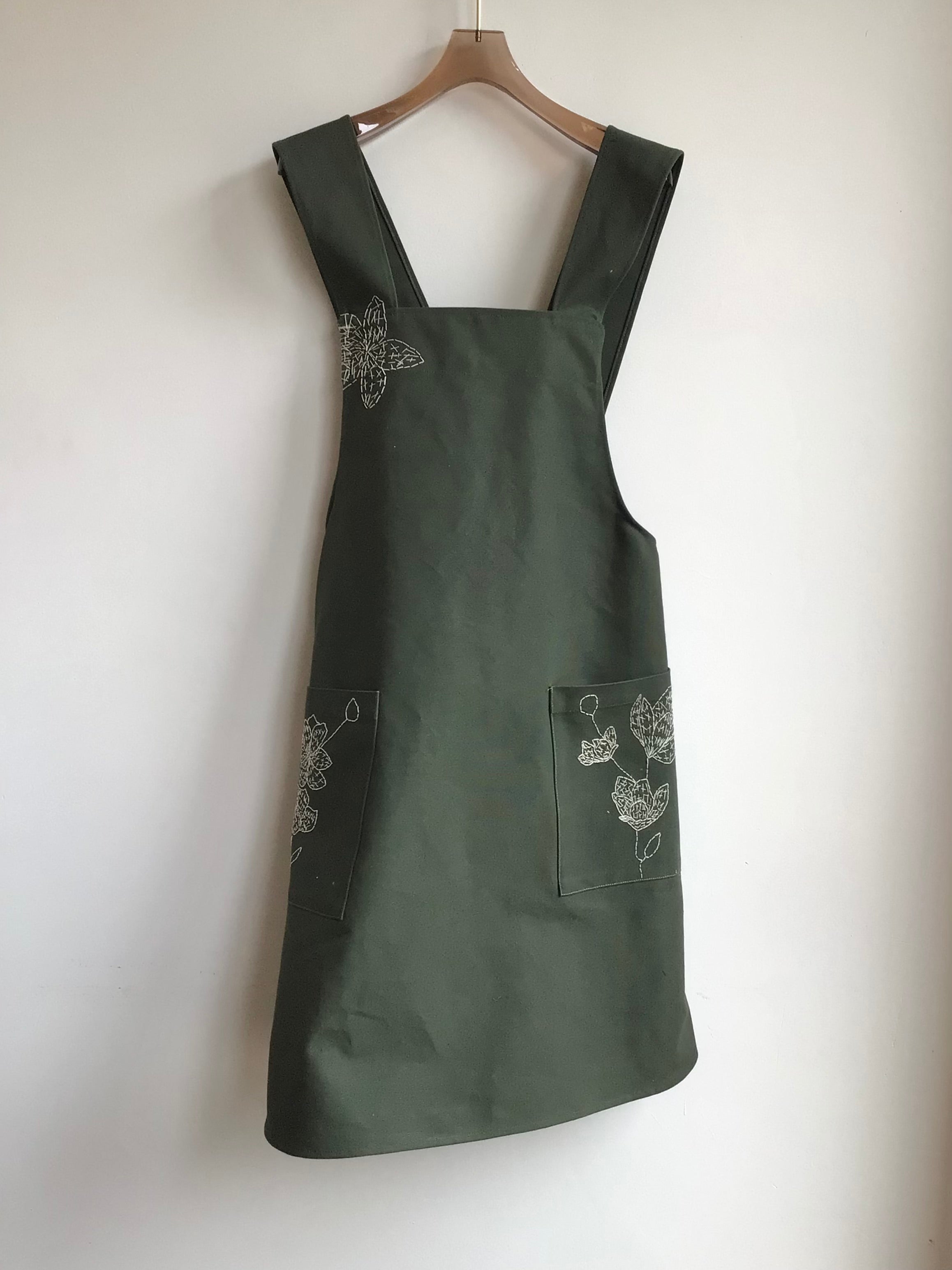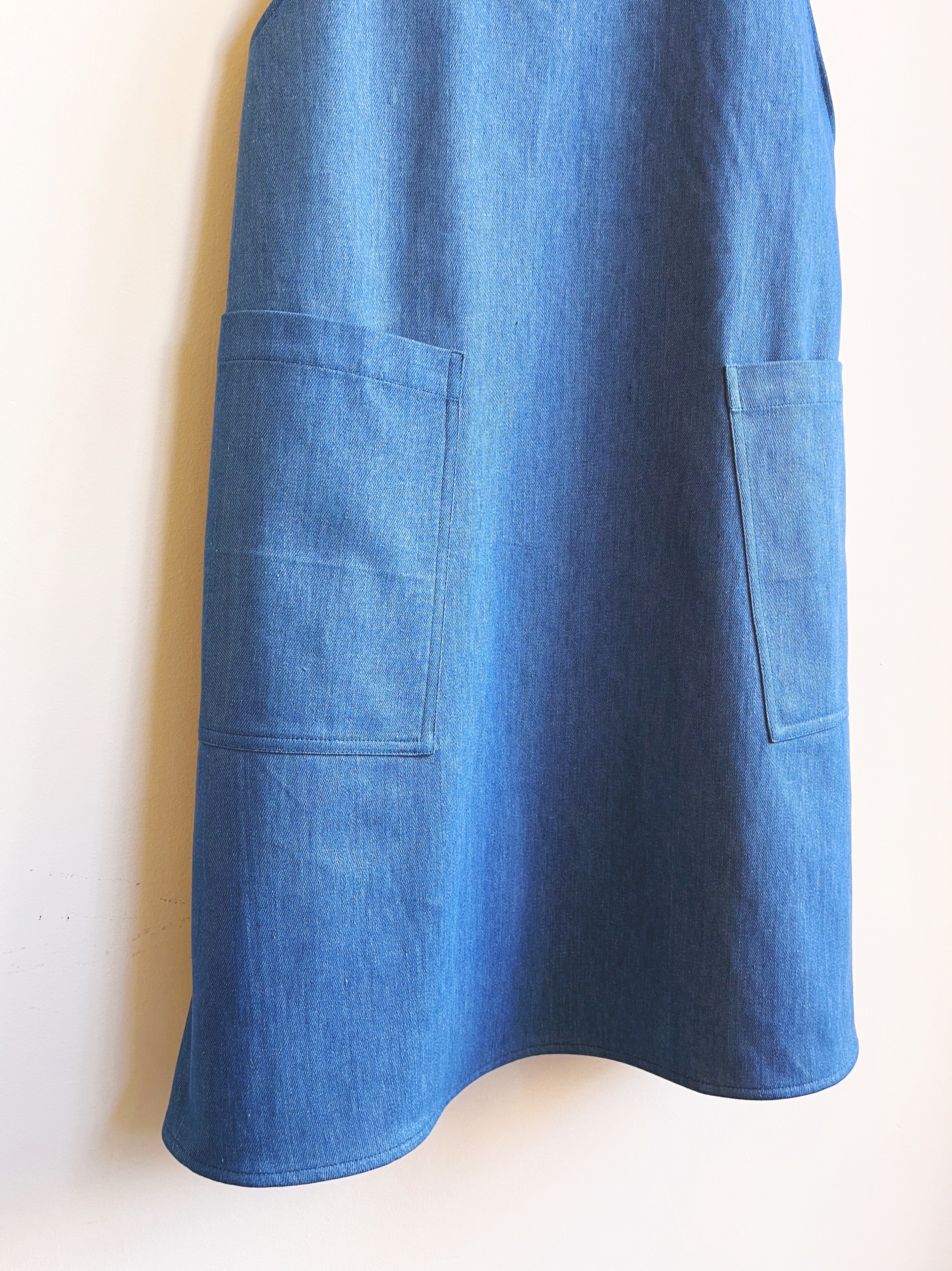 Sewn right upstairs in our Catskill factory from deadstock fabrics, our Pinafore Apron is both style and substance. With a criss-cross back (no ties to mess with) and large pockets, it’s a super functional apron for home or studio work, but it’s also cute enough to wear out of the house as a pinafore layer. We have a few available, below, but it can also be made to order in your choice of fabrics!