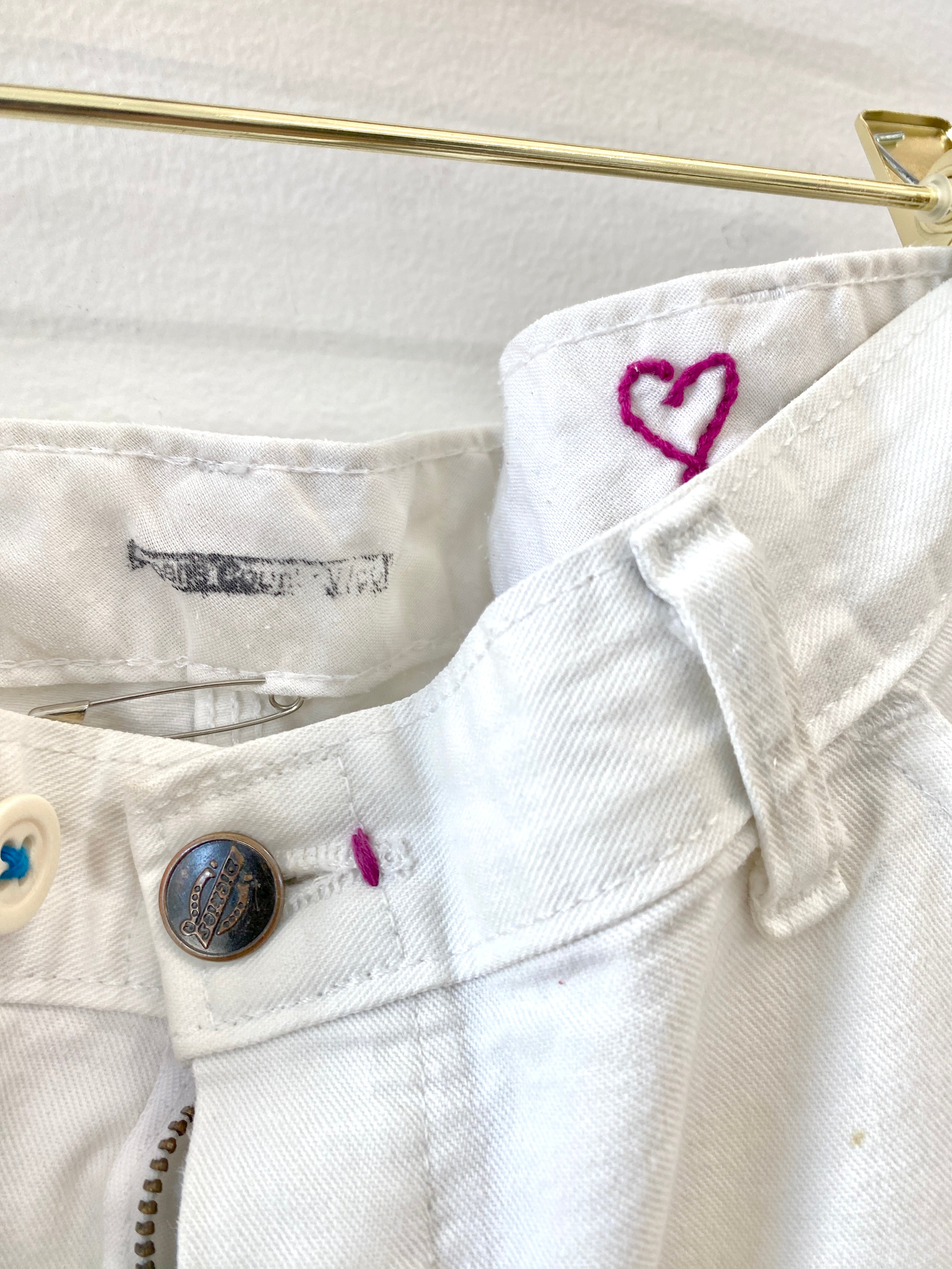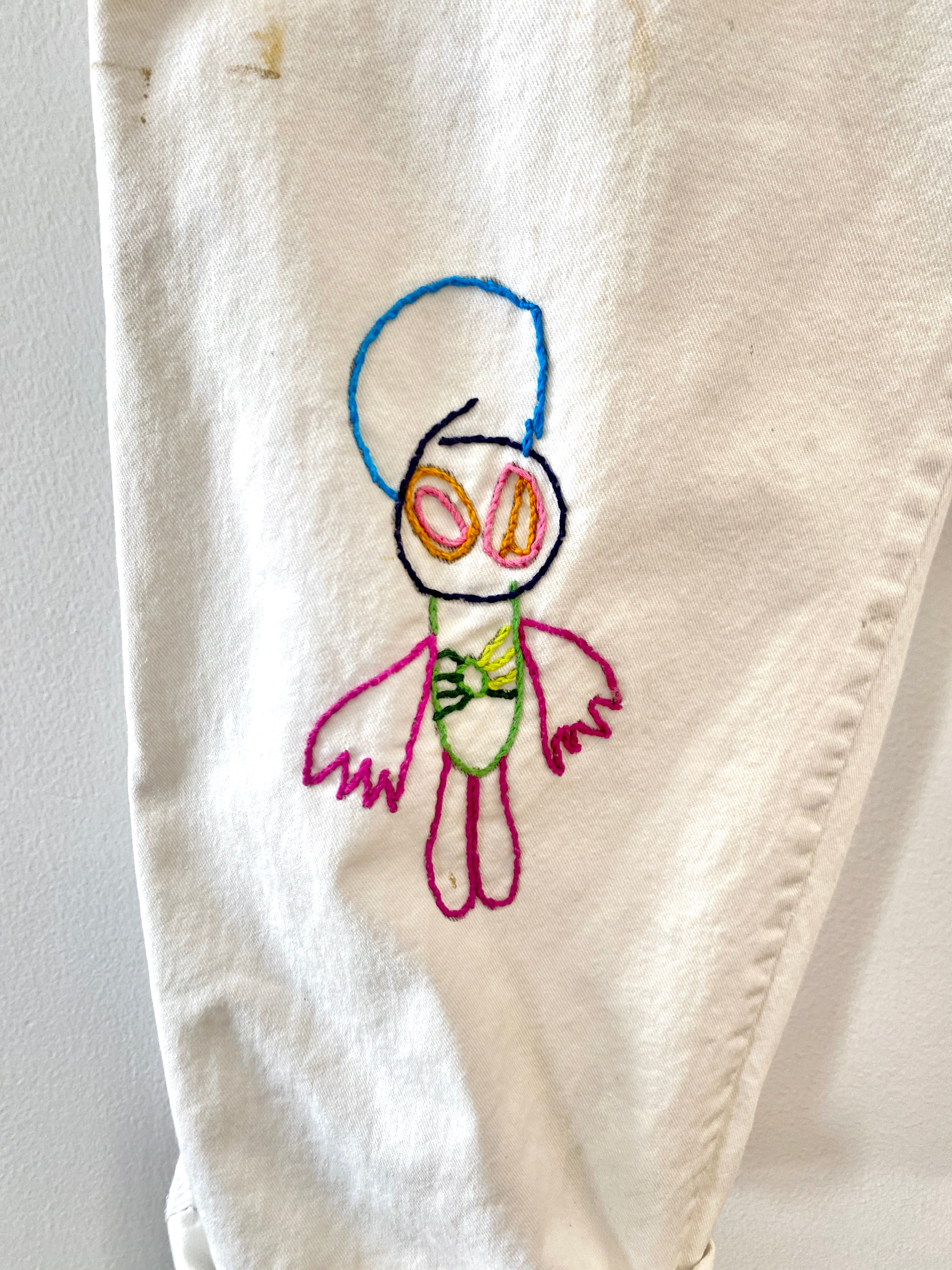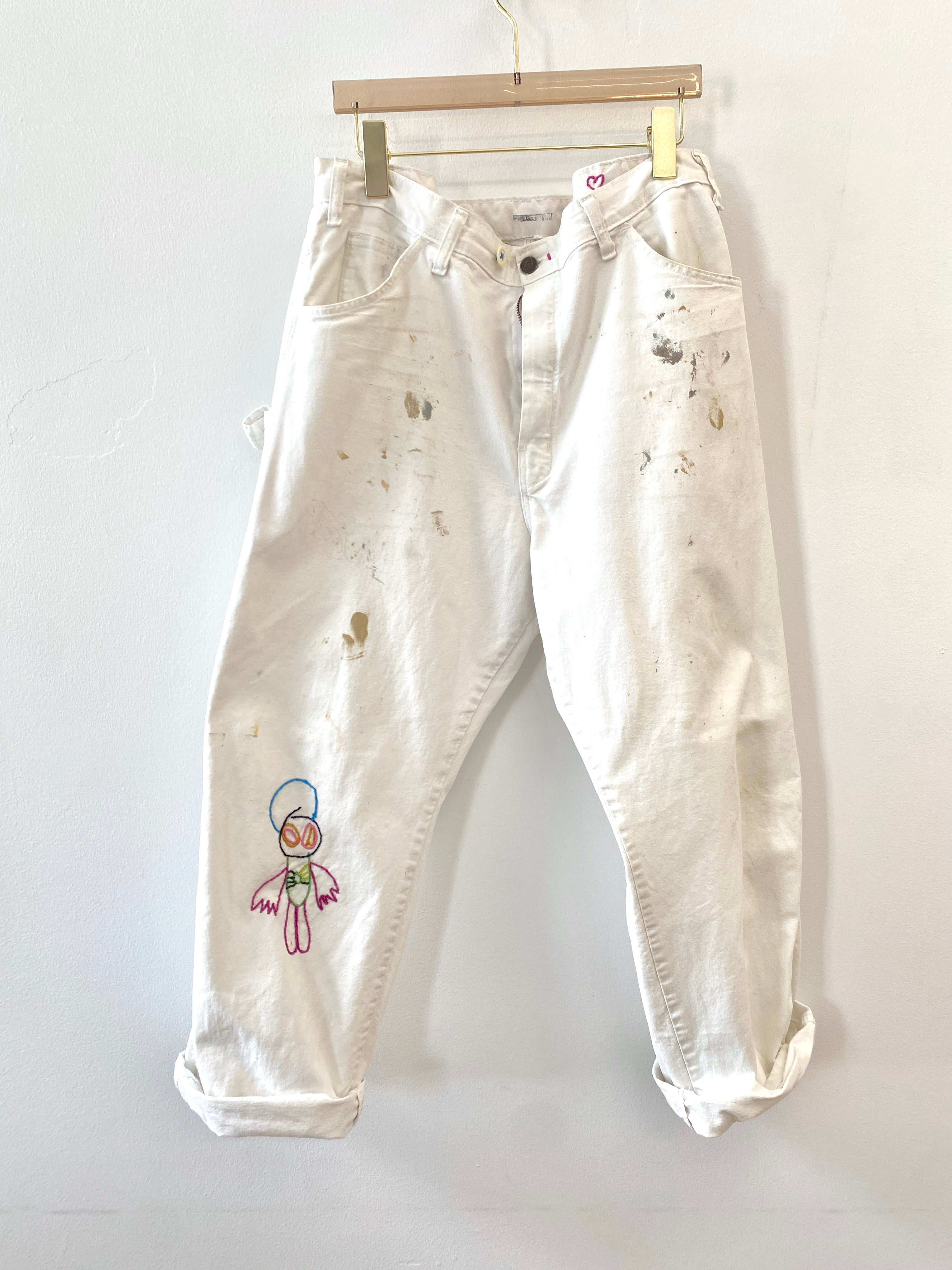 Hand Embroidered Missing Alien Heart Pants (Reworked)