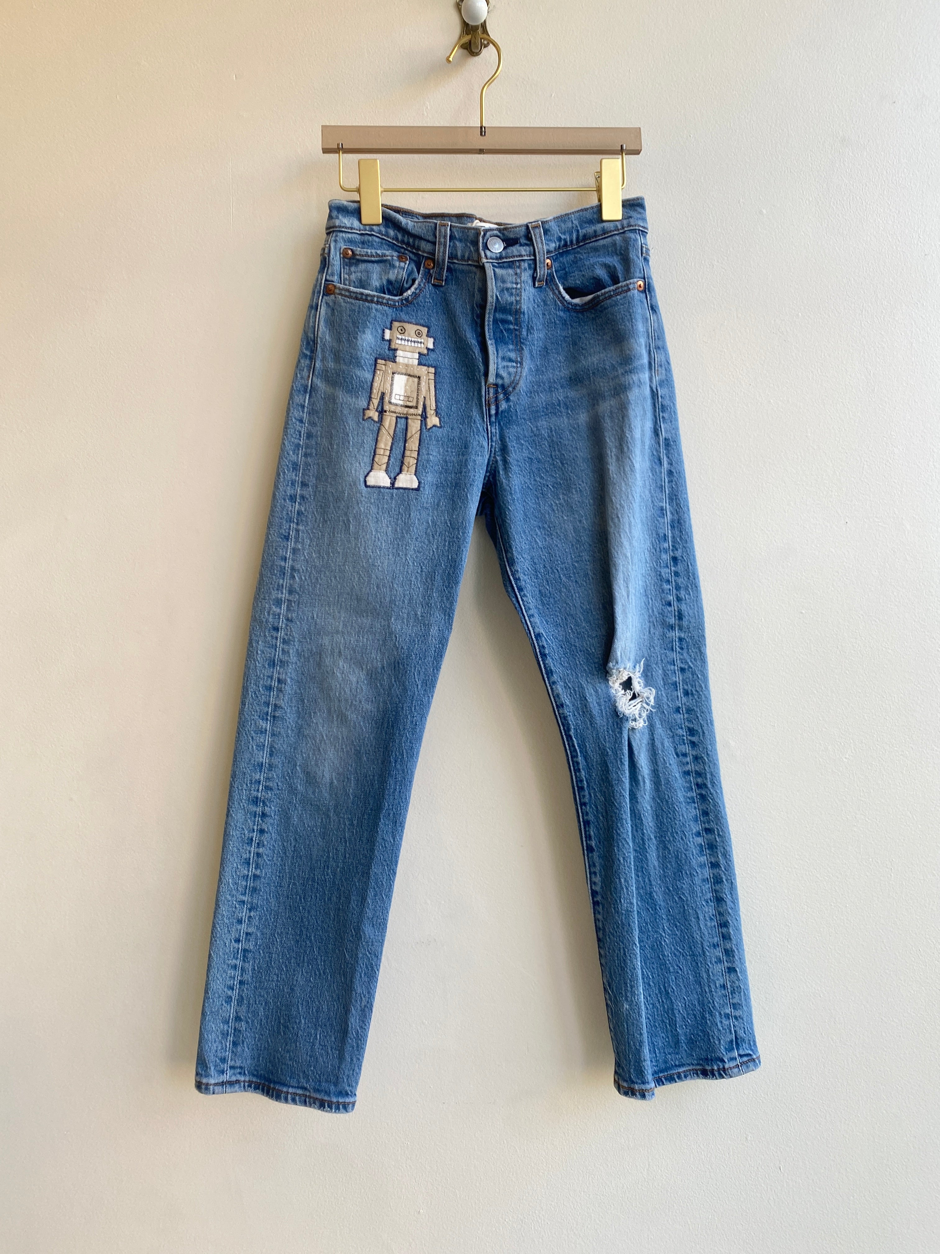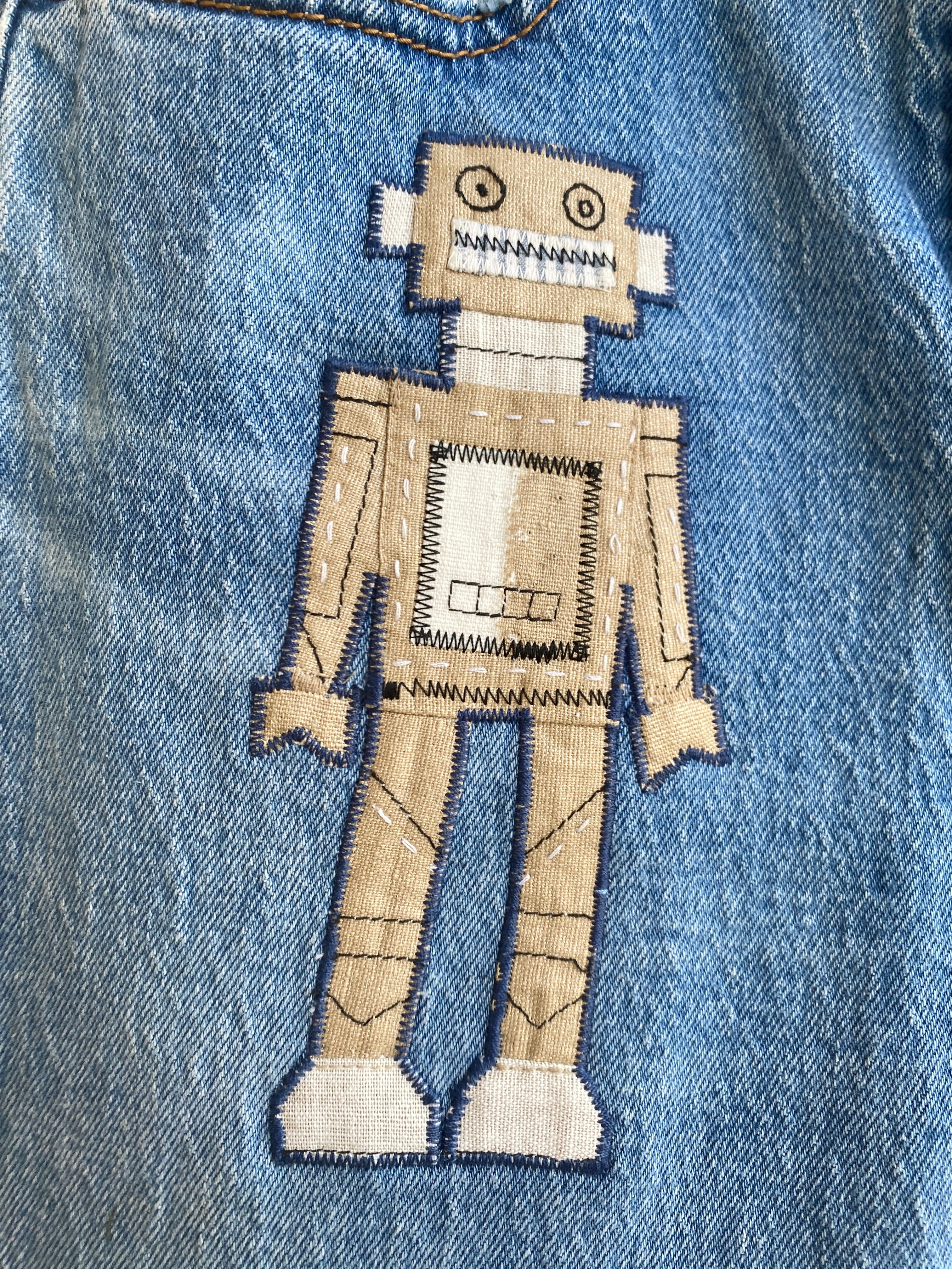 Robot Hand-Patched and -Embroidered Jeans (Reworked)