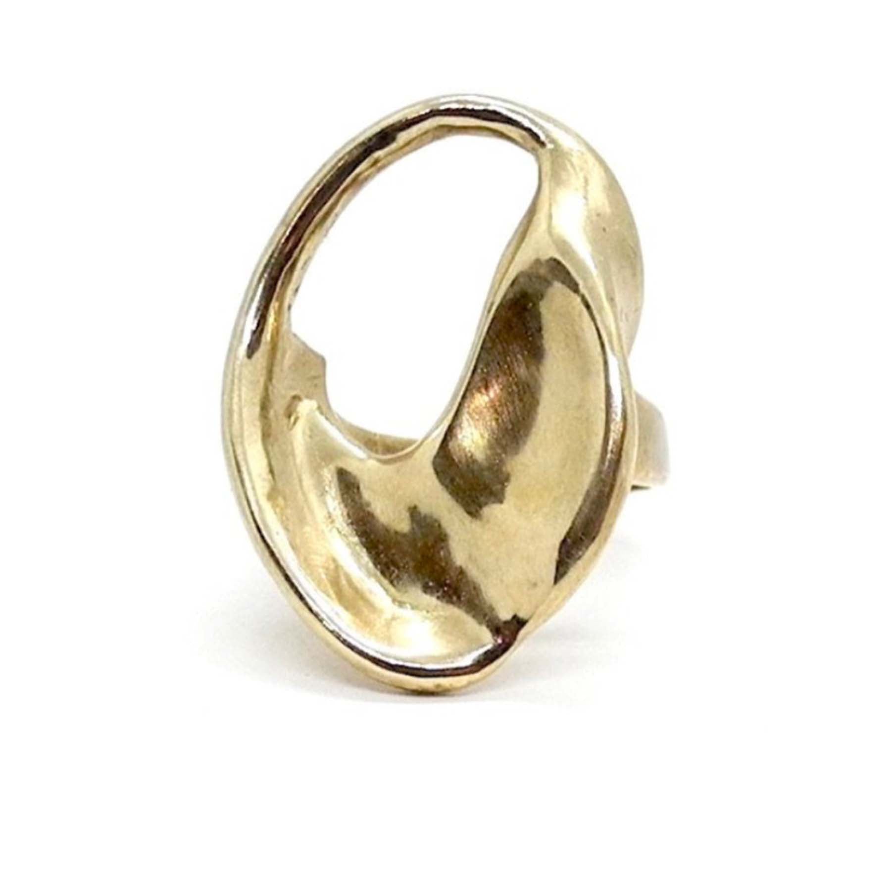 This organic circle ring by Renèe Frances Jewelry is a beautiful addition to any collection. In both brass and silver, this ring brings a modern naturalist style that reminds one of the ocean, shells, and the soft curves of water carved stone.